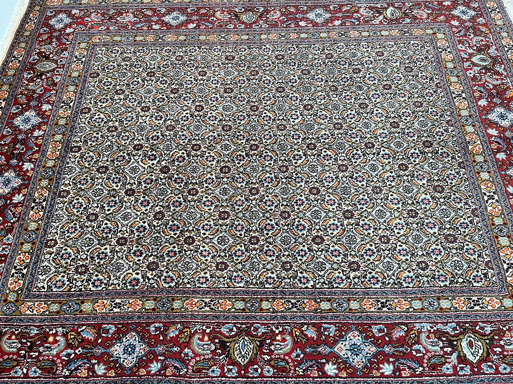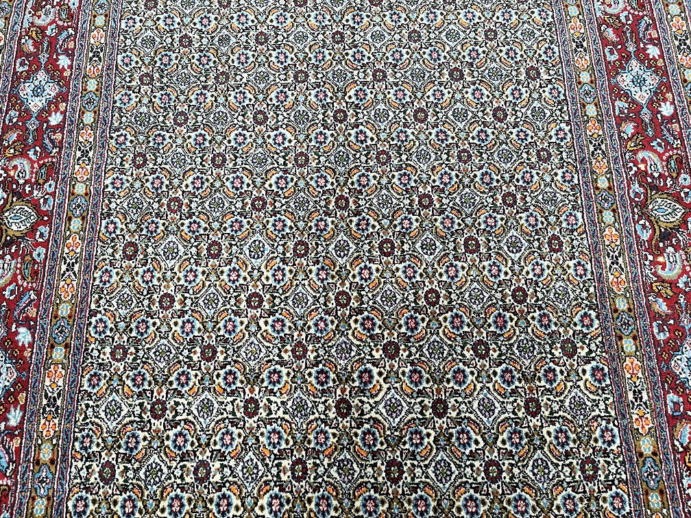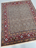 Superb Coffee Table To Room Size Authentic Handmade Persian Birjand Rug. Above All It Has A Lamb’s Wool And Touch Of Silk Pile on Fine Cotton. It Also Has A Beige, Pink, Blue, Orange, Black And Maroon Tone Dyed Using Traditional Methods.