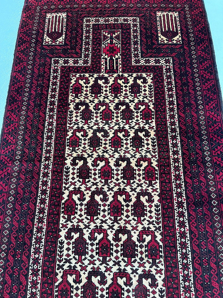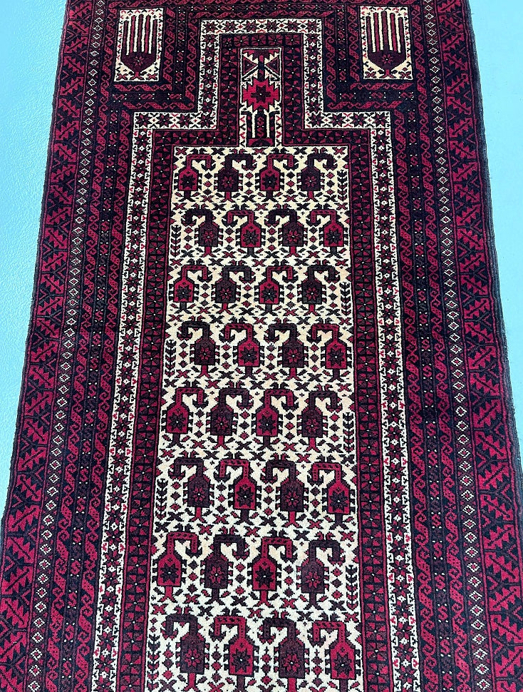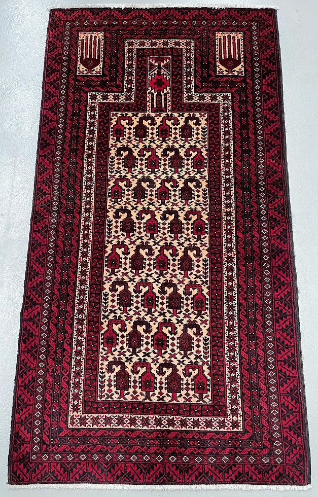 Superb Prayer Design Balouchi Carpet Which Can Also Be Used As A Wall Hanging.