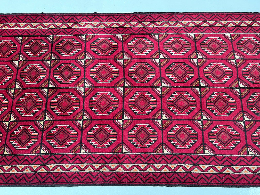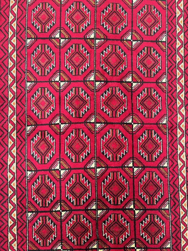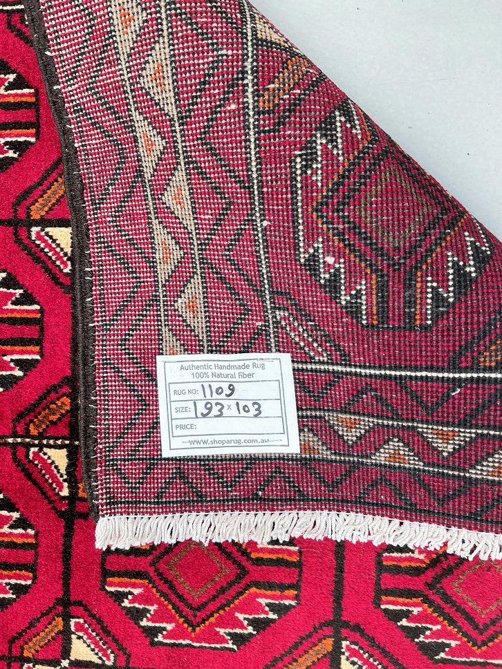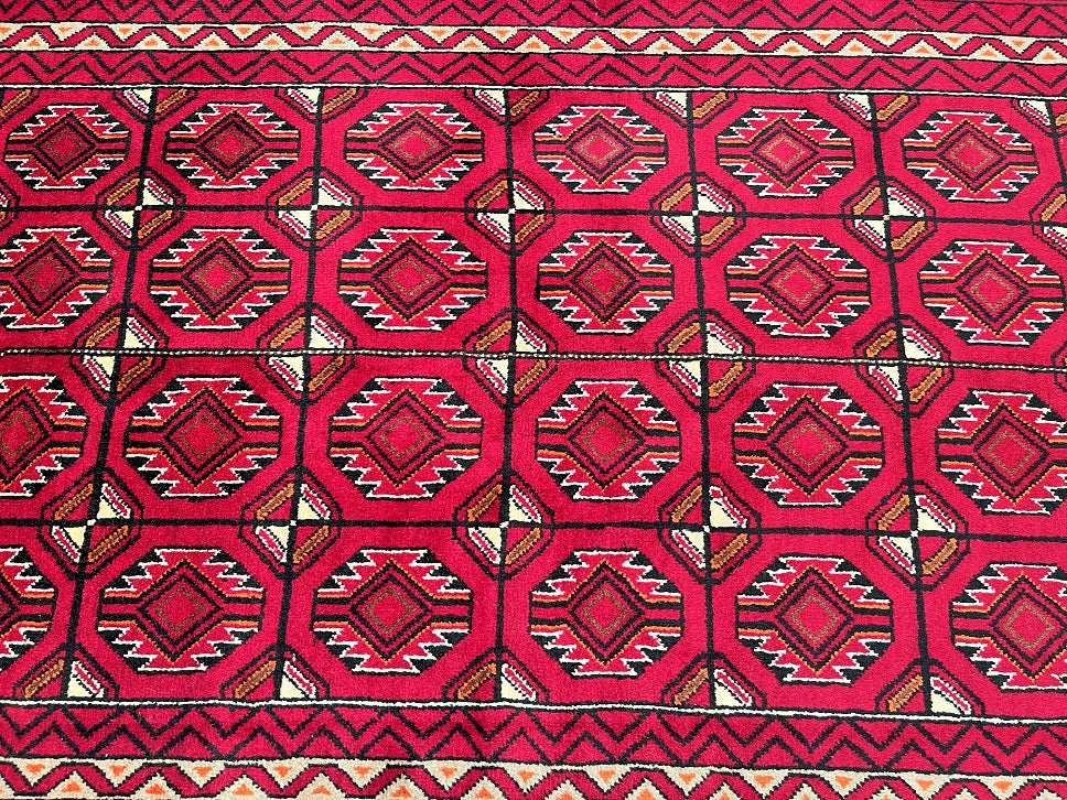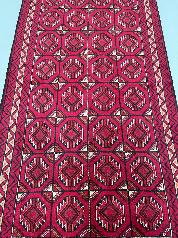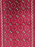 Hard Wearing Handmade Persian Balouchi Rug Which Also Can Be Used As A Runner. It Has A Pure Hand Spun Wool Pile On Wool Base. Red, Black, Orange, Brown And Beige Tone Dyed Using Traditional Methods.