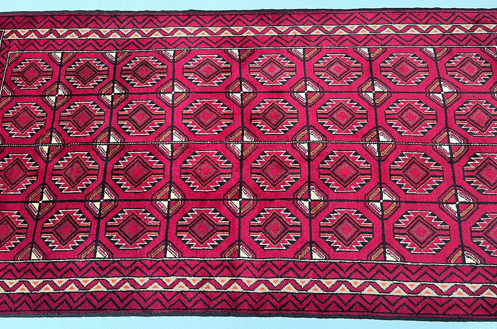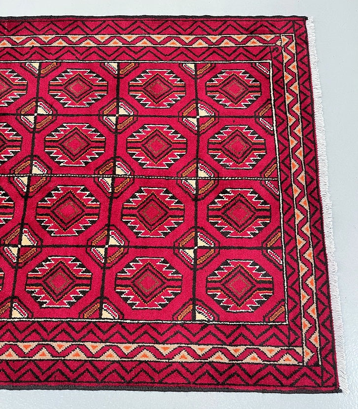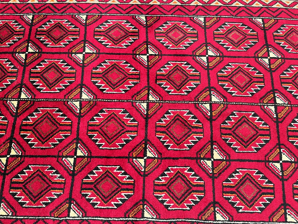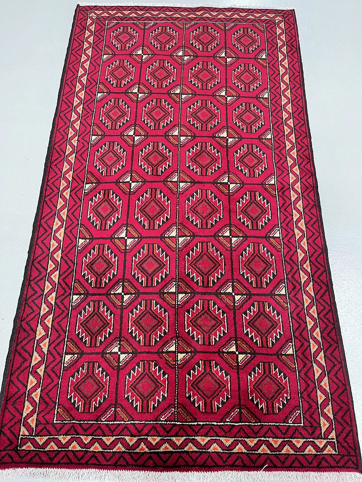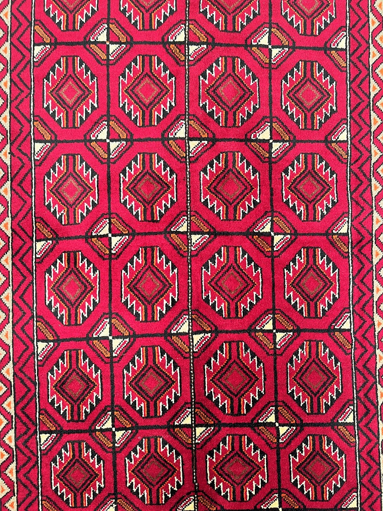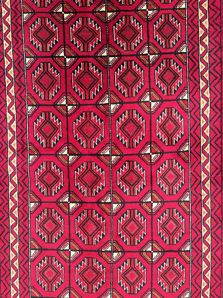 Hard Wearing Handmade Persian Balouchi Rug Which Also Can Be Used As A Runner. It Has A Pure Hand Spun Wool Pile On Wool Base. Red, Black, Orange, Brown And Beige Tone Dyed Using Traditional Methods.