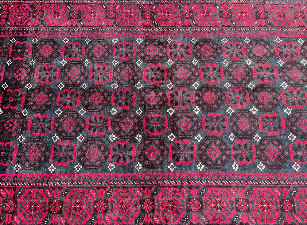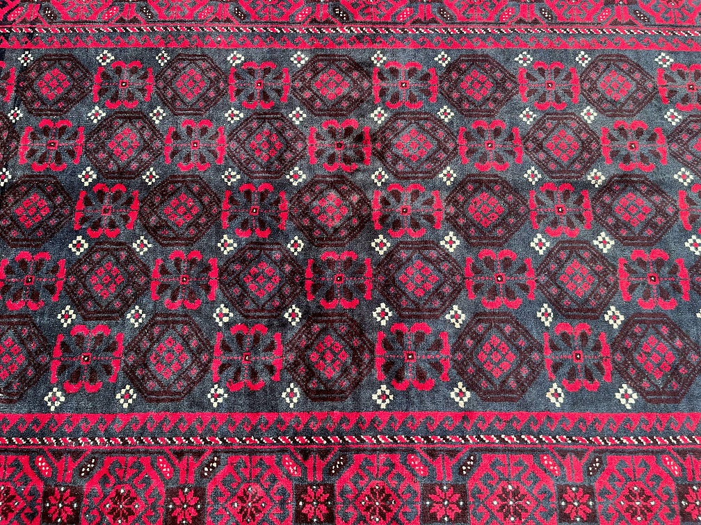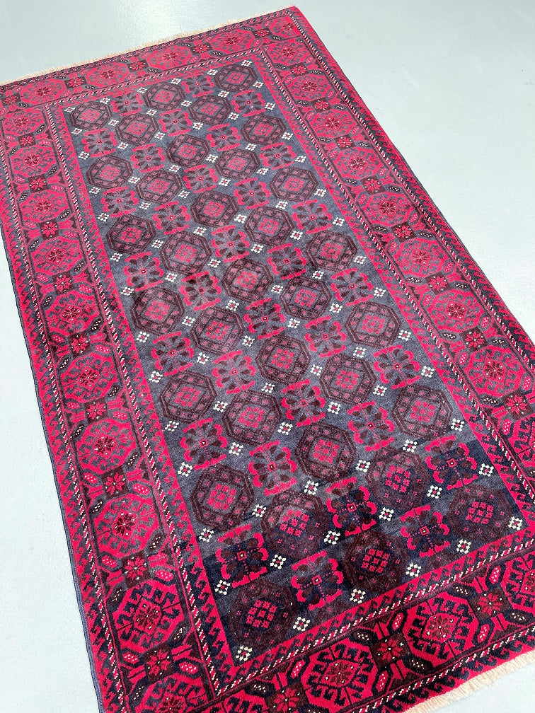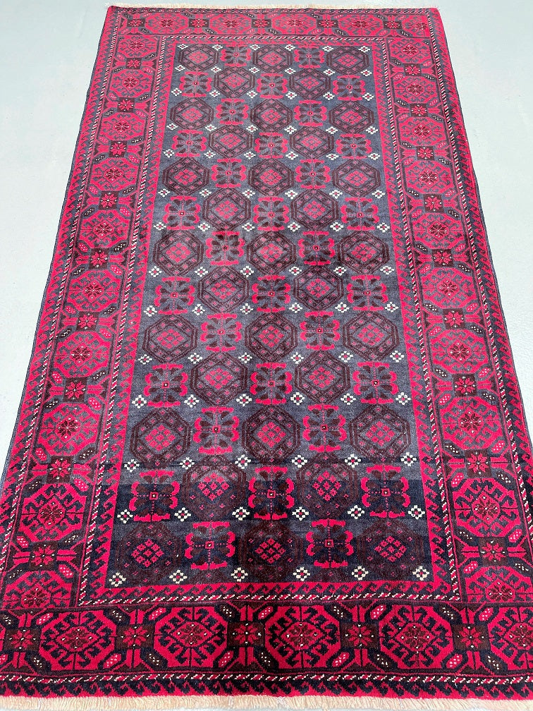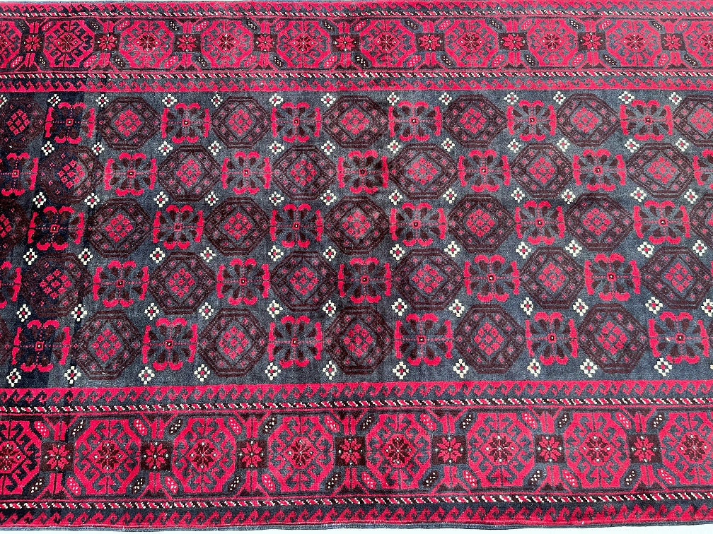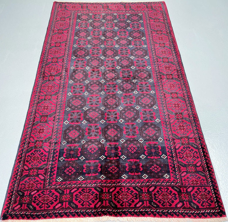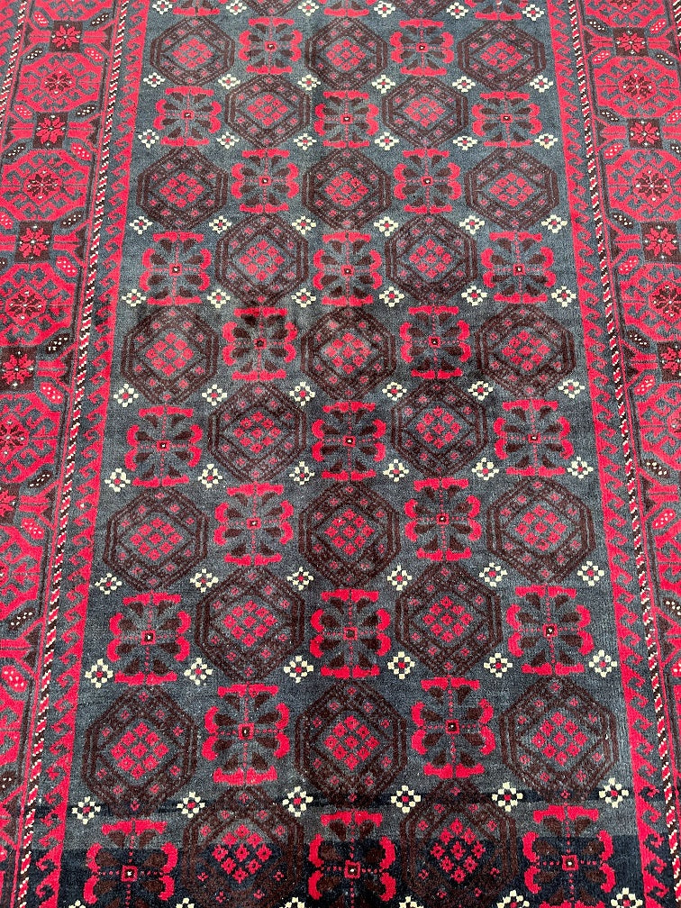 Tribal Genuine Handmade Balouchi Rug. Above All It Has A Pure Hand Spun Wool Pile On Wool Base. Charcoal/Black, Red And Beige Tone Dyed Using Traditional Methods.
