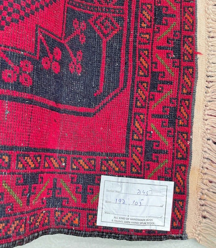 Certified Hand Knotted Afghan Rug 192 x 105cm