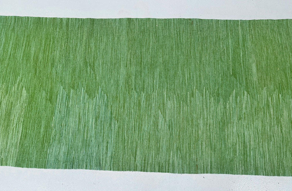 Oversize 10m Long Hand Woven Afghan Aryana Kilim Hall Runner. Please Note The Width Is Slightly Wider In Few Areas As It Is Tribal Handmade Runner. It Also Has A Pure Wool Pile On Wool Base. Soft Green Tone Dyed Using Traditional Methods.