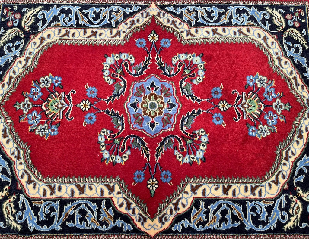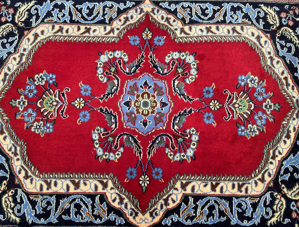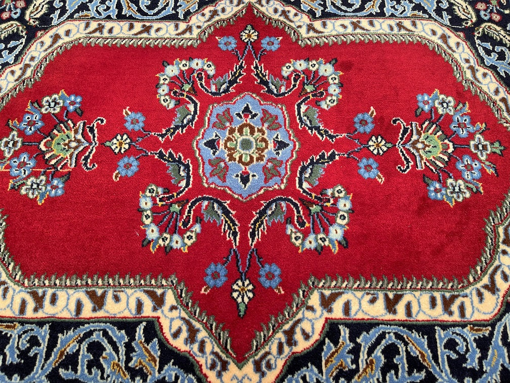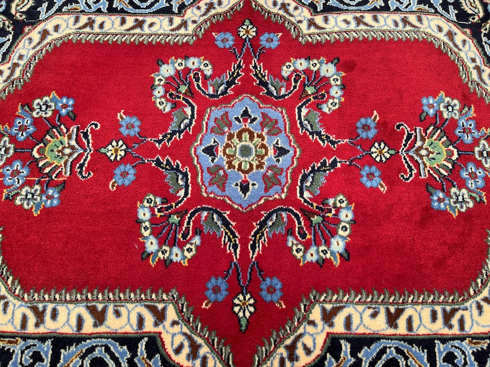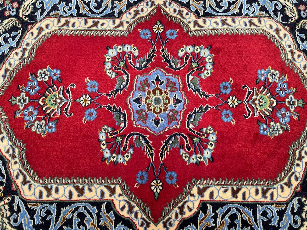 Fine Authentic Handmade Persian Kashan Rug. It Has a Pure Lamb’s Wool Pile on Cotton Base. Stunning Red Tones Dyed Using Traditional Methods.