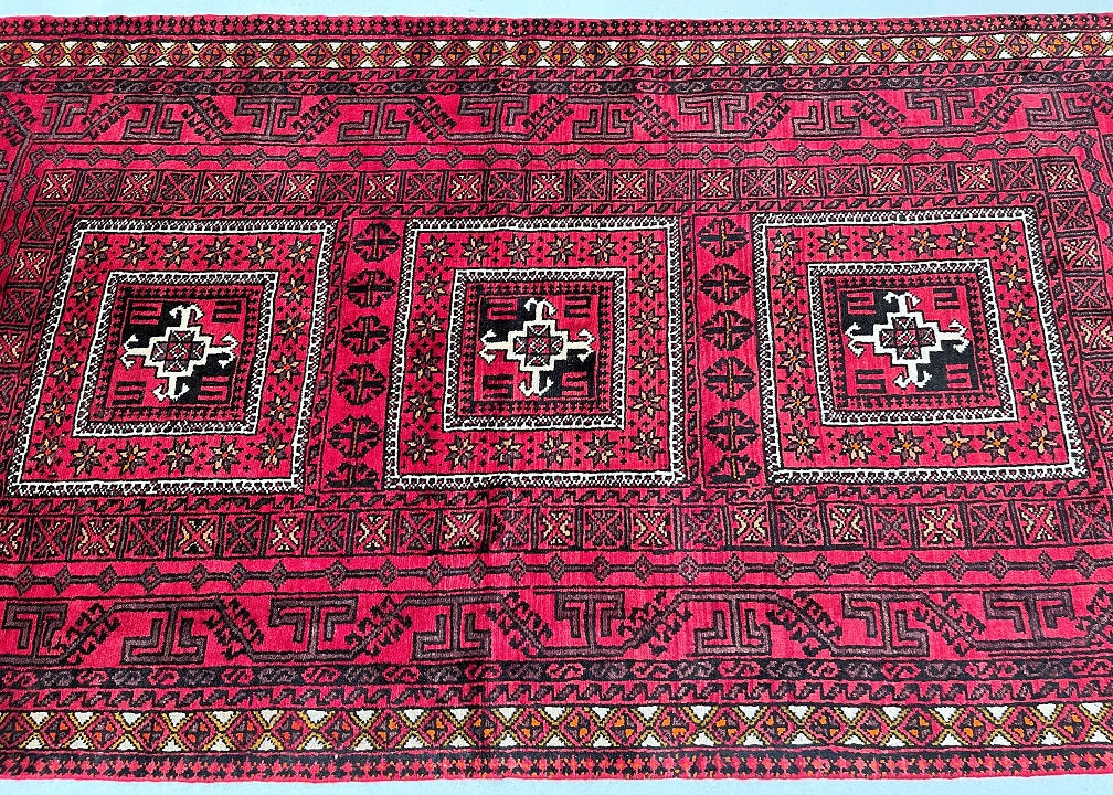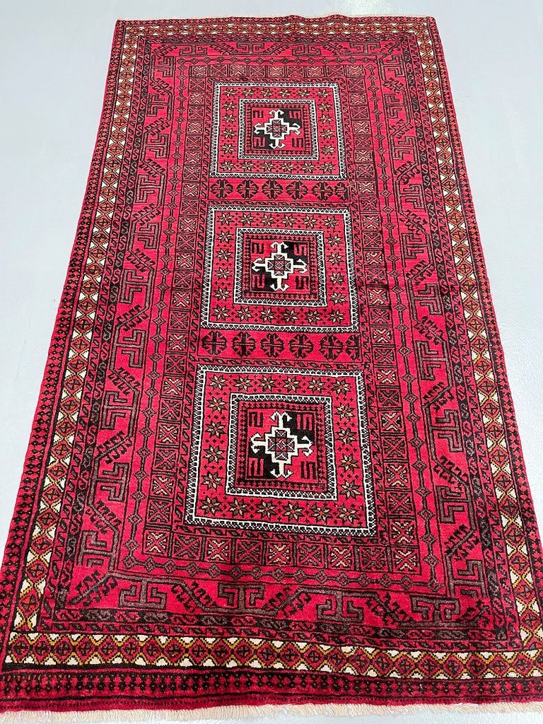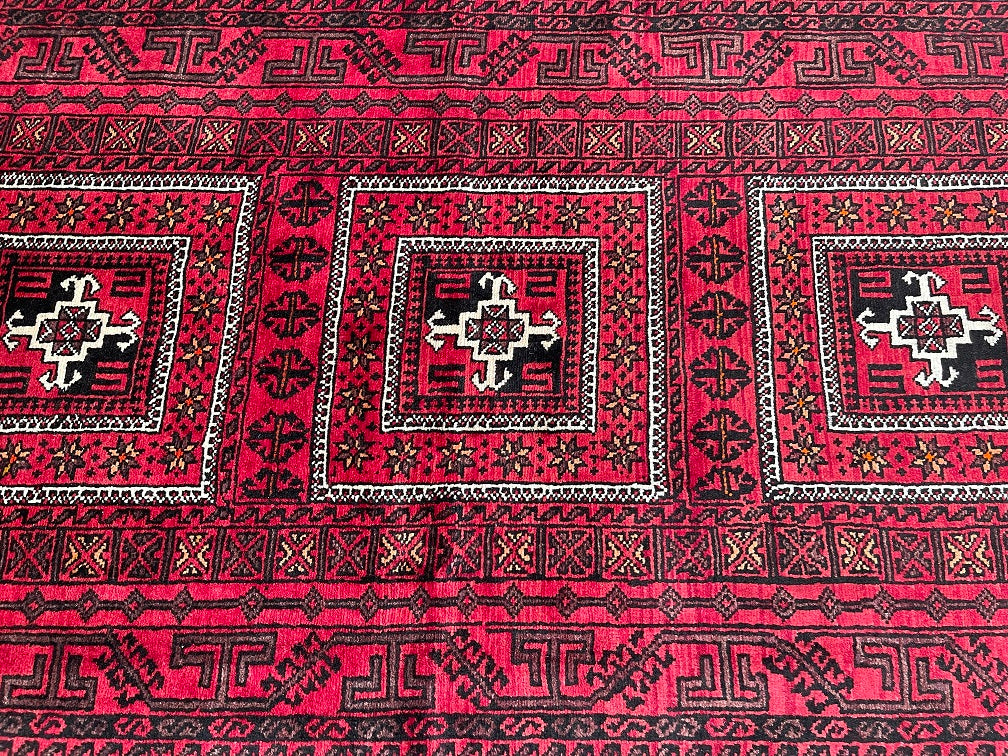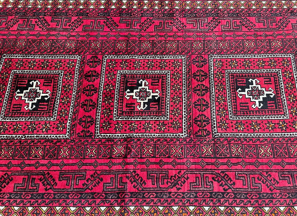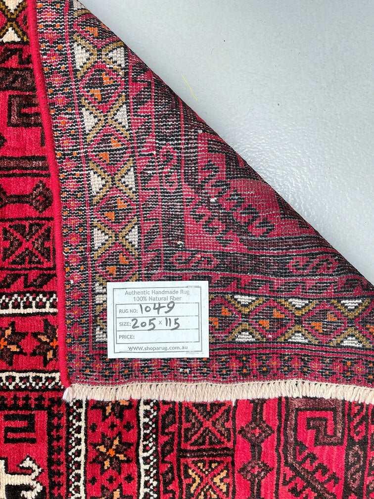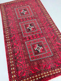 Authentic Handmade Tribal Persian Balouchi Rug. Above All It Has Pure Hand Spun Wool Pile On Wool Base. Rustic Red, Beige and Black Tone Dyed Using Traditional Methods.