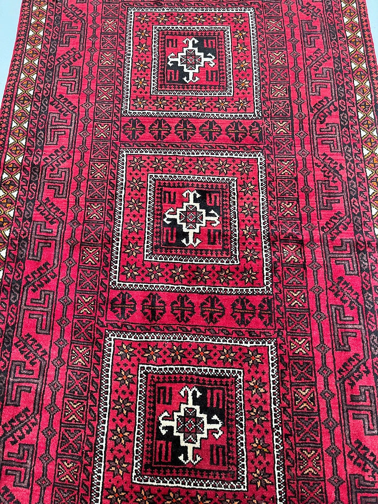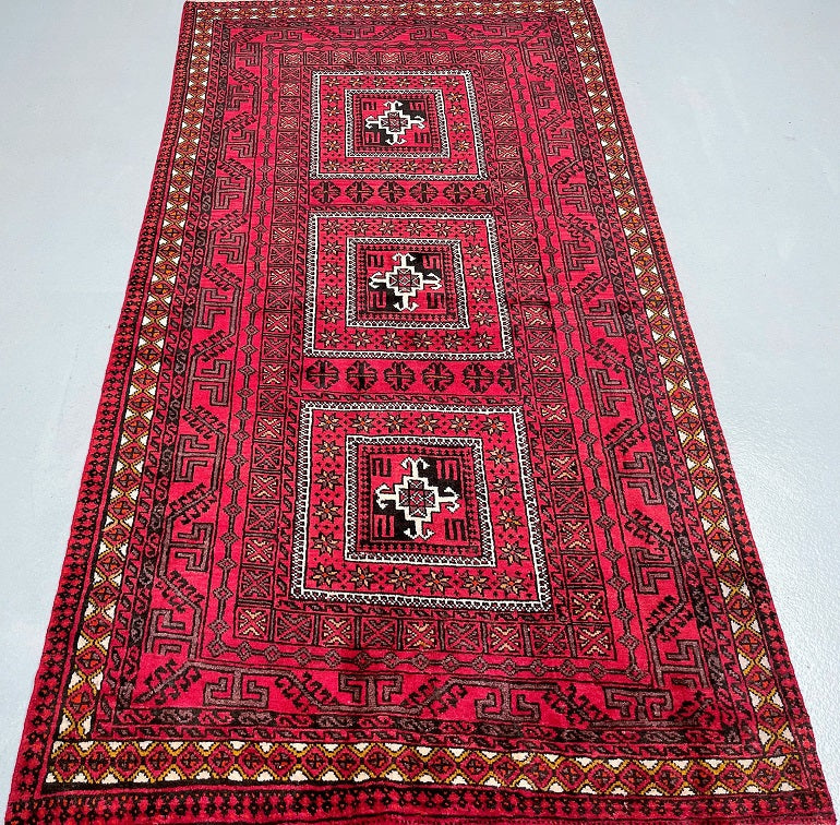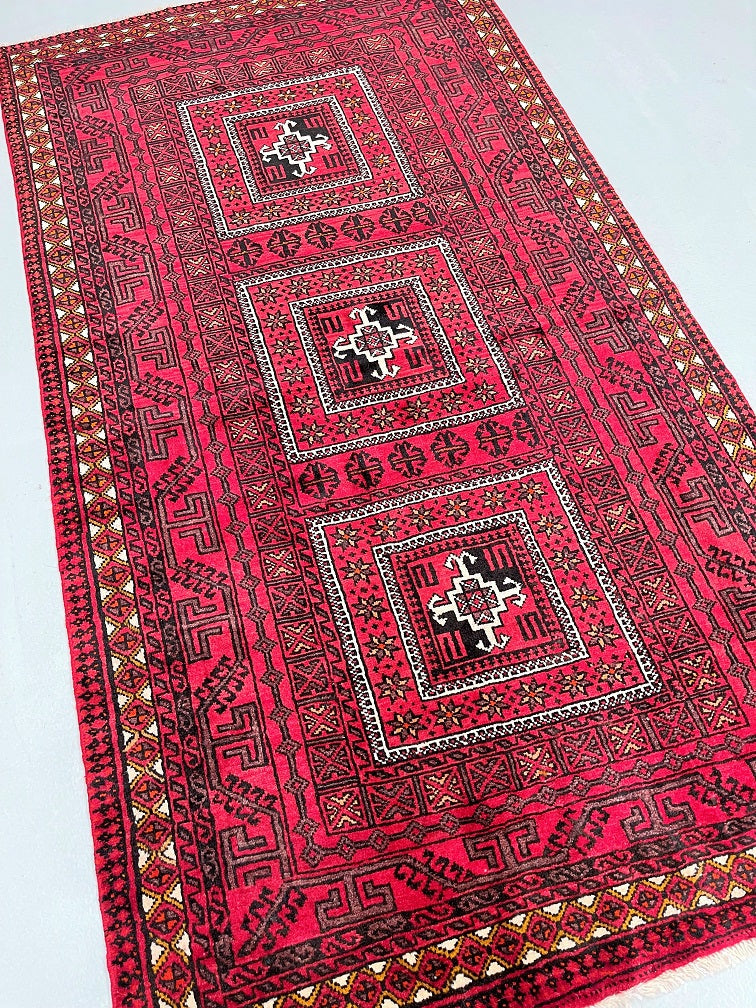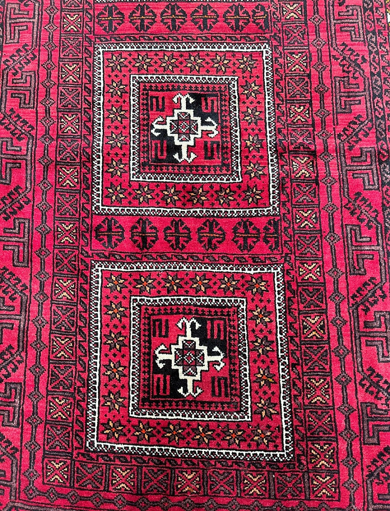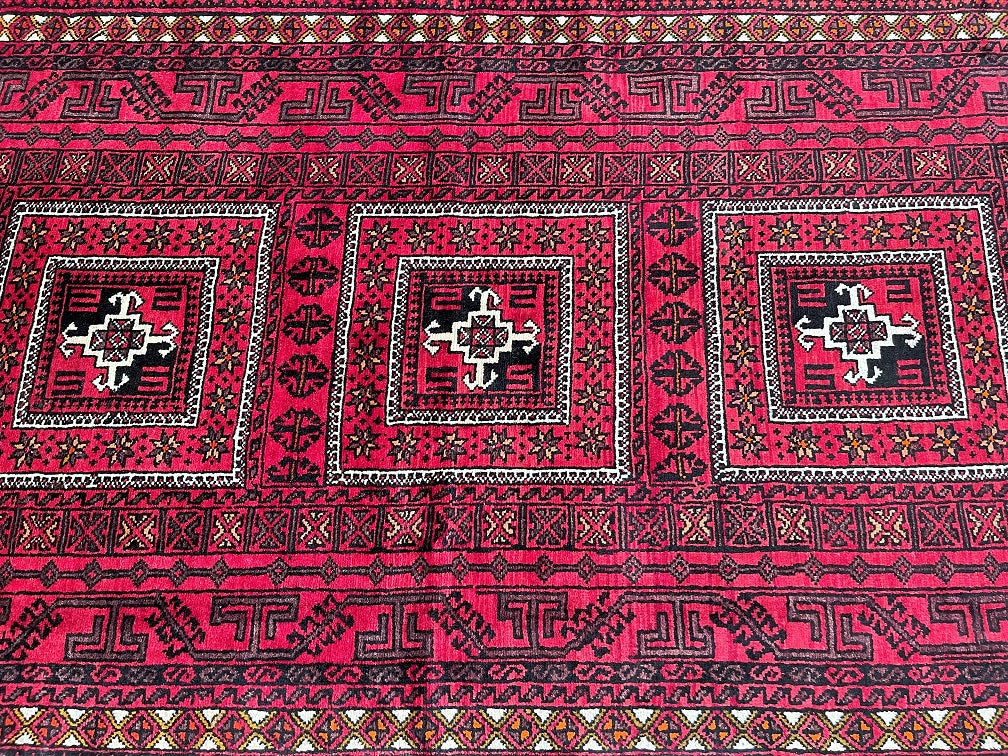 Authentic Handmade Tribal Persian Balouchi Rug. Above All It Has Pure Hand Spun Wool Pile On Wool Base. Rustic Red, Beige and Black Tone Dyed Using Traditional Methods.