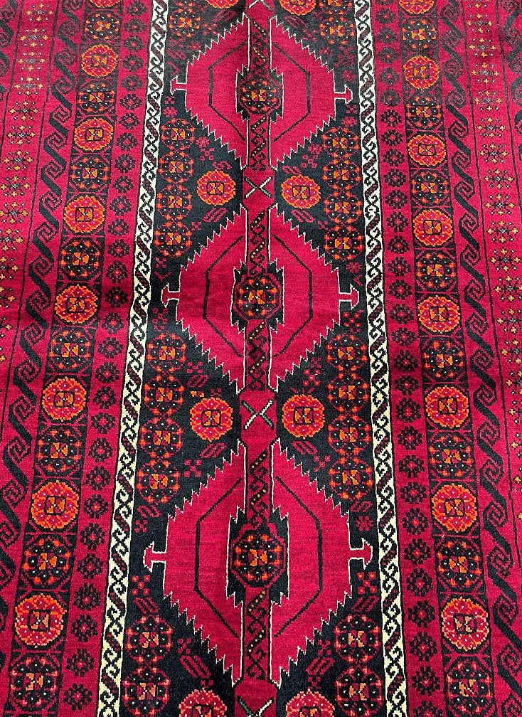 Hard Wearing Authentic Handmade Tribal Persian Baluchi Rug. Above All It Has A Pure Hand Spun Wool Pile On Cotton Base. Deep Red, Black, Beige And Orange Tone Dyed Using Traditional Methods.