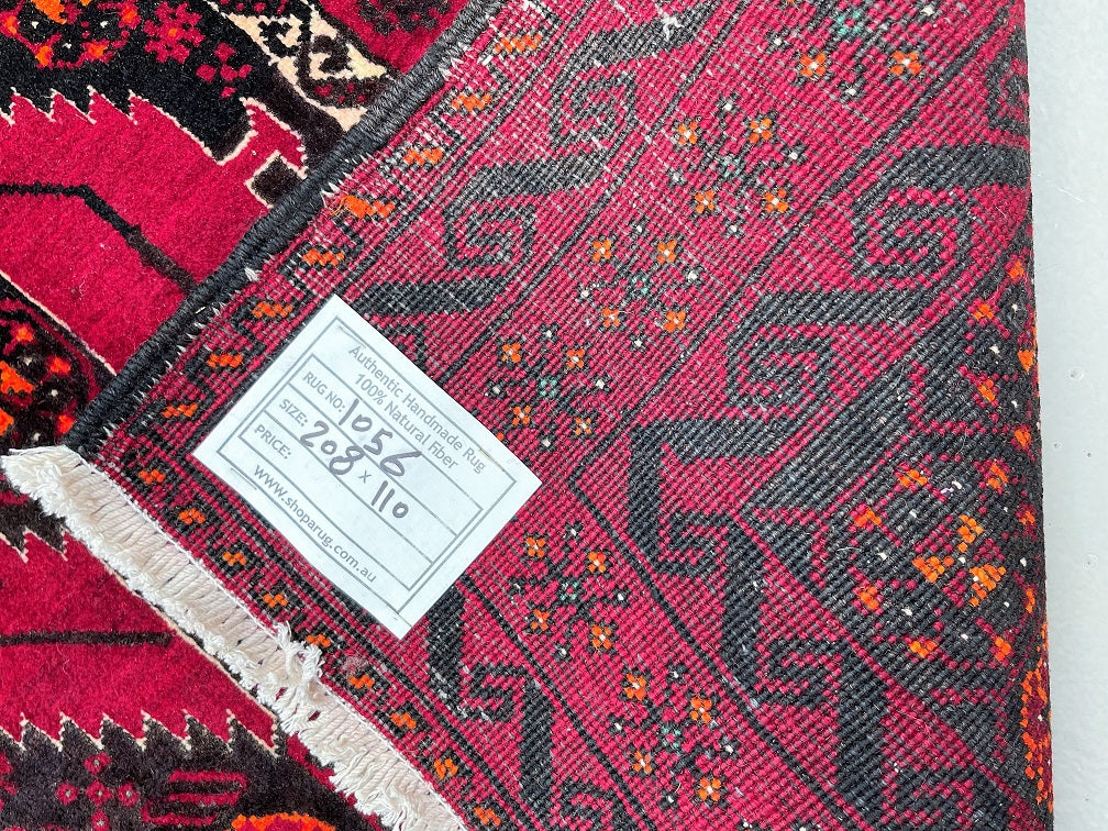 Free Shipping Australia Wide Offer. Certified Hand Knotted Persian Rug 208x110cm Hard Wearing Authentic Handmade Tribal Persian Baluchi Rug. Above All It Has A Pure Hand Spun Wool Pile On Cotton Base. Deep Red, Black, Beige And Orange Tone Dyed Us...