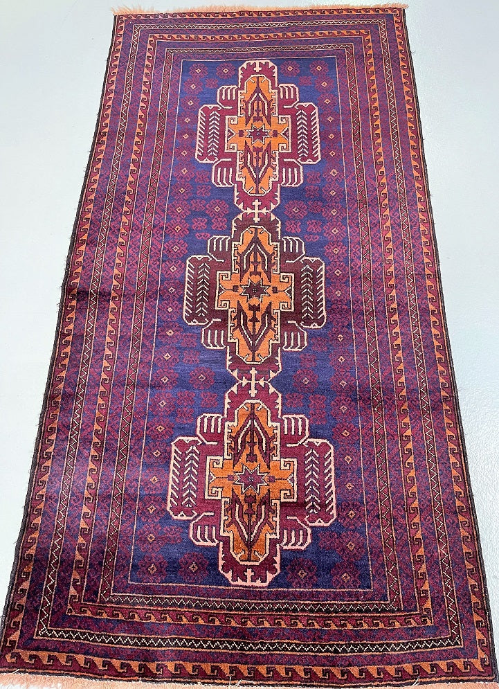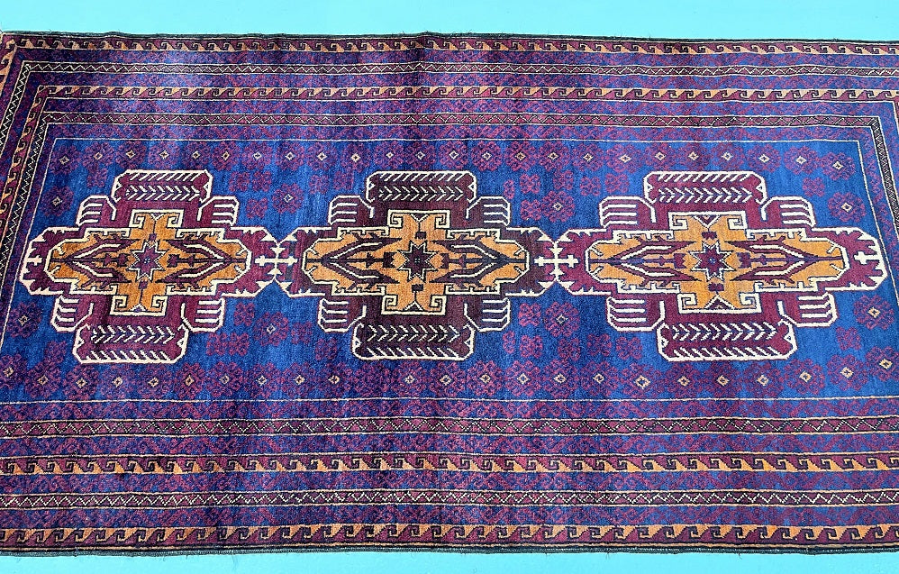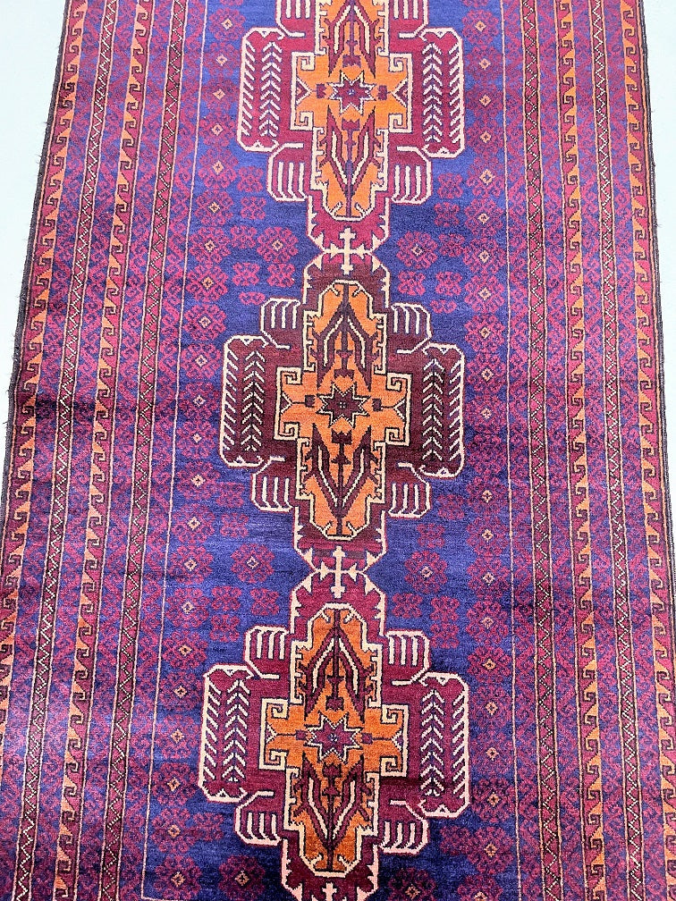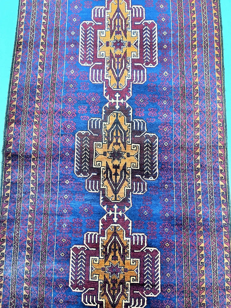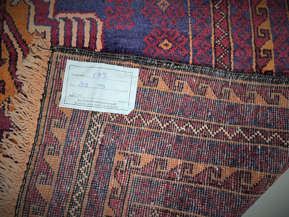Certified Hand Knotted Afghan Rug 212x110cm