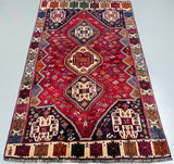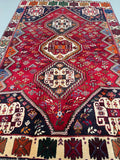 Gorgeous Coffee Table To Room Size Hand Knotted Persian Qashghai Shiraz Rug. Above All It Is a Very Unique Piece. It Has a Dense Pure Hand Spun Wool Pile On Wool Base. Rich Red, Beige, Green, Orange and Black Colors Dyed Using Traditional Methods.
