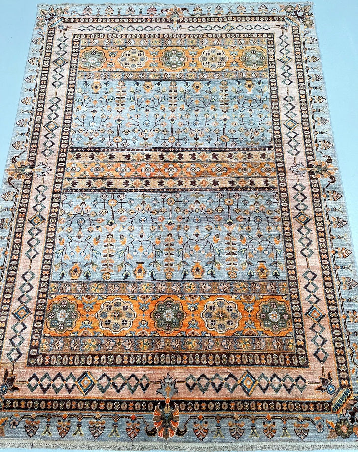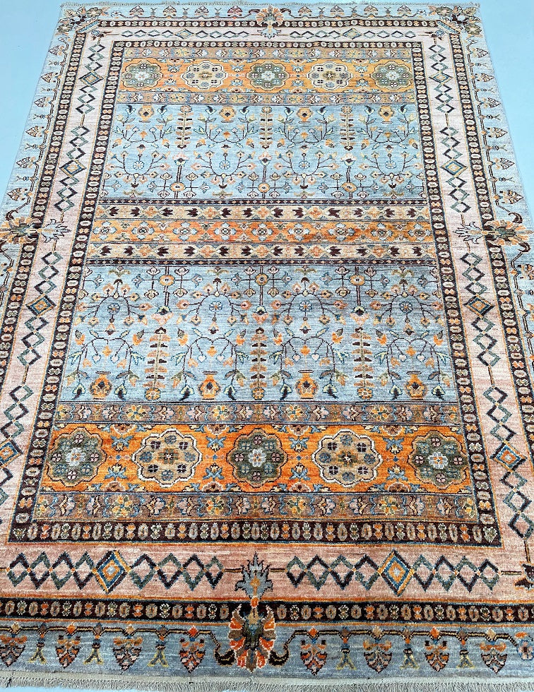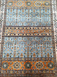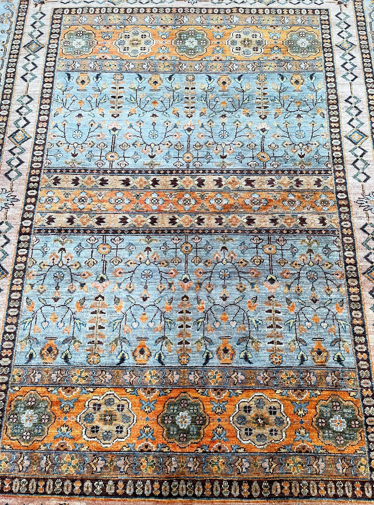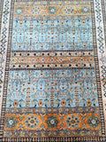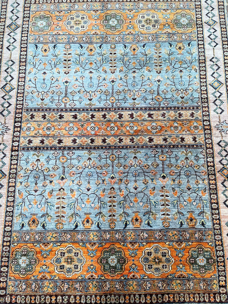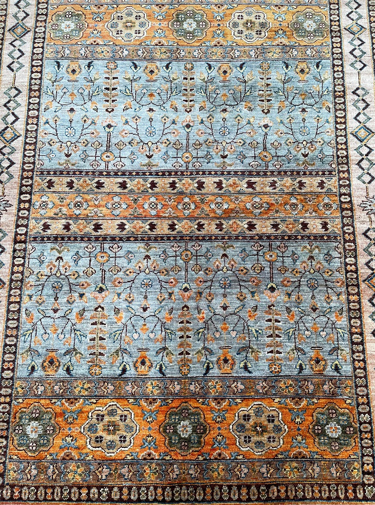 Authentic Hand Knotted Afghan Sultani Chobi Rug. Above All It Is Pure Hand Spun Wool Pile On Cotton Base. Beige, Grey, Light Blue And Orange Tones Dyed Using Traditional Methods (Vegetable Dyes). Last of True Woven Nomadic Art.