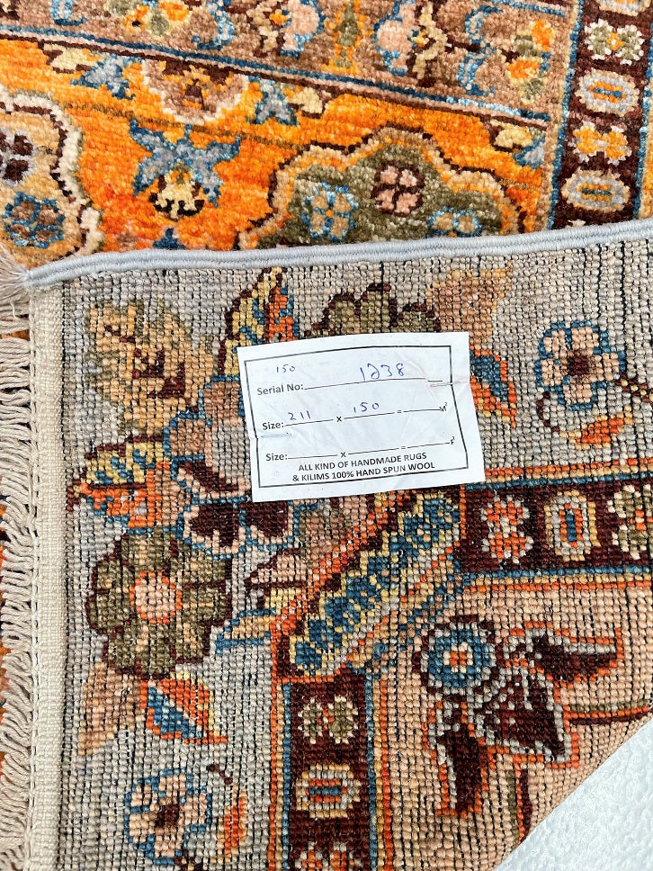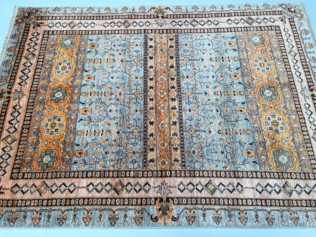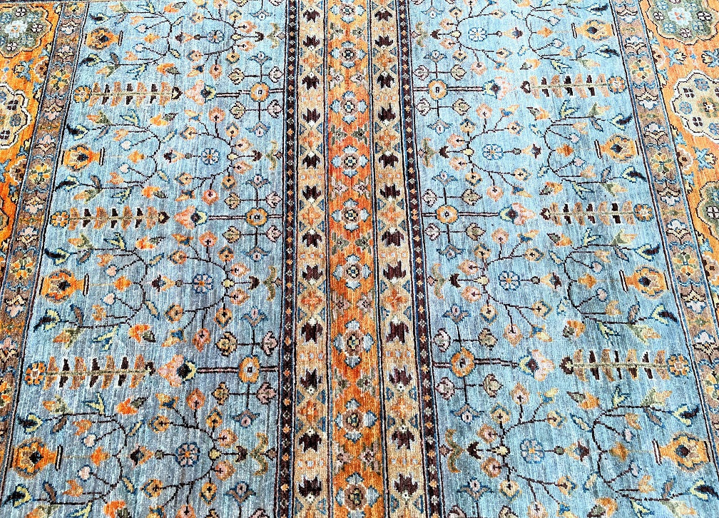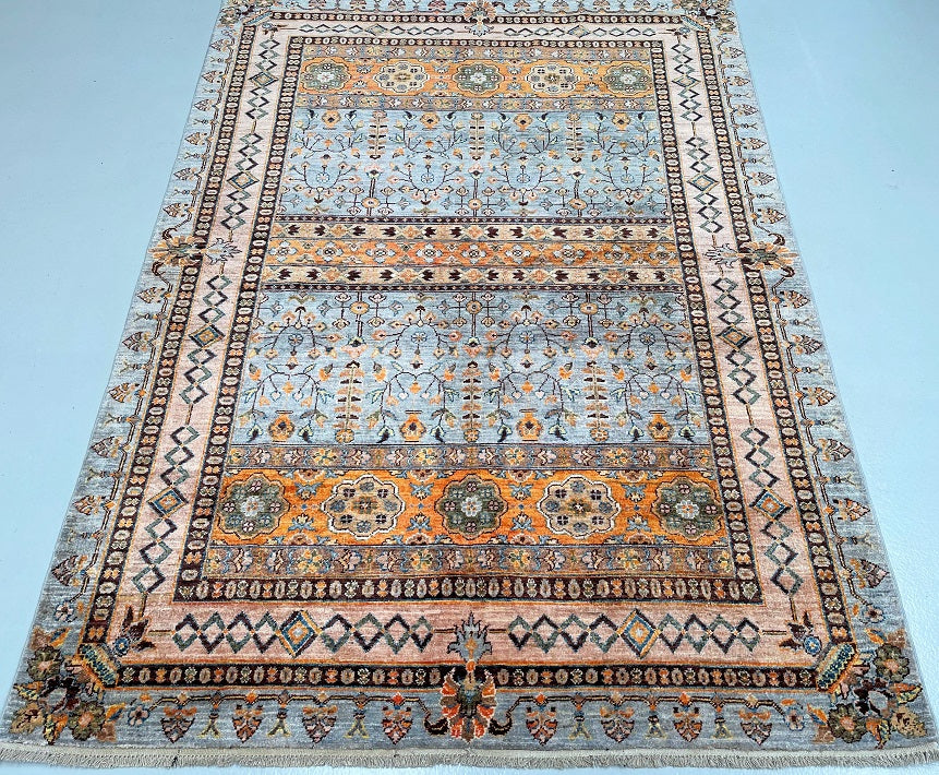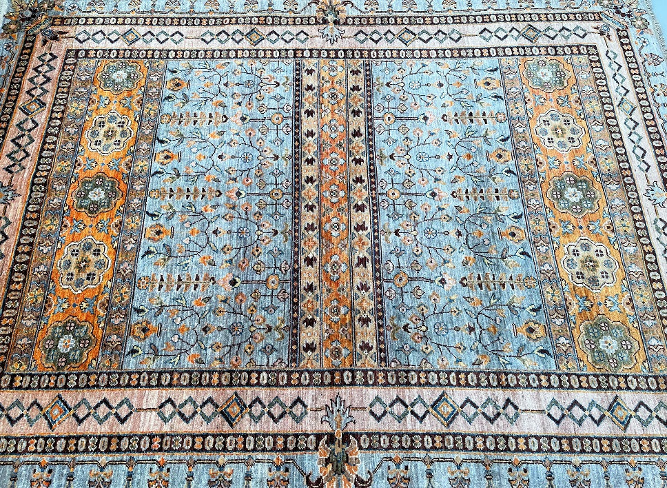 Authentic Hand Knotted Afghan Sultani Chobi Rug. Above All It Is Pure Hand Spun Wool Pile On Cotton Base. Beige, Grey, Light Blue And Orange Tones Dyed Using Traditional Methods (Vegetable Dyes). Last of True Woven Nomadic Art.