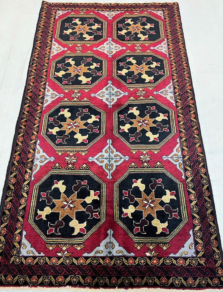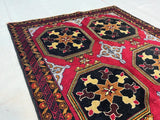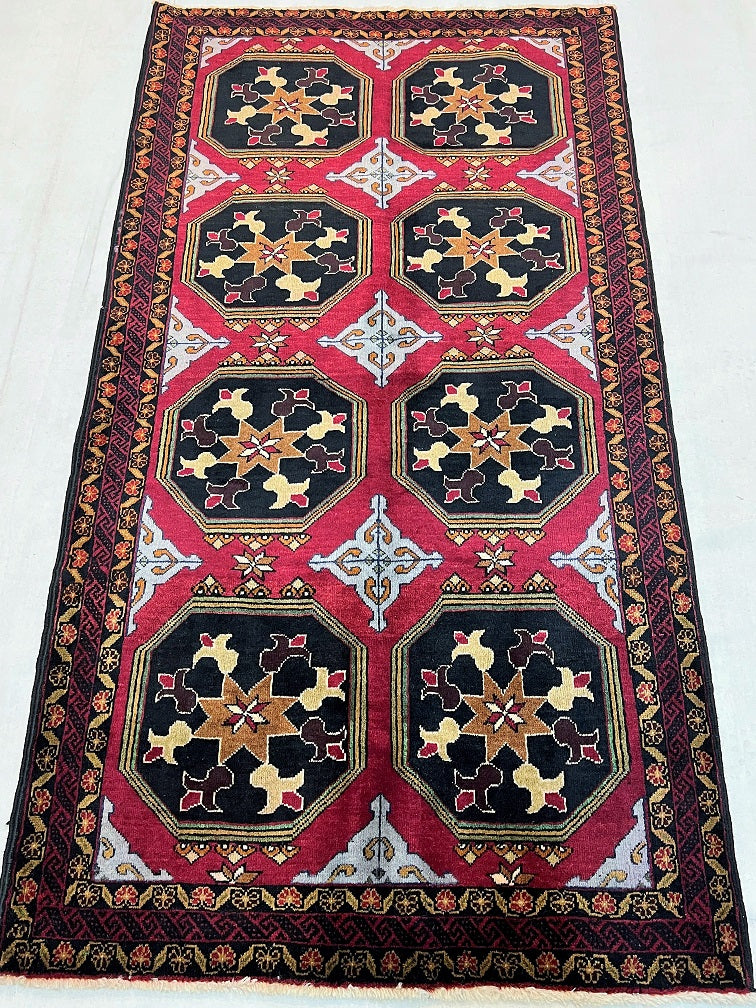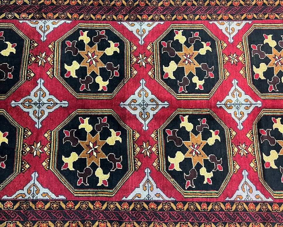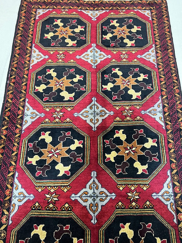 Authentic Handmade Tribal Persian Balouchi Rug. Above All It Has A Pure Hand Spun Wool Pile On Wool Base. It Also Has A Red, Black, Beige, Yellow And Mustard Tone Dyed Using Traditional Methods.