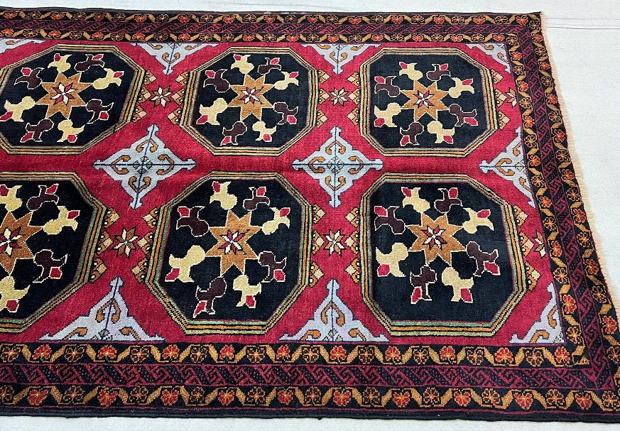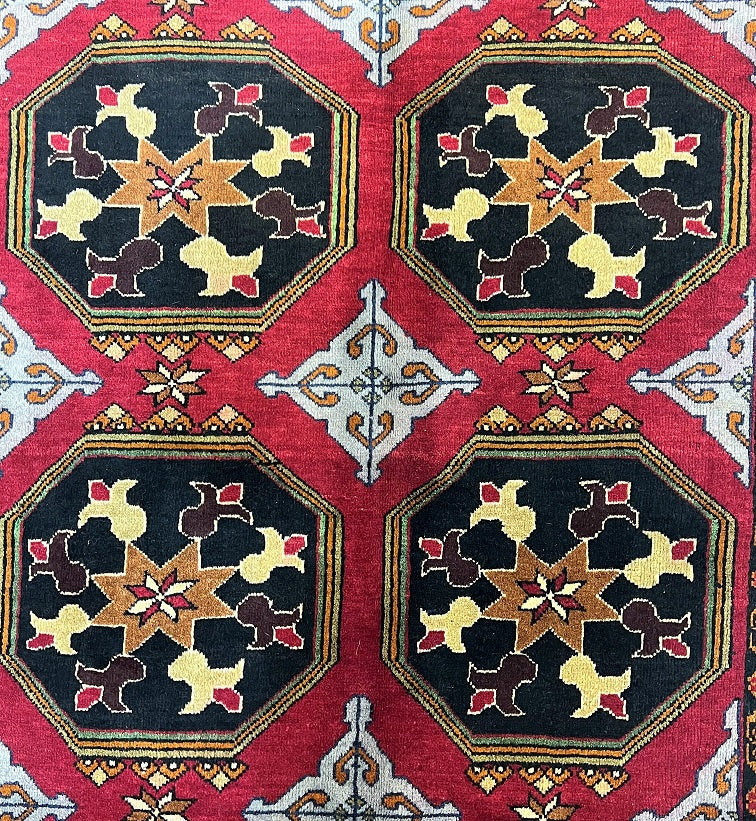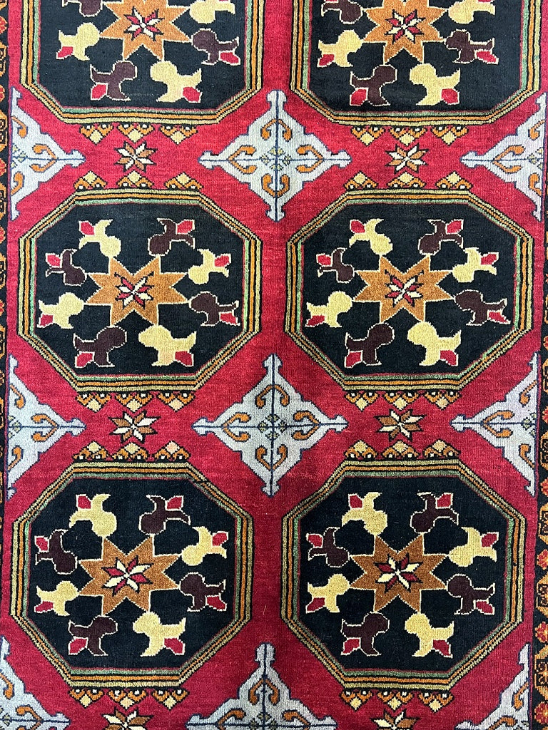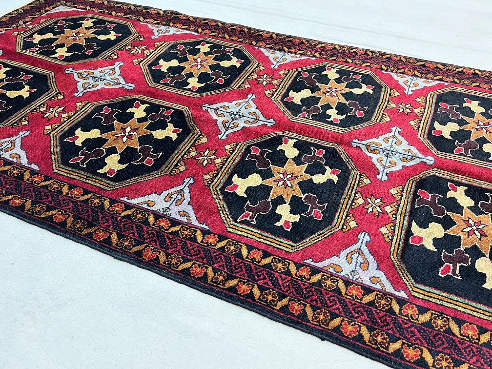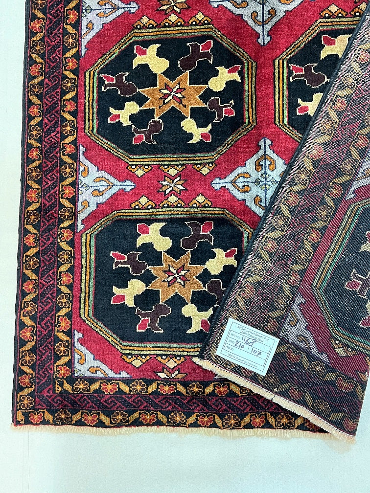 Authentic Handmade Tribal Persian Balouchi Rug. Above All It Has A Pure Hand Spun Wool Pile On Wool Base. It Also Has A Red, Black, Beige, Yellow And Mustard Tone Dyed Using Traditional Methods.