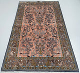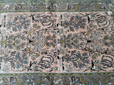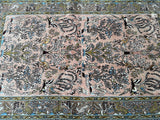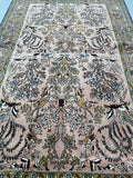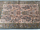 Superb Coffee Table Size Handmade Persian Qum Rug. First Of All It Is Hard To Get This Design In Original Handmade Rugs. Lamb’s Wool and Silk Inlaid Pile on Cotton Base. Light Brown, Beige, Gold, Mustard Green, Black And French Blue Tone Dyed Using Traditional Methods. It Also Has a Fine Weave Which Would Add Depth To Any Carpet Collection.