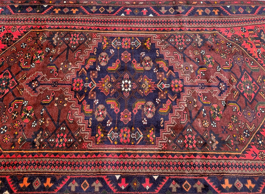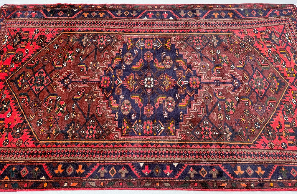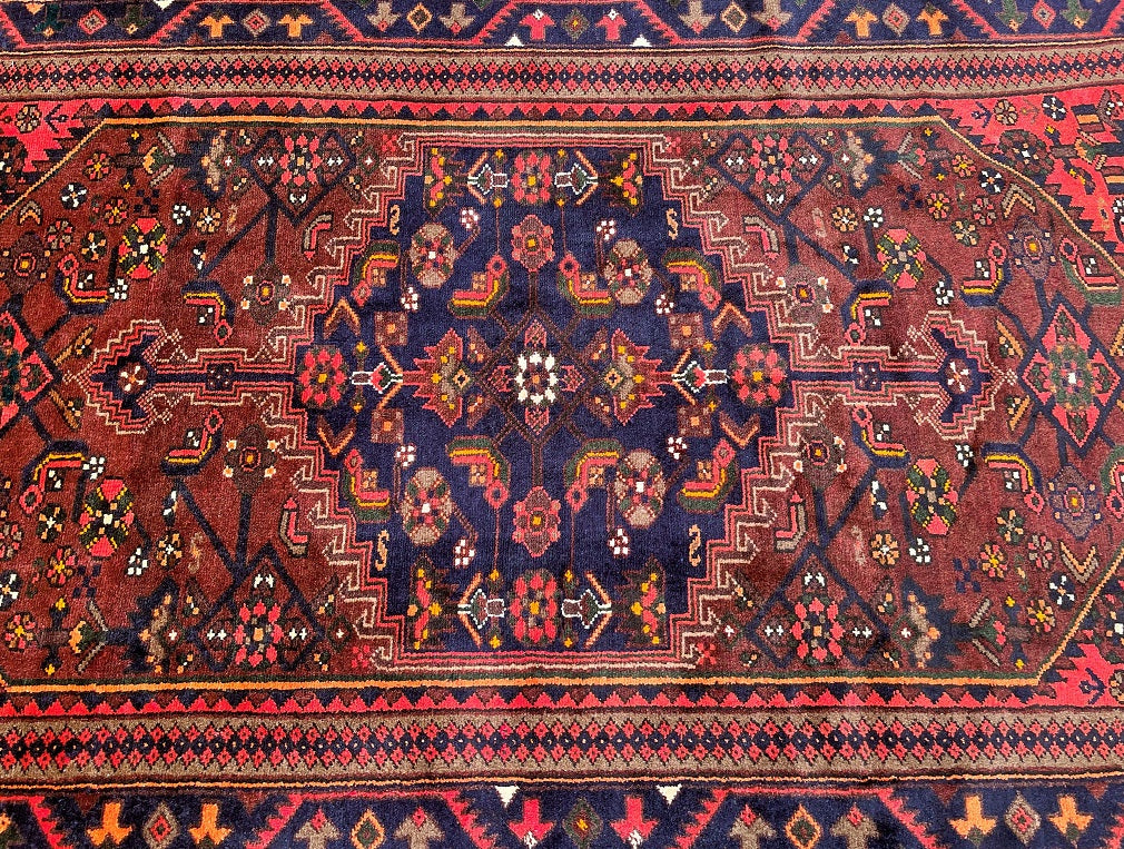 Coffee Table To Room Size Genuine Handmade Persian Zanjan Rug. Above All It Is A Hard Wearing Rug. Pure Hand Spun Wool Pile On Cotton Base. It Also Has a Brown, Blue, Yellow, Green And Orange Tone Dyed Using Traditional Methods.