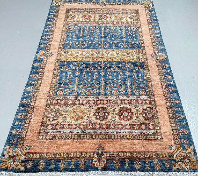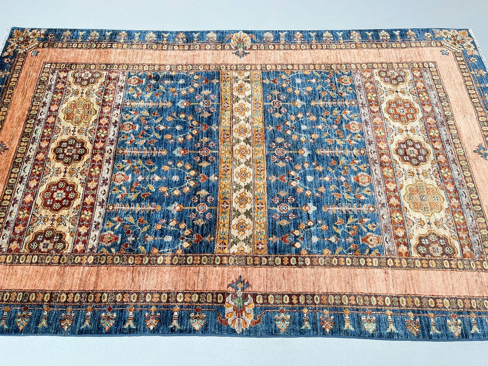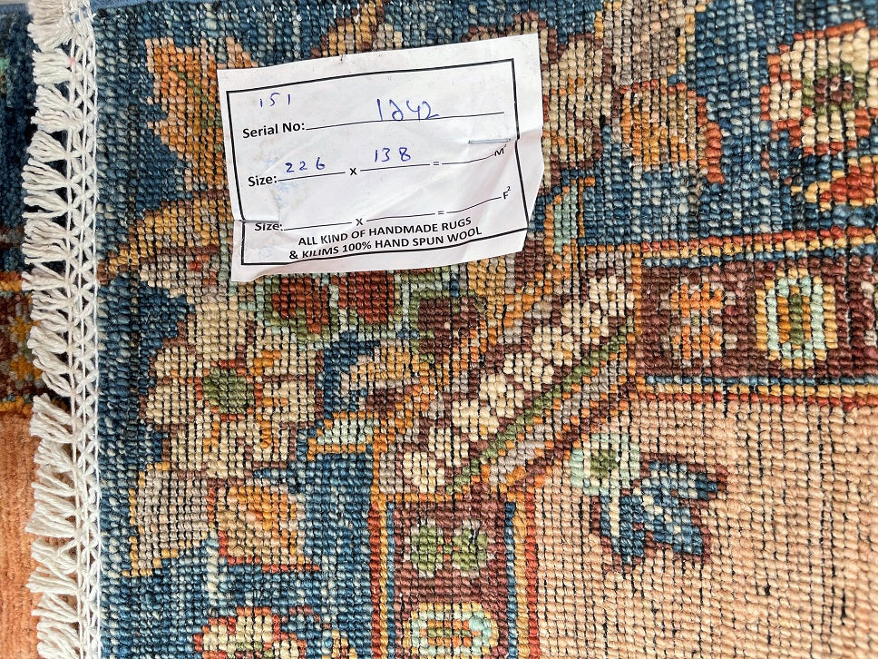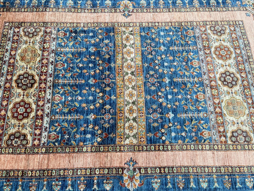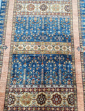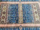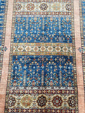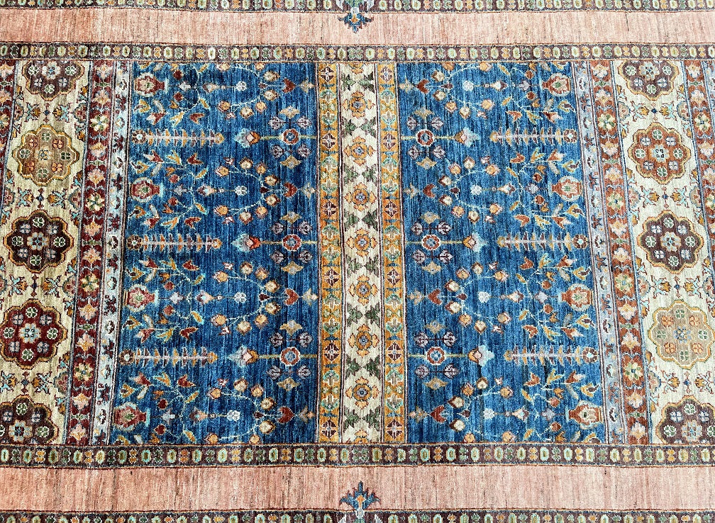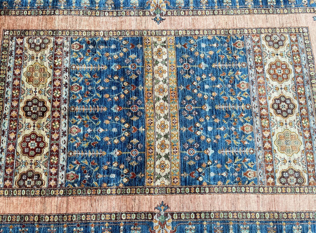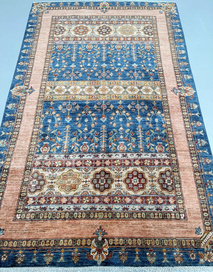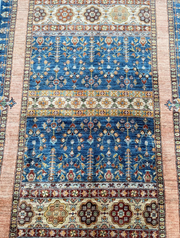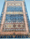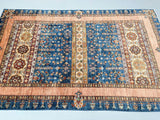 Coffee Table Size Genuine Hand Knotted Afghan Chobi Rug. Above All It Has A Hand Spun Wool Pile On Cotton Base. Blue, Beige, Green, Brown, Caramel And Orange Tone Dyed Using Traditional Methods (Vegetable Dyes). Last of True Woven Nomadic Art.
