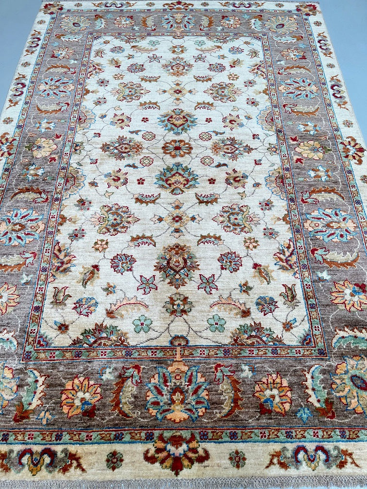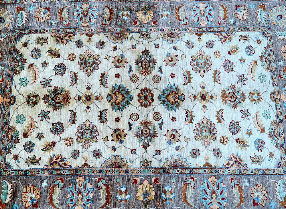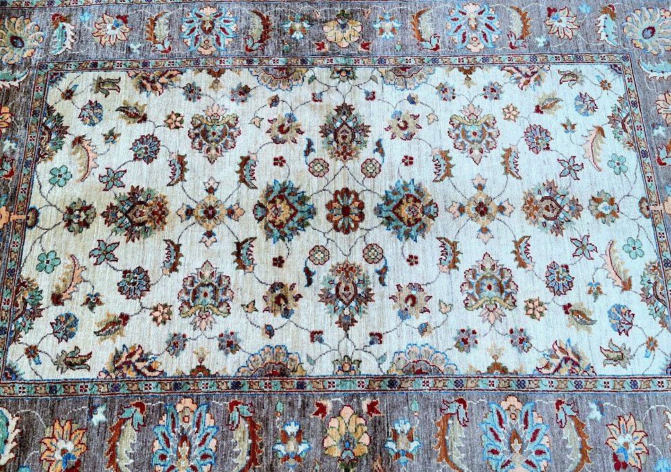 Authentic Hand Knotted Afghan Sultani Chobi Rug. Above All It Is Pure Hand Spun Wool Pile On Cotton Base. Beige, Brown, Turquoise, Gold And Terracotta Tone Dyed Using Traditional Methods (Vegetable Dyes). Last of True Woven Nomadic Art.