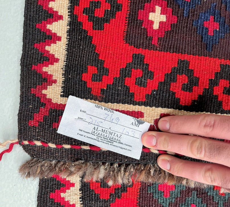 Certified Handmade Tribal Afghan Kilim Rug 215x103cm