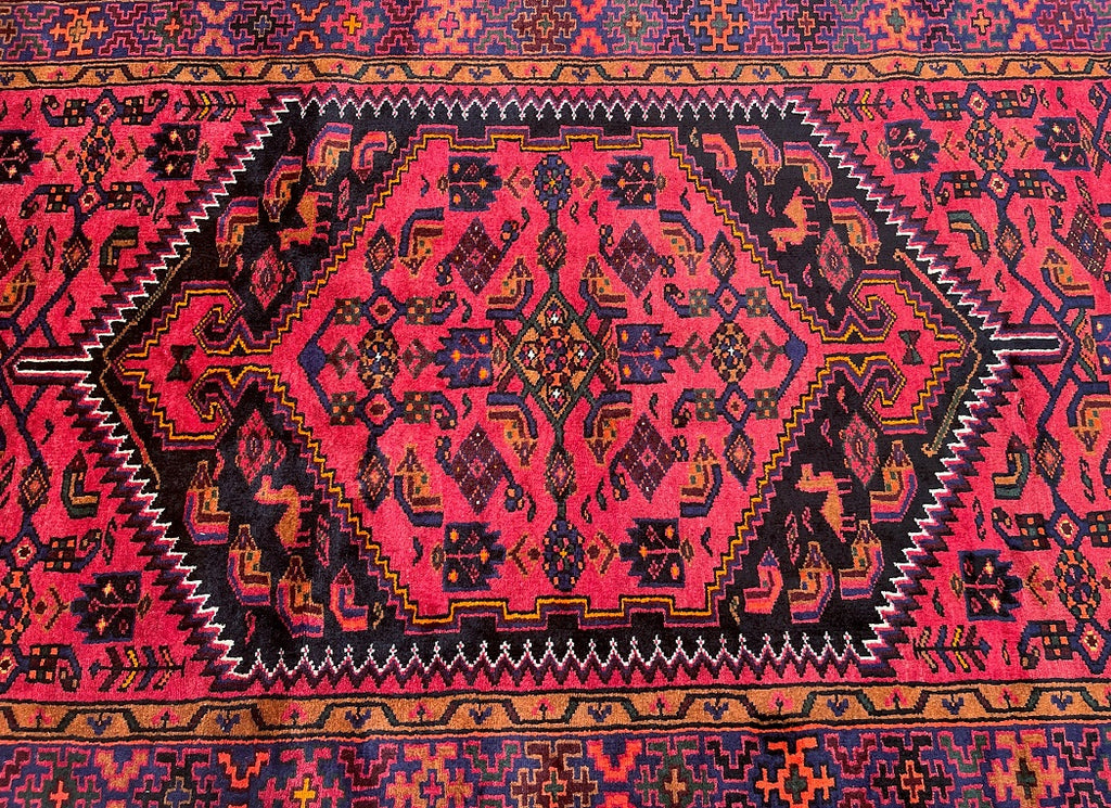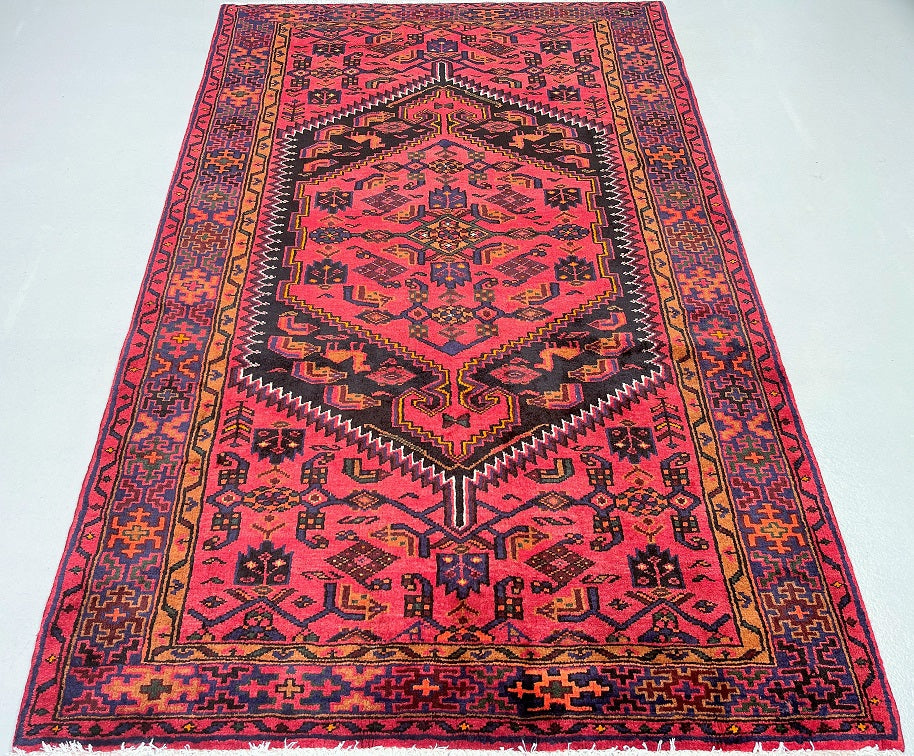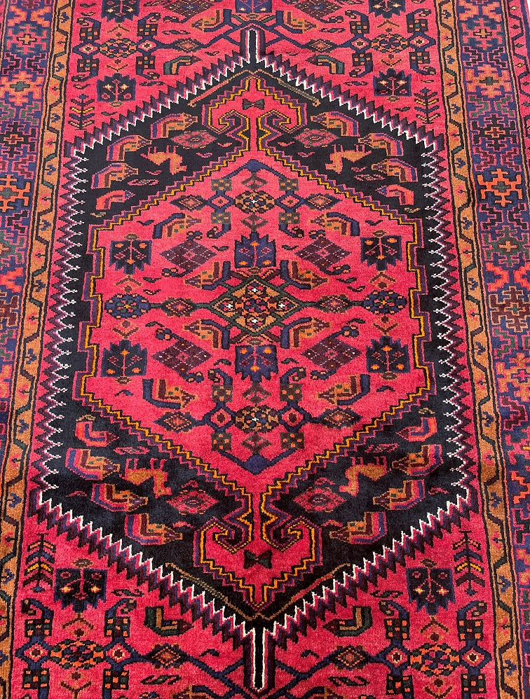 Coffee Table Size Authentic Handmade Persian Zanjan Rug. Above All It Is A Unique Hand Crafted Nomadic Rug. Pure Hand Spun Wool Pile On Cotton Base. It Also Has A Red, Blue, Beige, Mustard, Brown And Green Tone Dyed Using Traditional Methods.