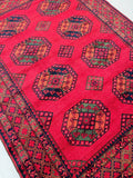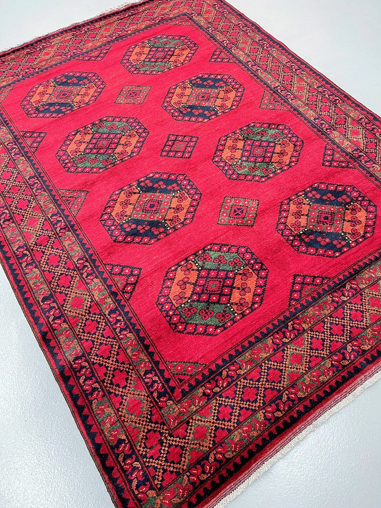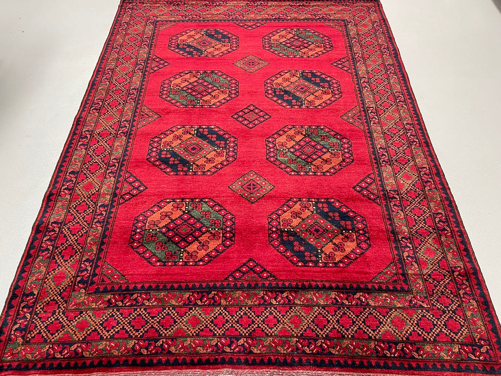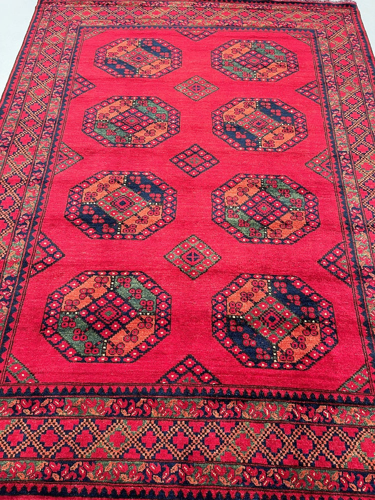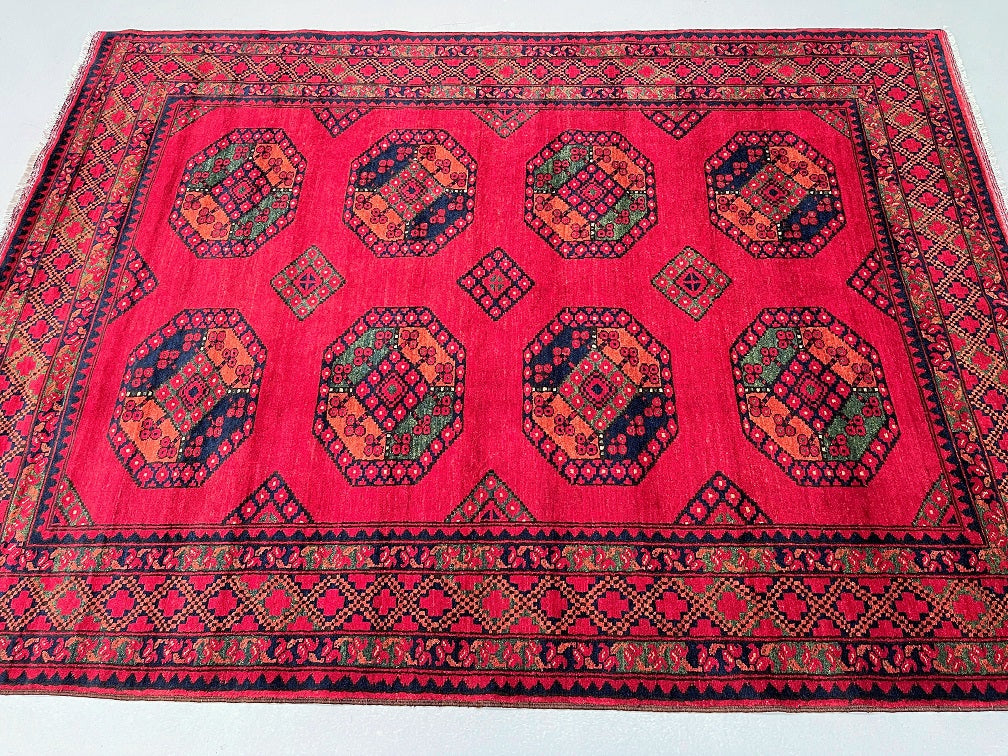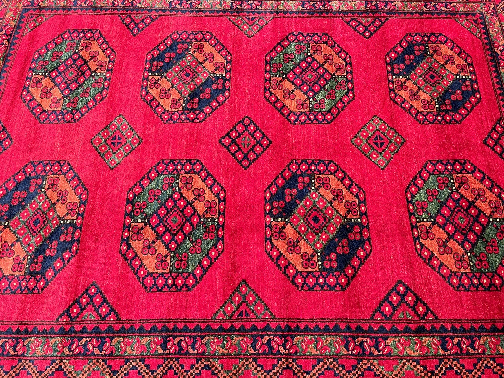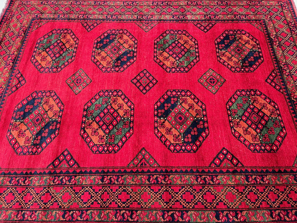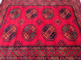 Room Size Authentic Hand Knotted Afghan Ersari Rug. It Also Has A Hand Spun Wool Pile On Cotton Base. Burnt Terracotta Background Dyed Using Traditional Methods. Last Of True Woven Nomadic Art.