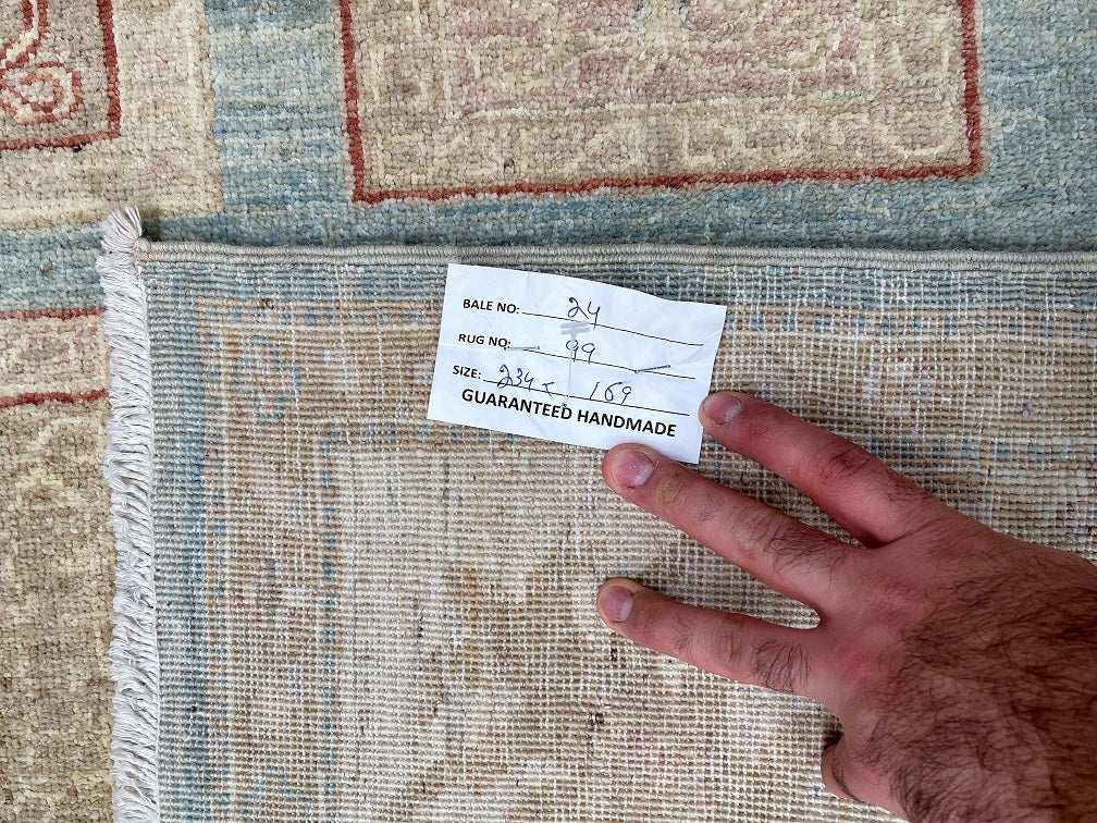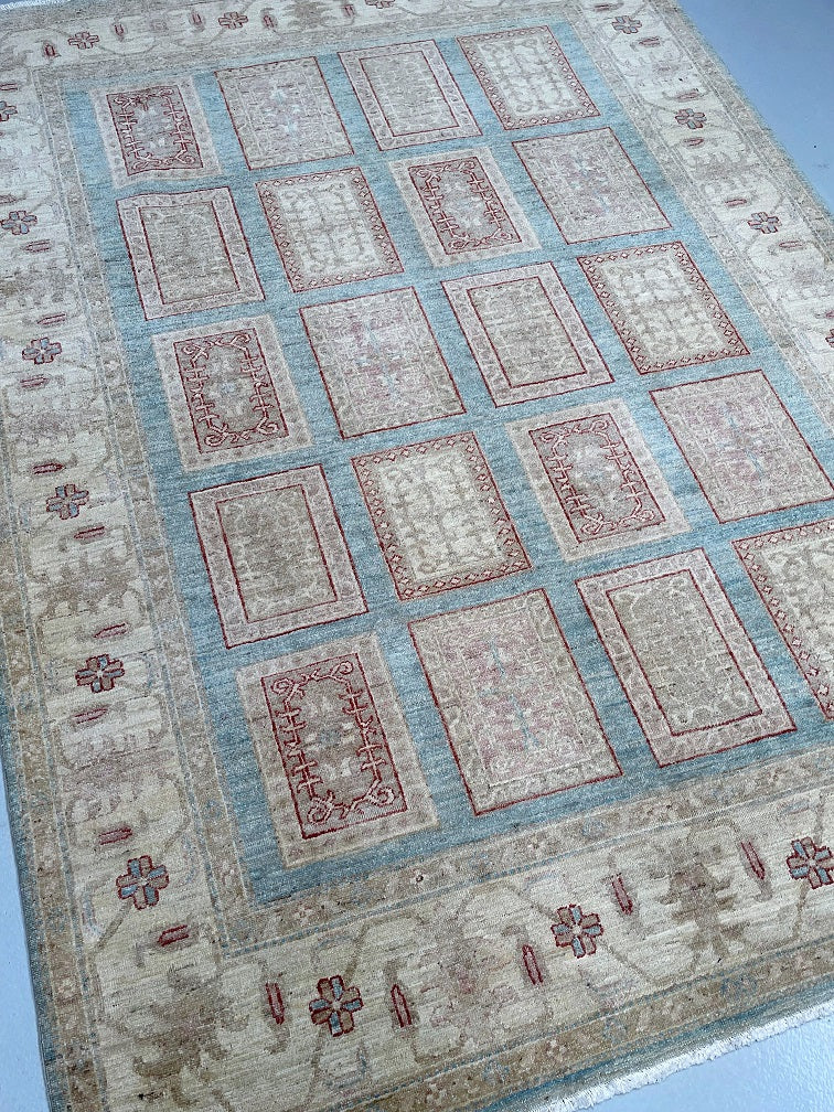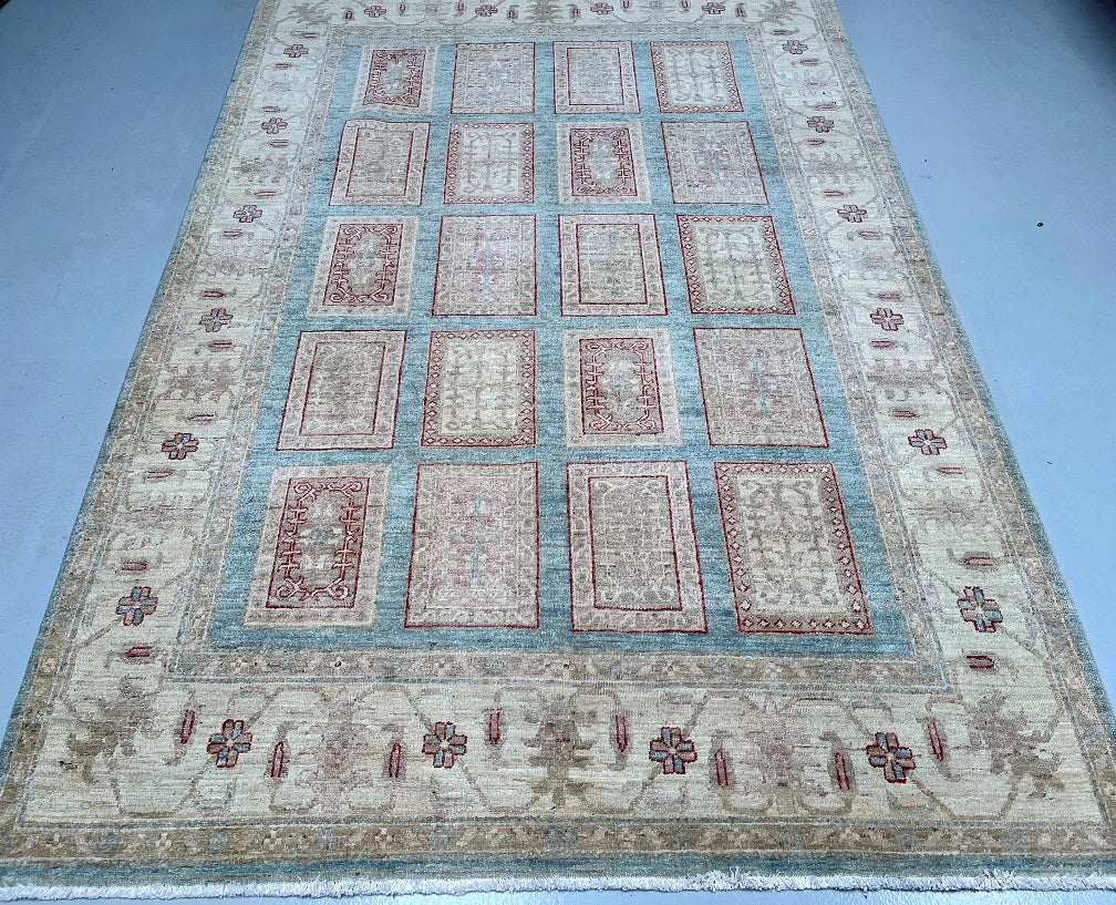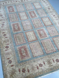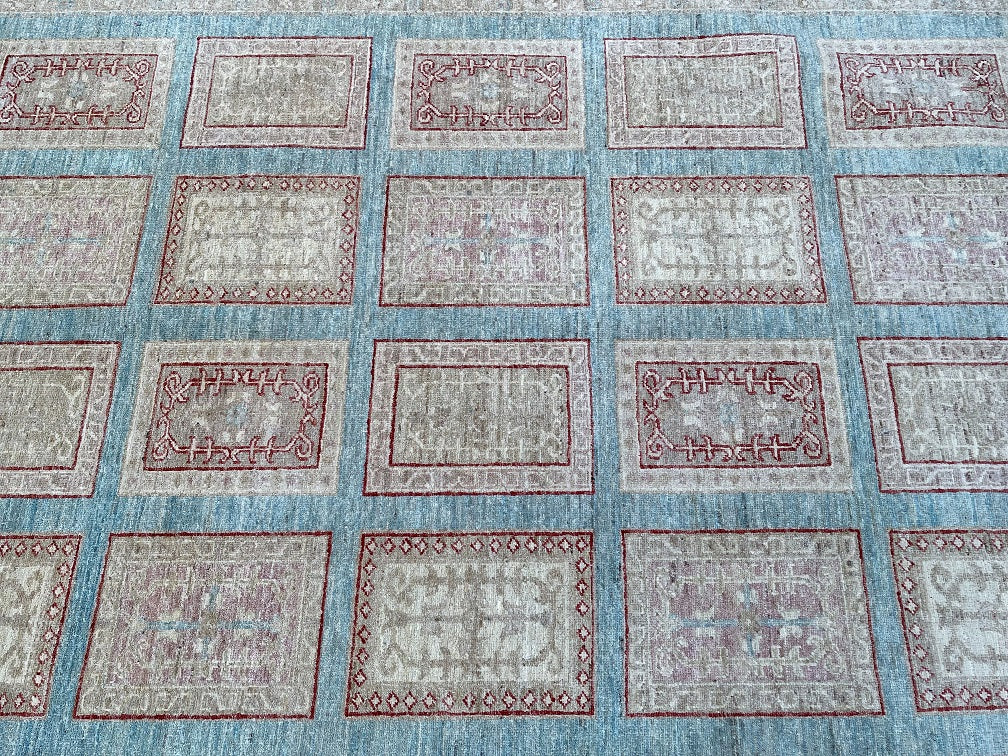Unique Room Size Authentic Handmade Afghan Chobi Rug. Above All It Is Pure Hand Spun Wool Pile On Cotton Base. Faded Pastel Beige, French Blue, Red And Soft Pink Tone Dyed Using Traditional Methods (Vegetable Dyes). Last Of True Woven Nomadic Art.