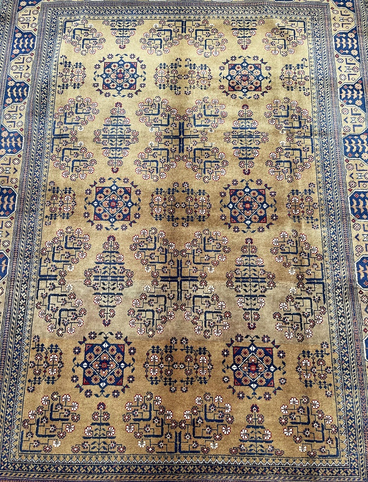 Superb Merino Wool Authentic Hand Knotted Afghan Ersari Rug. Caramel/Beige And Indigo Blue Tone Dyed Using Traditional Methods. Last Of True Woven Nomadic Art.