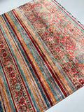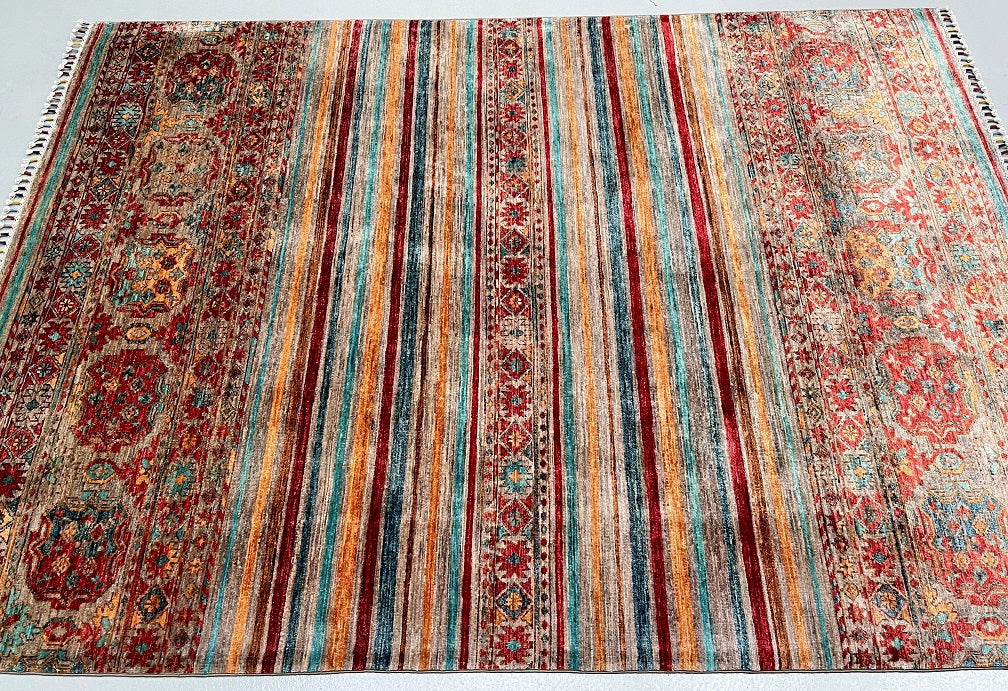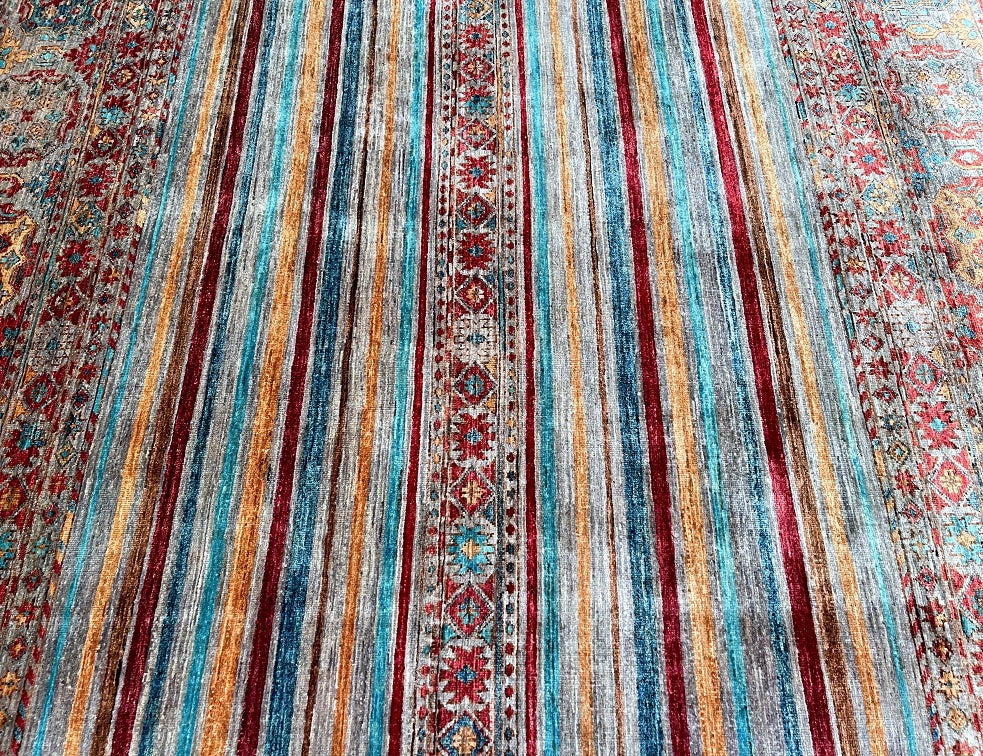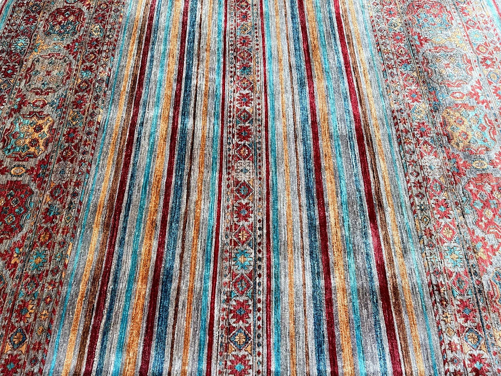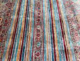 Gorgeous Room Size Shawl Design Genuine Hand Knotted Super Kazak Rug. Above All It Is Pure Hand Spun Wool Pile On Cotton Base. Decorative Multi-Color Tone Dyed Using Traditional Methods (Vegetable Dyes). Last Of True Woven Nomadic Art.