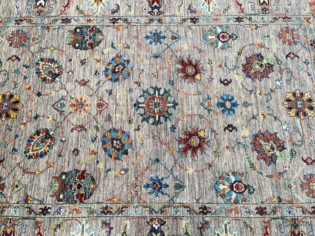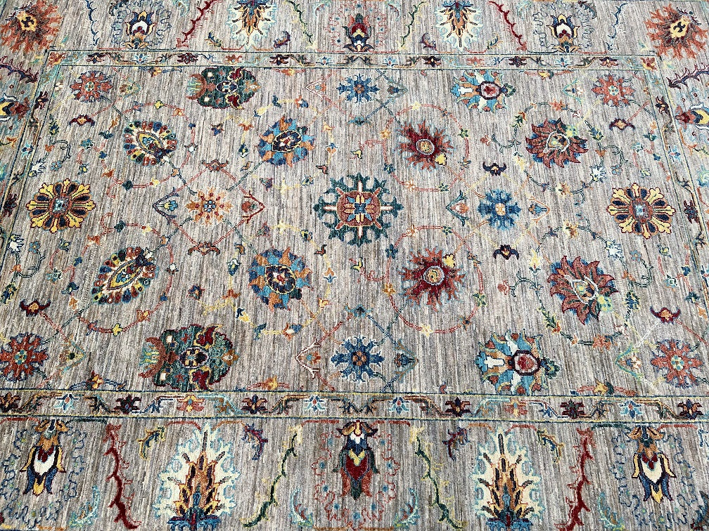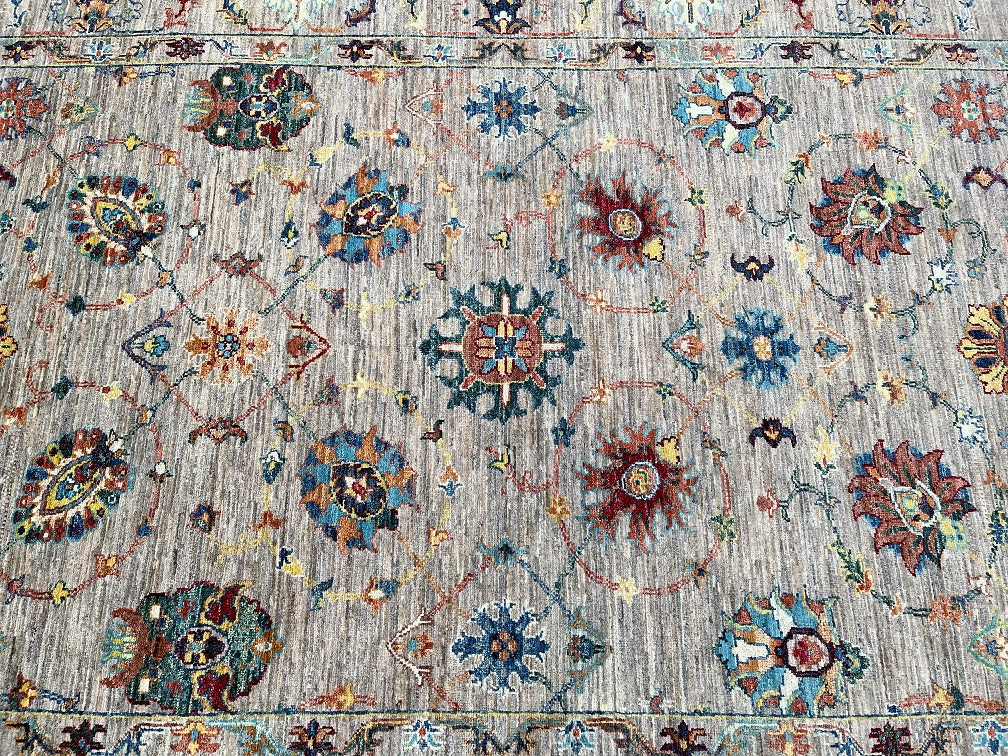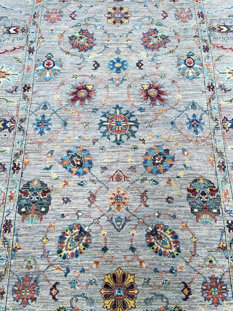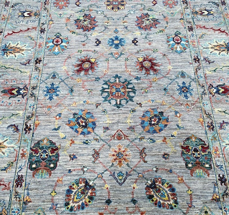 Amazing Room Size Authentic Hand Knotted Afghan Sultani Chobi Rug. Above All It Is Pure Hand Spun Wool Pile On Cotton Base. Rare Grey, Beige, Light Brown, Green, Gold, Terracotta, Maroon And Blue Tone Dyed Using Traditional Methods (Vegetable Dyes). Last of True Woven Nomadic Art.