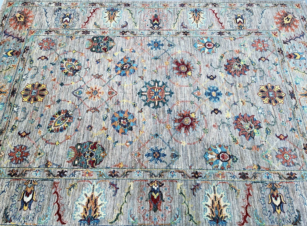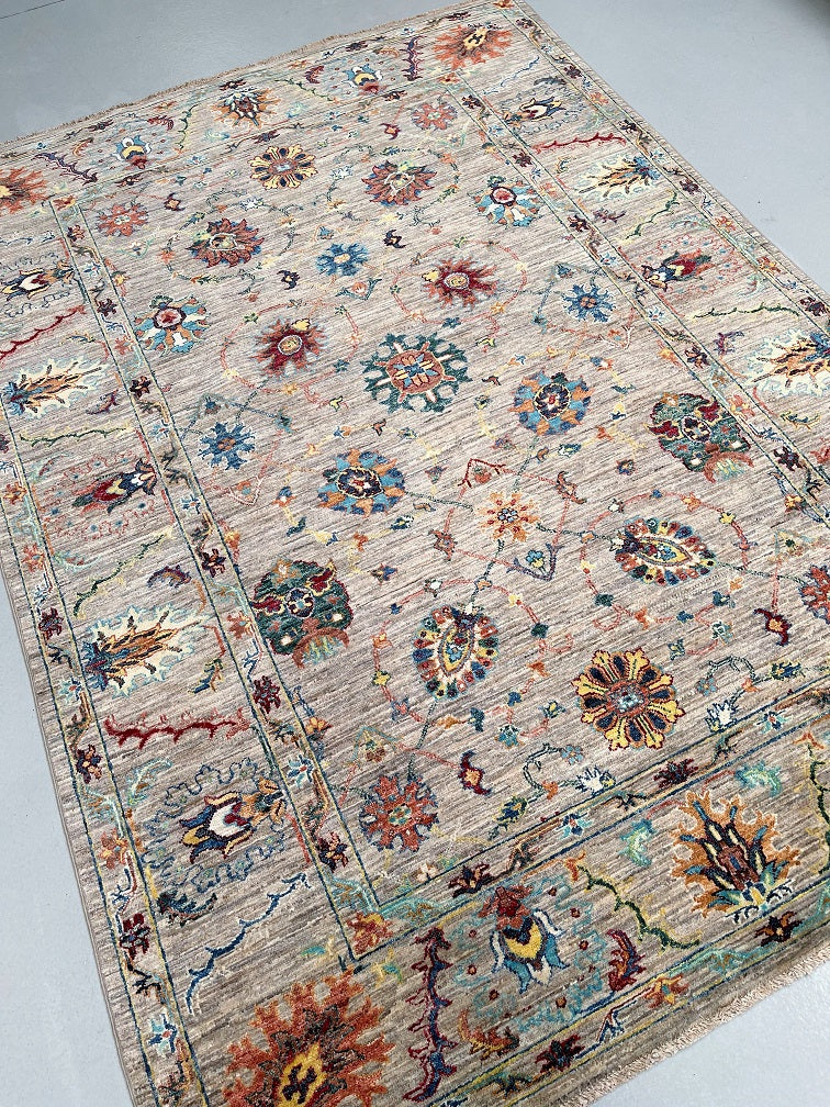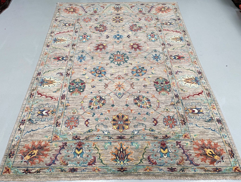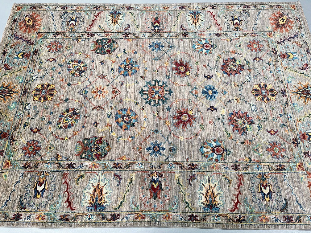 Amazing Room Size Authentic Hand Knotted Afghan Sultani Chobi Rug. Above All It Is Pure Hand Spun Wool Pile On Cotton Base. Rare Grey, Beige, Light Brown, Green, Gold, Terracotta, Maroon And Blue Tone Dyed Using Traditional Methods (Vegetable Dyes). Last of True Woven Nomadic Art.