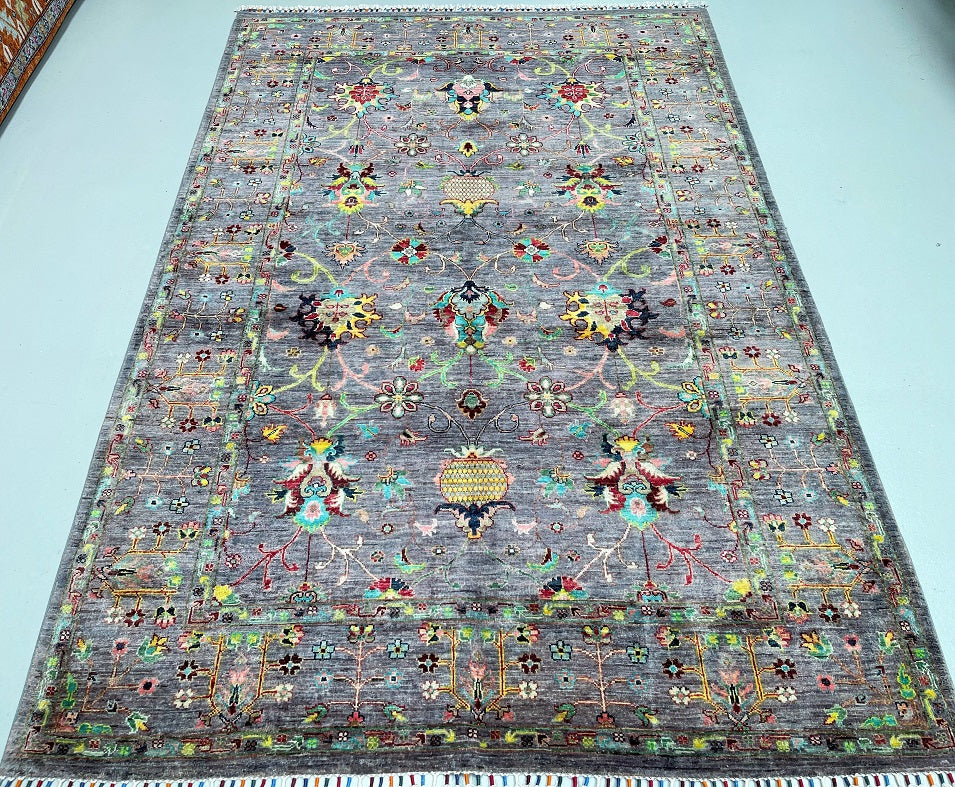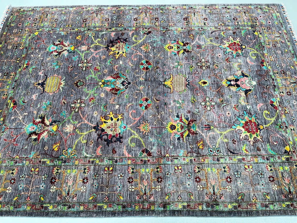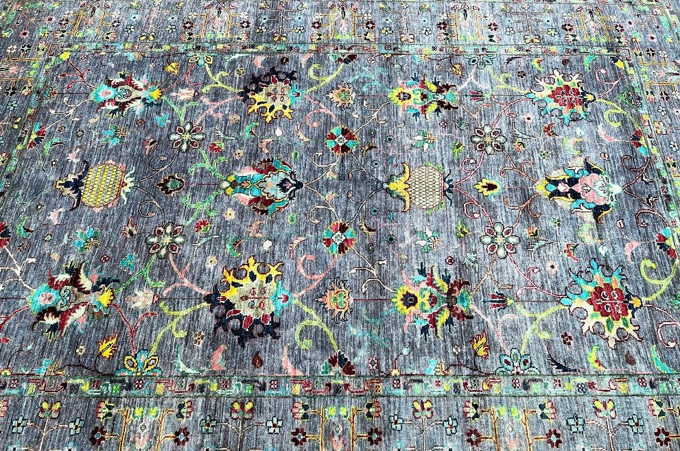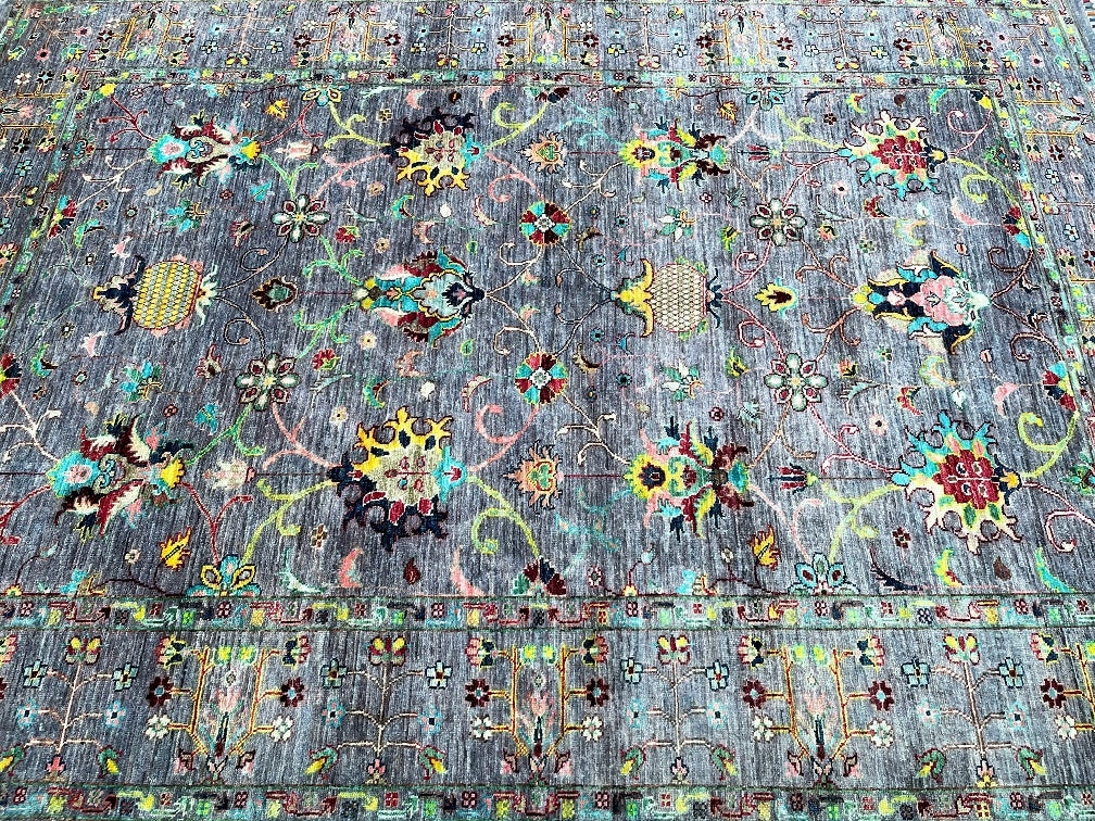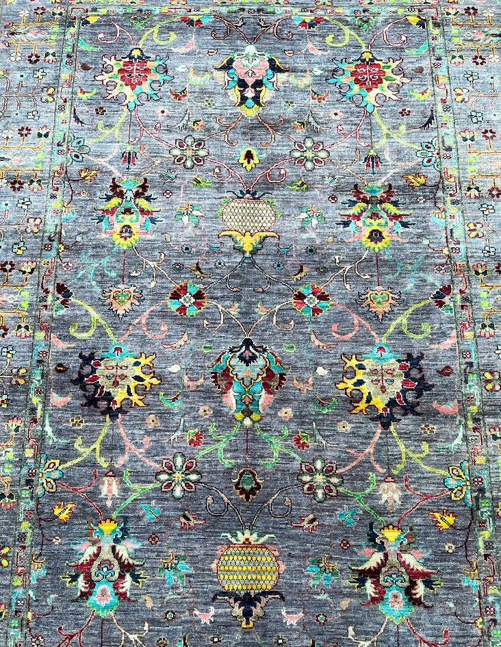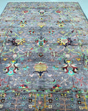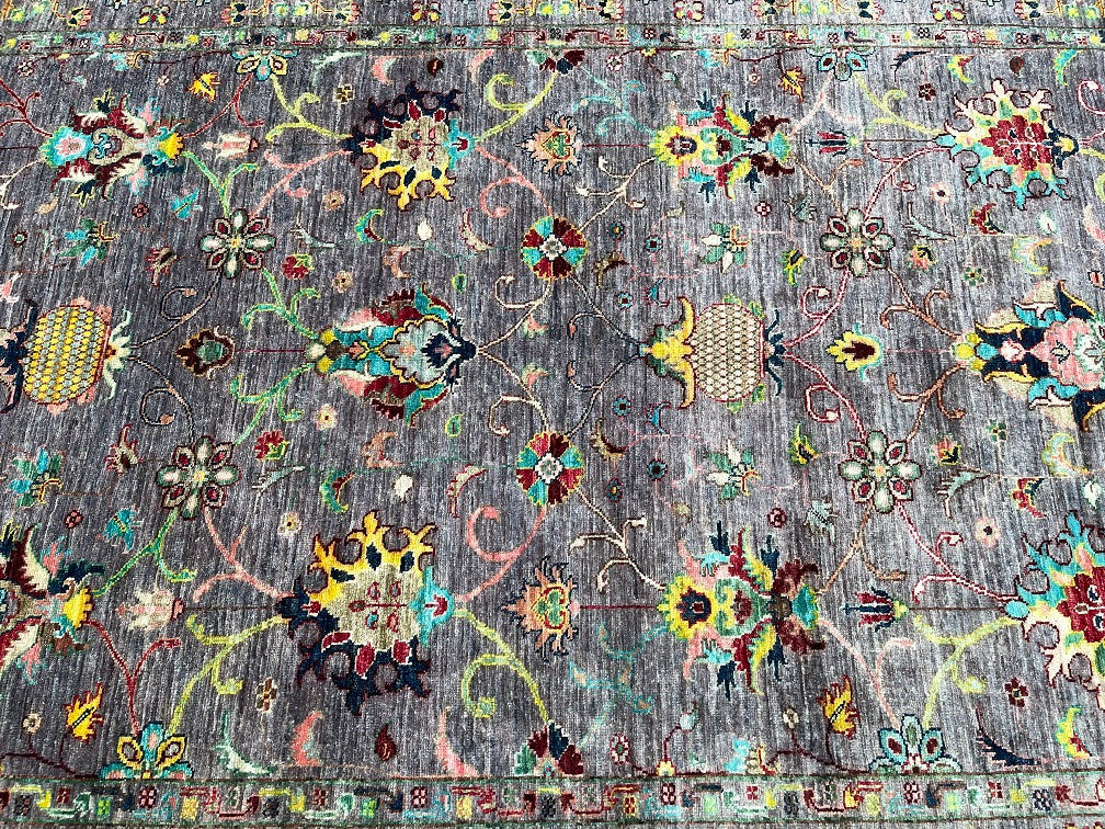Amazing Room Size Authentic Hand Knotted Afghan Sultani Chobi Rug. Above All It Has A Pure Hand Spun Wool Pile On Cotton Base. Rare Grey, Beige, Burgundy, Yellow, Green And Turquoise Tone Dyed Using Traditional Methods (Vegetable Dyes). Last of True Woven Nomadic Art.