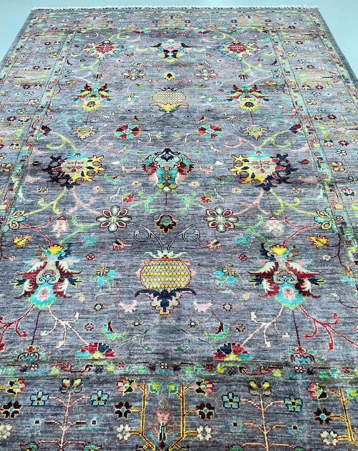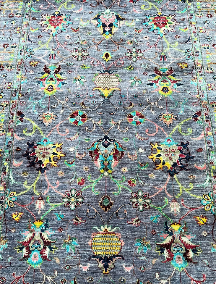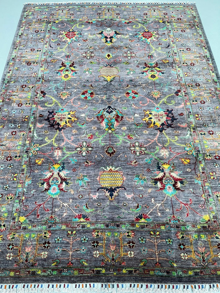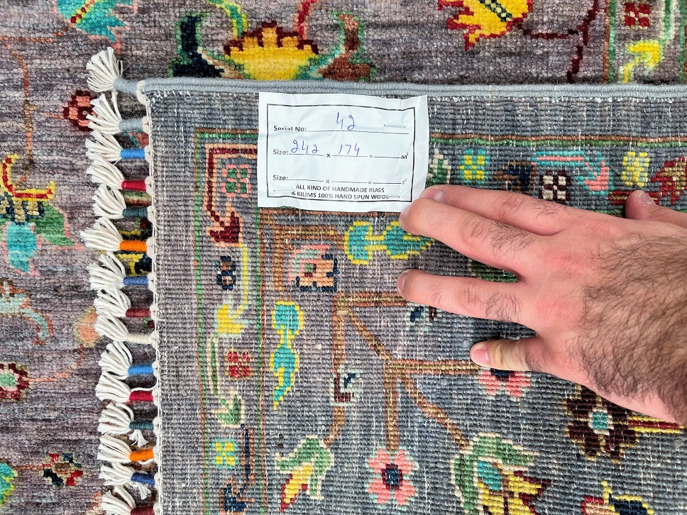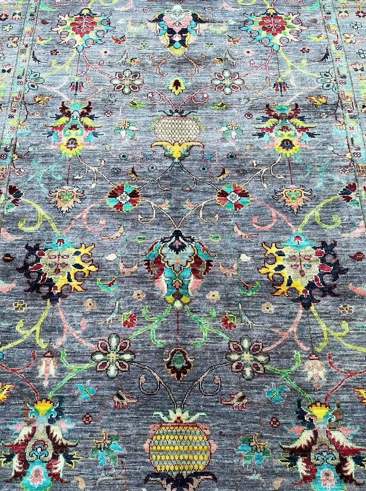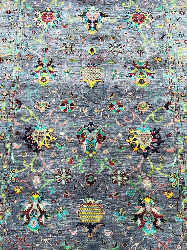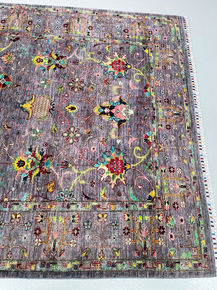 Amazing Room Size Authentic Hand Knotted Afghan Sultani Chobi Rug. Above All It Has A Pure Hand Spun Wool Pile On Cotton Base. Rare Grey, Beige, Burgundy, Yellow, Green And Turquoise Tone Dyed Using Traditional Methods (Vegetable Dyes). Last of True Woven Nomadic Art.