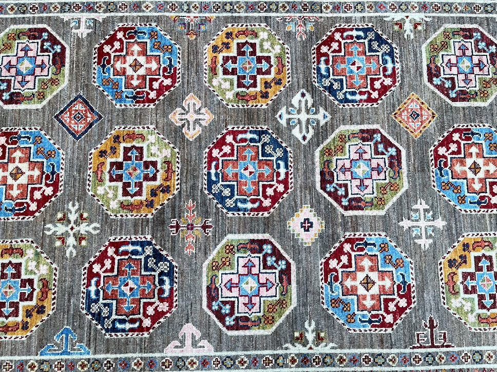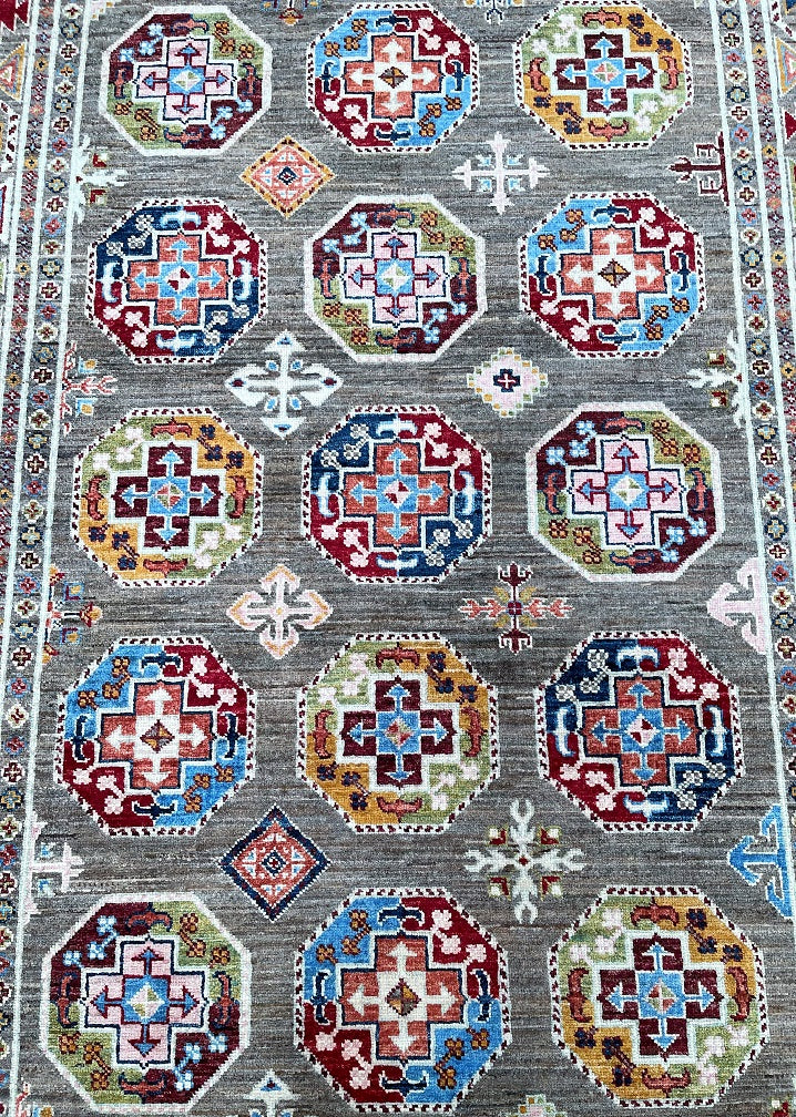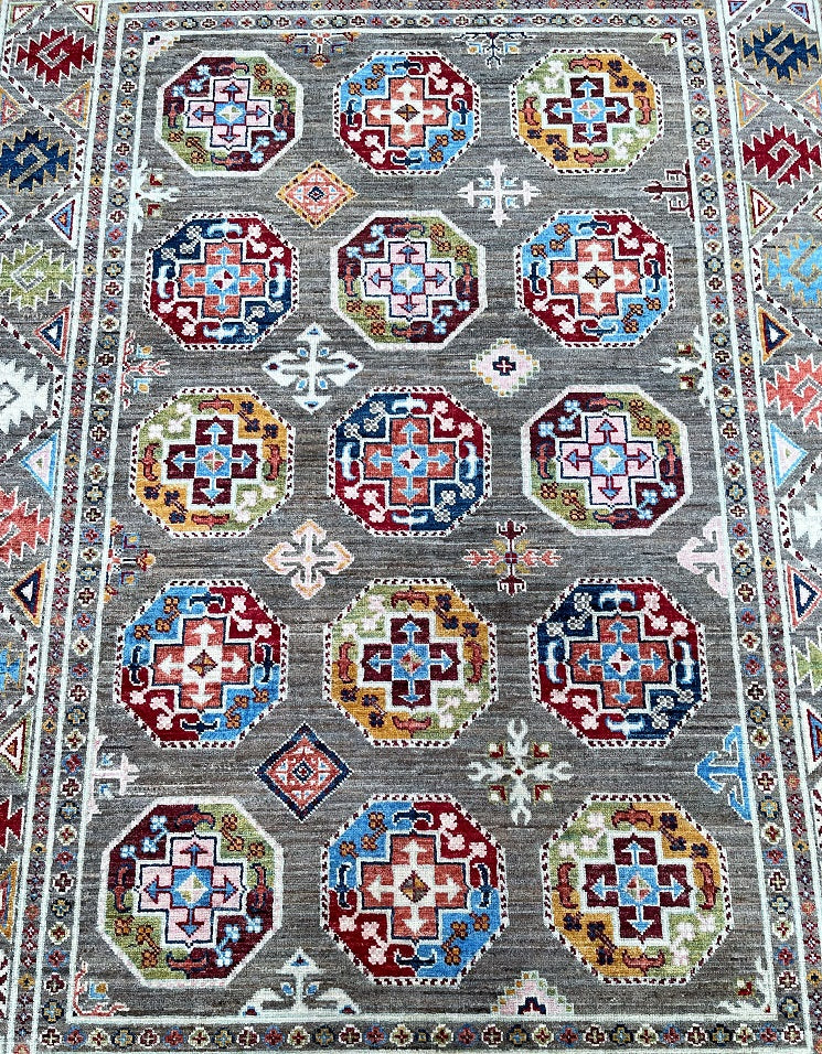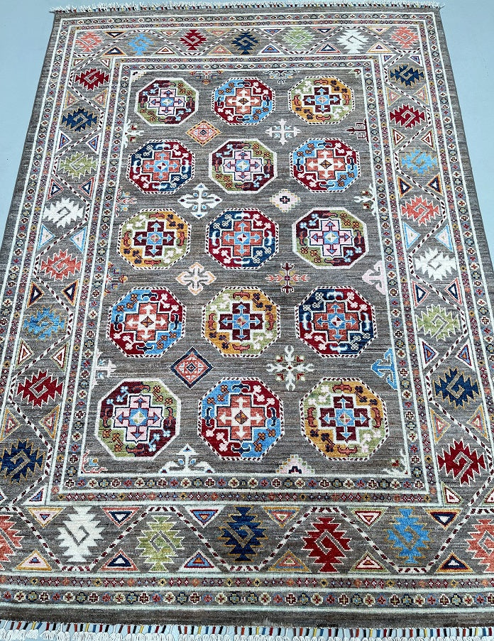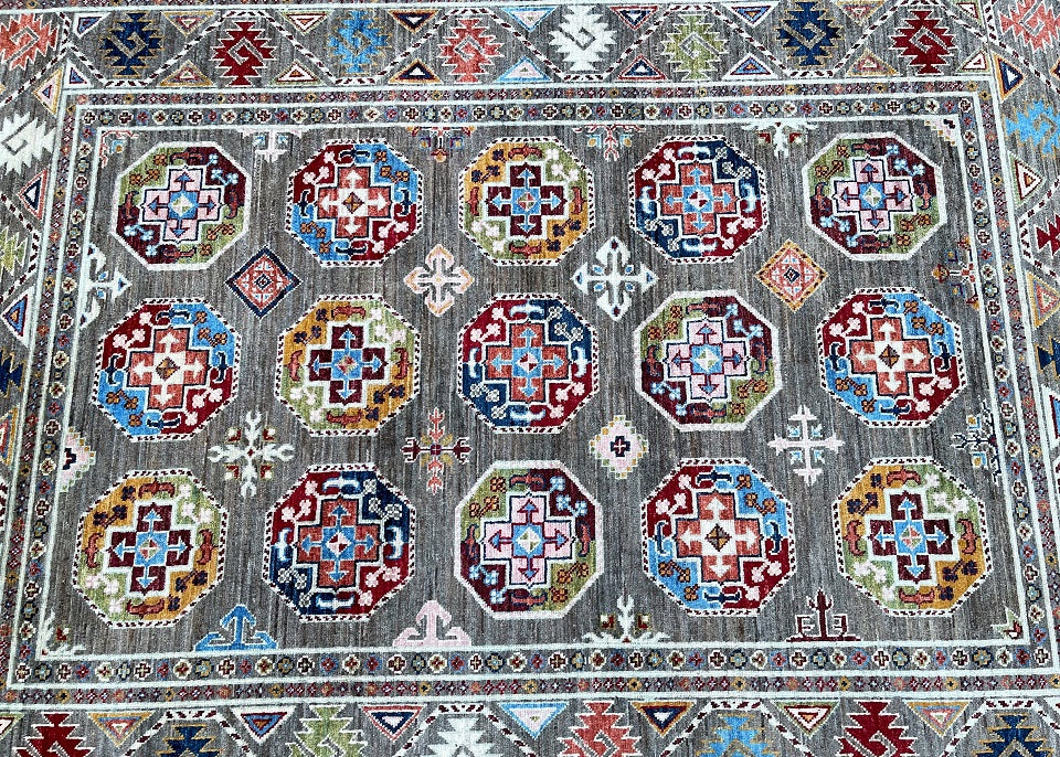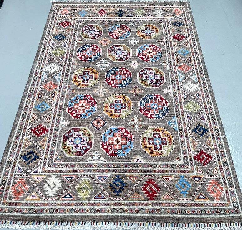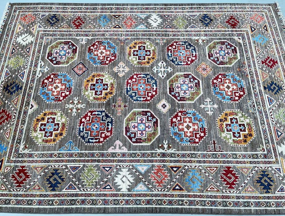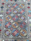 Superb Room Size Genuine Hand Knotted Afghan Ersari Rug. It Also Has A Hand Spun Wool Pile On Cotton Base. Beige, Grey, Terracotta, Burnt Orange, Green And Blue Tone Dyed Using Traditional Methods. Last Of True Woven Nomadic Art.