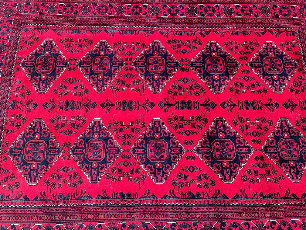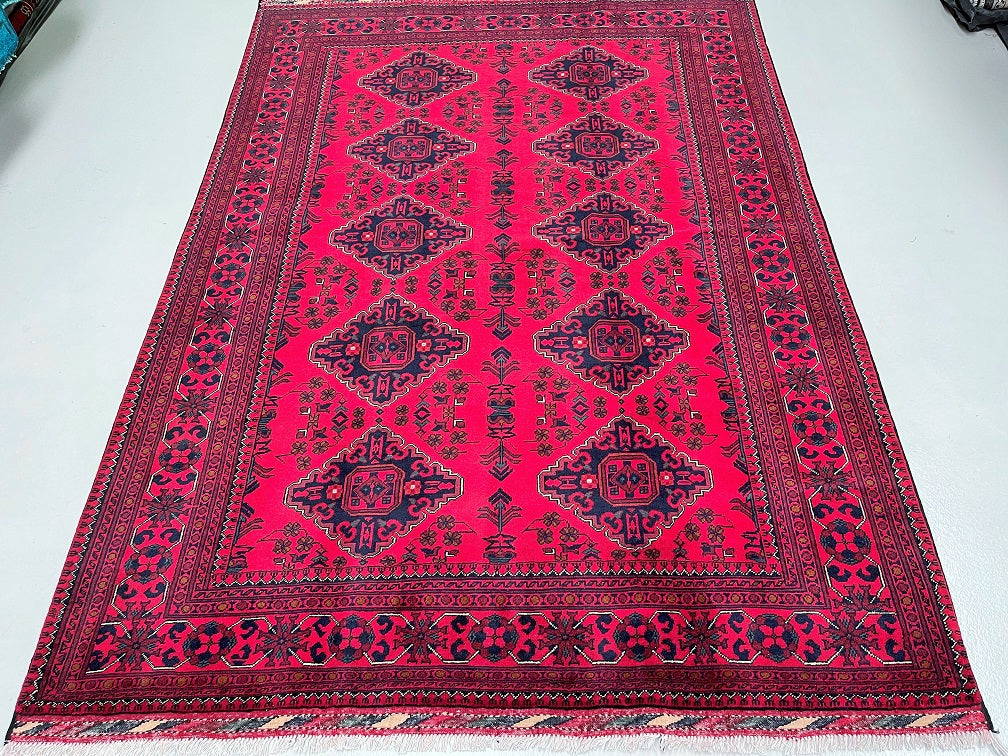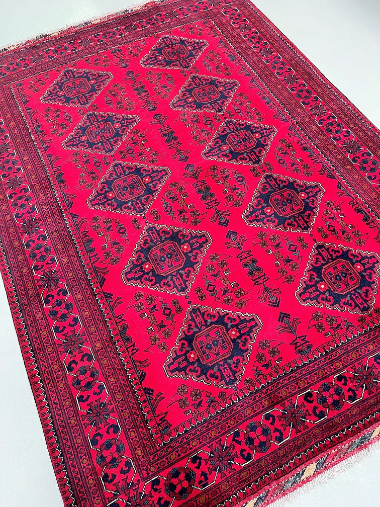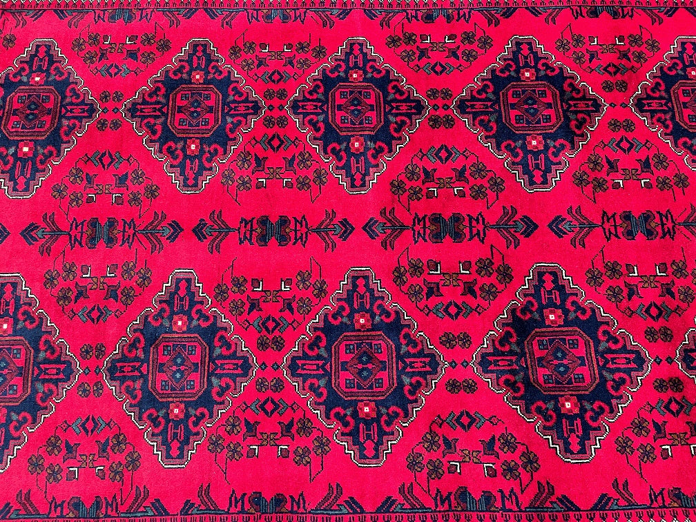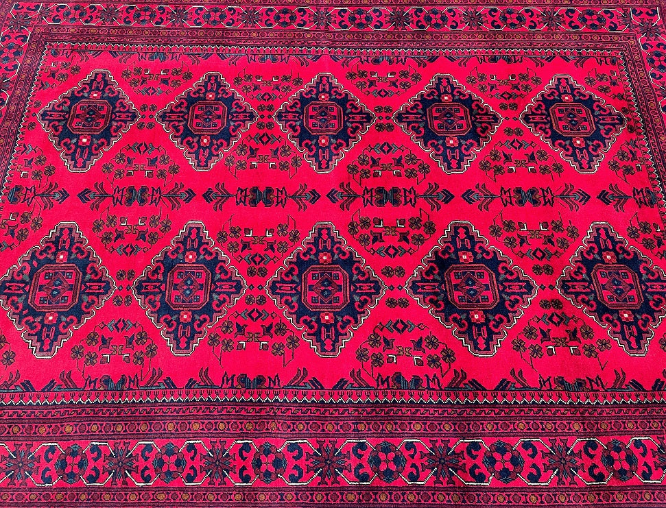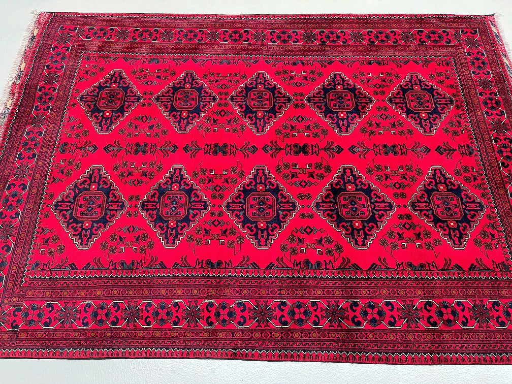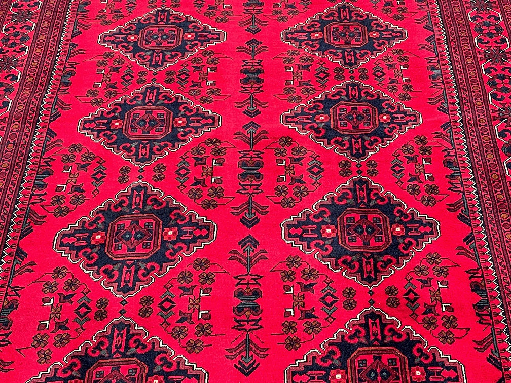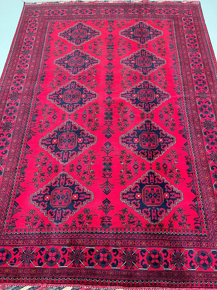 Superb Authentic Hand Knotted Afghan Khamyab Rug. It also Has A Lamb’s Wool Pile On Cotton Base. Rich Burgundy/Maroon Tone Dyed Using Traditional Methods. Last Of True Woven Nomadic Art.