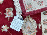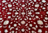 Decorative Room Size Hand Knotted Oriental Jaipur Rug. Above All It Is Wool And Bamboo Silk Pile On Cotton Base. Maroon, Beige, Gold, Pistachio And Pink Tone Dyed Using Traditional Methods.