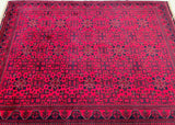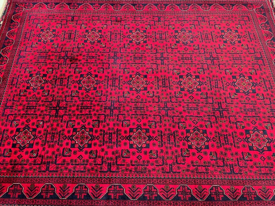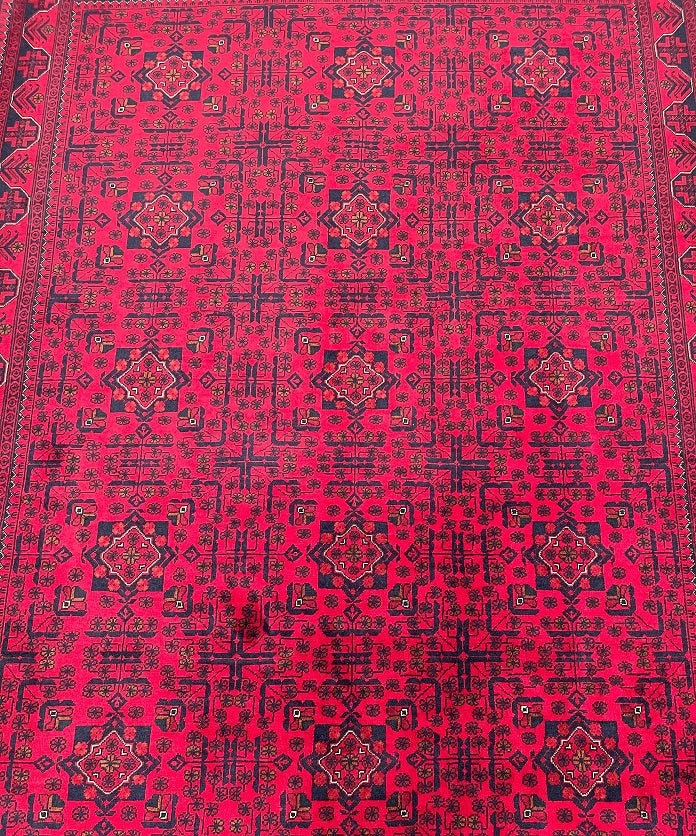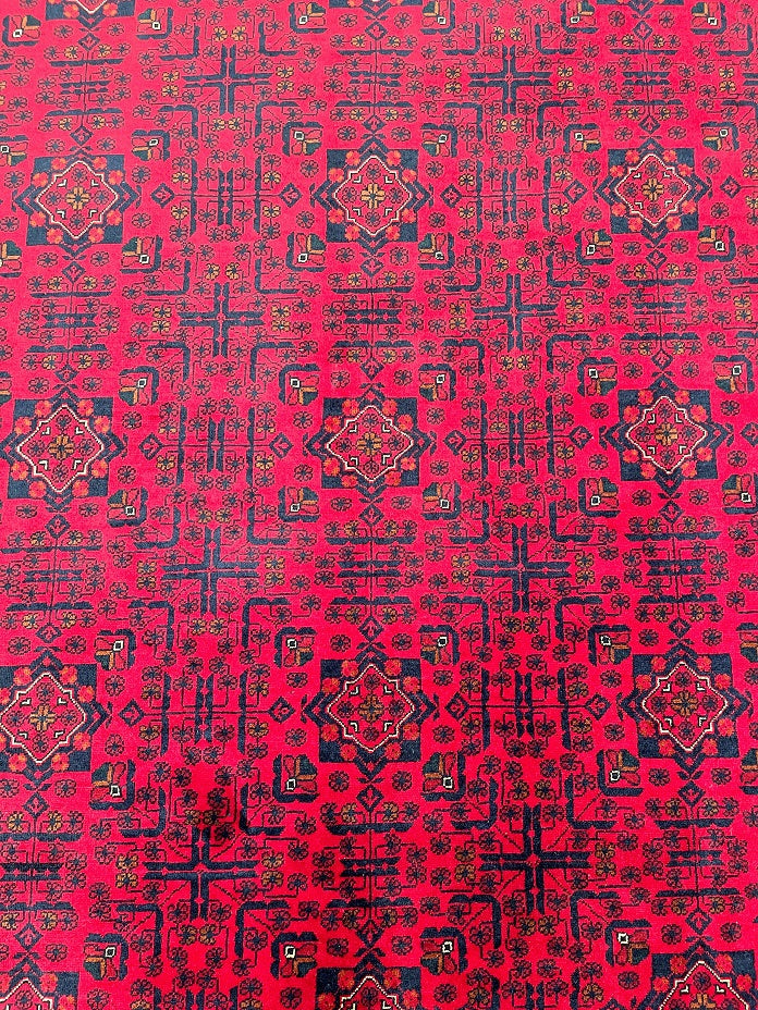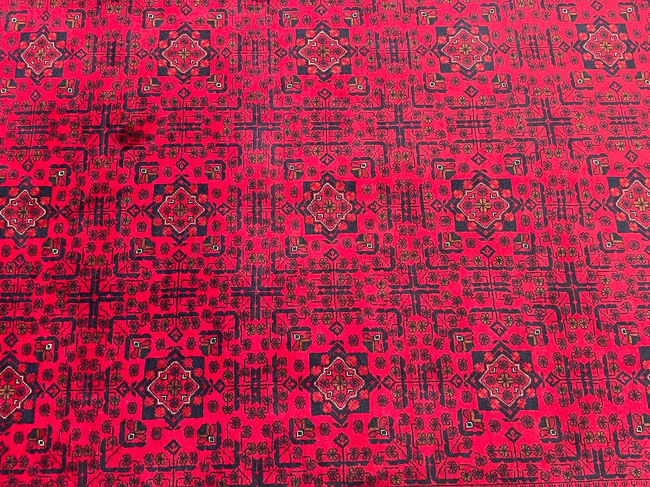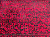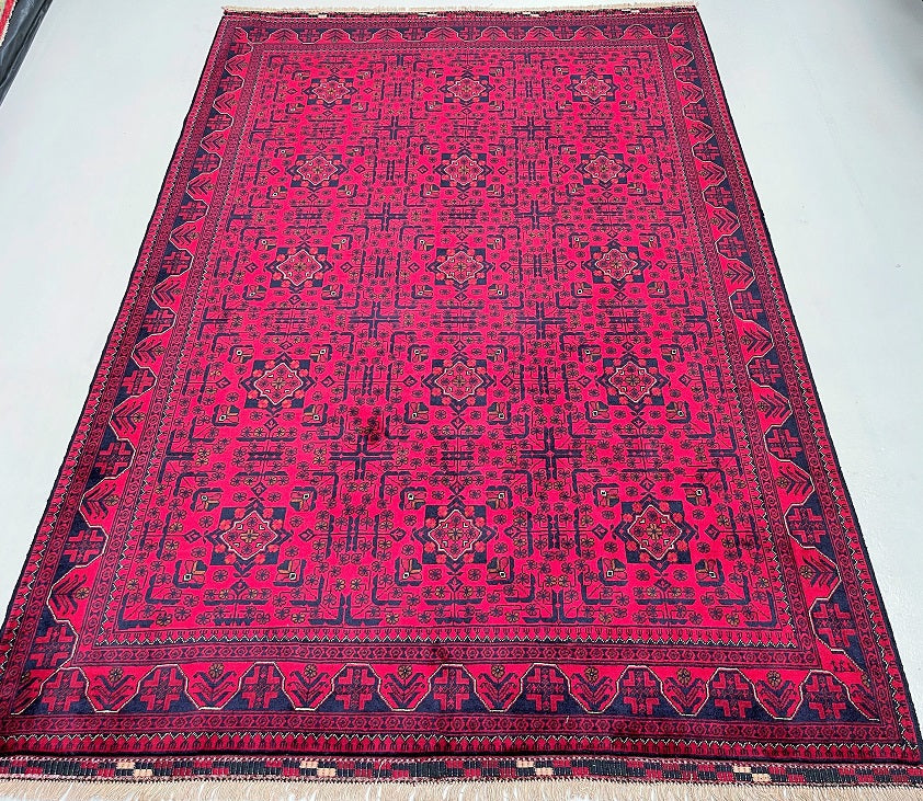 Room Size Authentic Handmade Nomadic Afghan Kunduz Rug. Above All It Has A Pure Lamb’s Wool Pile On Cotton Base. It Also Has A Deep Burgundy/Maroon Red Tone Dyed Using Traditional Methods.