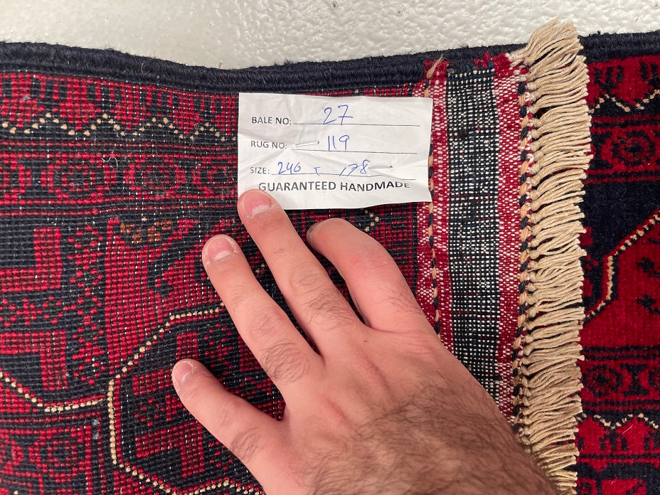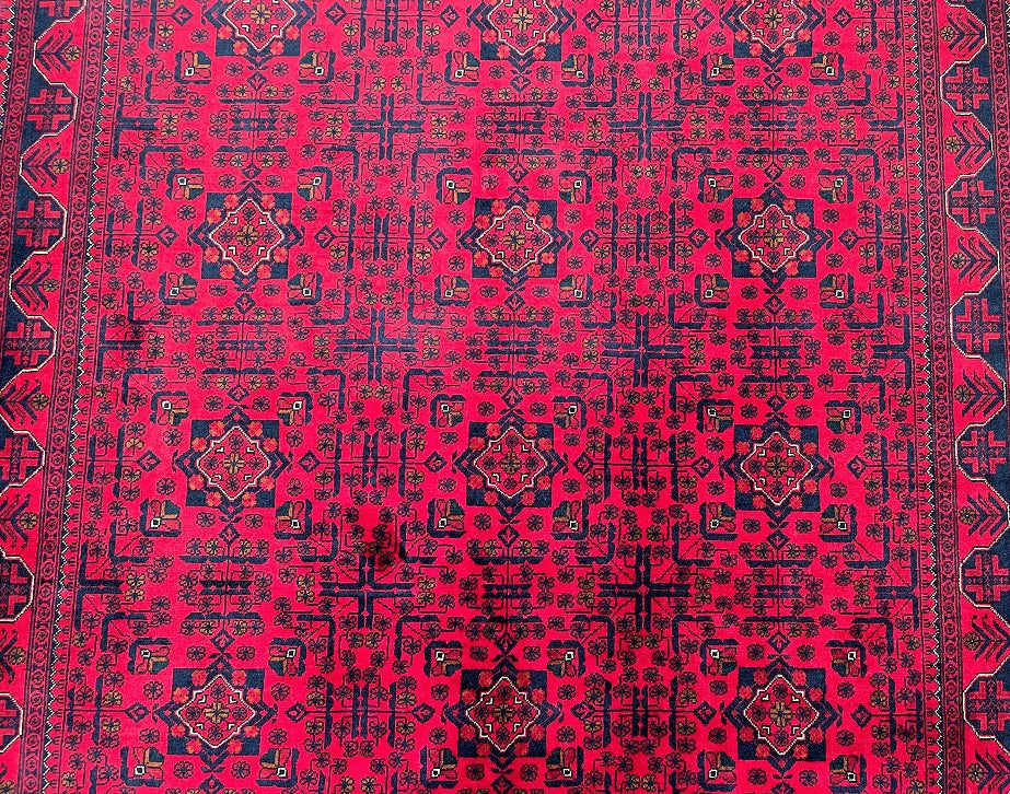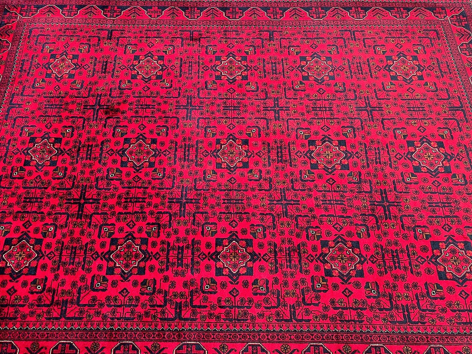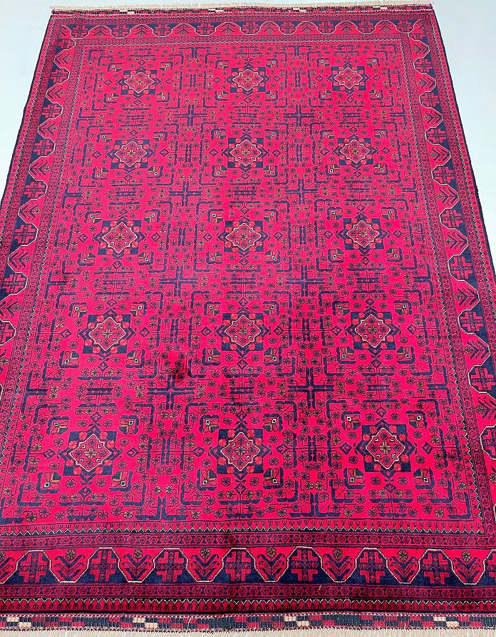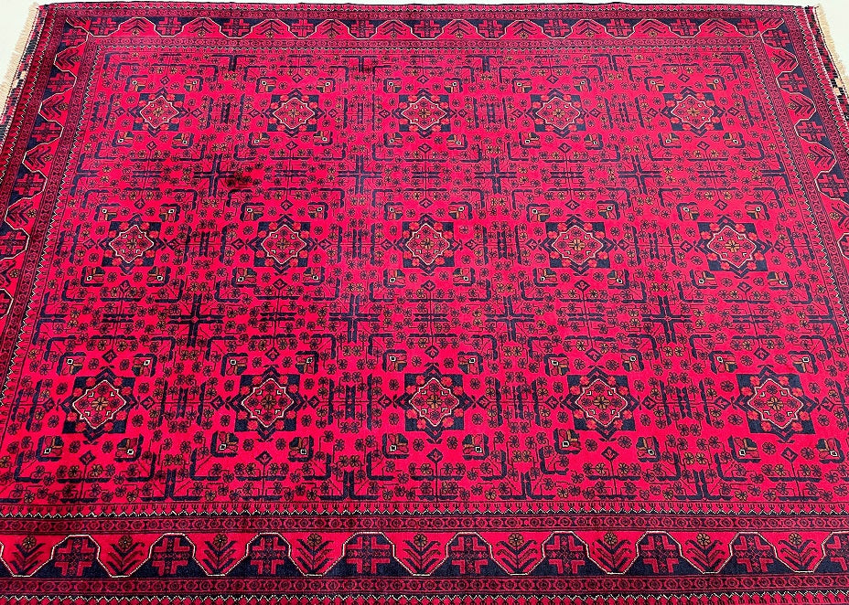Room Size Authentic Handmade Nomadic Afghan Kunduz Rug. Above All It Has A Pure Lamb’s Wool Pile On Cotton Base. It Also Has A Deep Burgundy/Maroon Red Tone Dyed Using Traditional Methods.