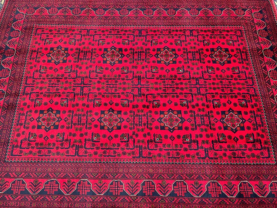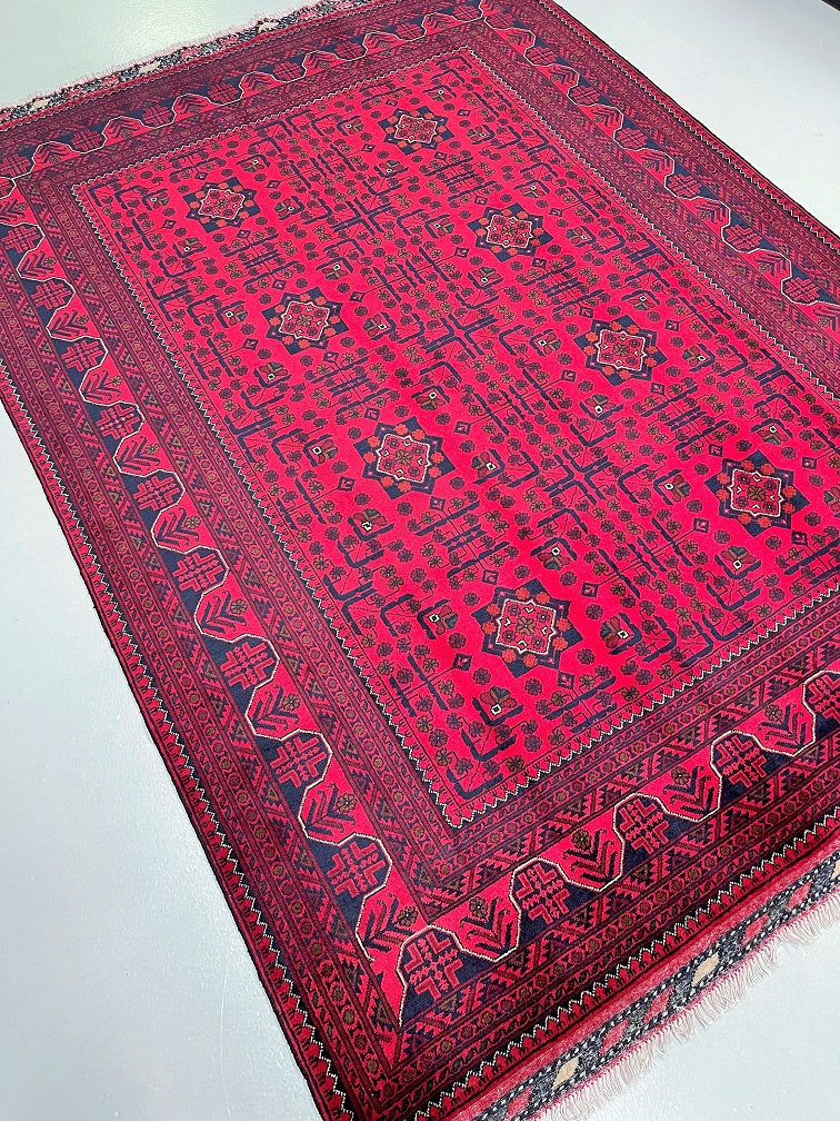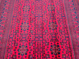 Superb Authentic Hand Knotted Afghan Ersari Rug. It also Has A Lamb’s Wool Pile On Cotton Base. Silky Burgundy/Maroon Tone Dyed Using Traditional Methods. Last Of True Woven Nomadic Art.