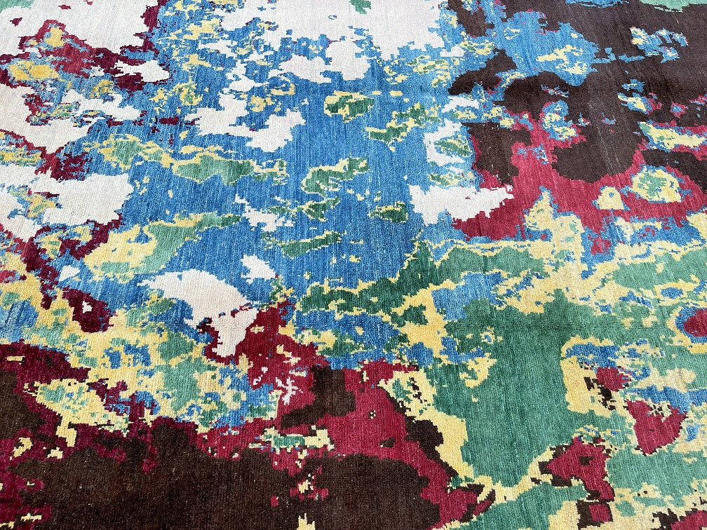 Room Size Authentic Handmade Contemporary Afghan Chobi Rug. Above All Has A Pure Hand Spun Wool Pile On Cotton Base. Beige, Green, Blue, Brown And Burgundy Tones Dyed Using Traditional Methods (Vegetable Dyes). Last of True Woven Nomadic Art.