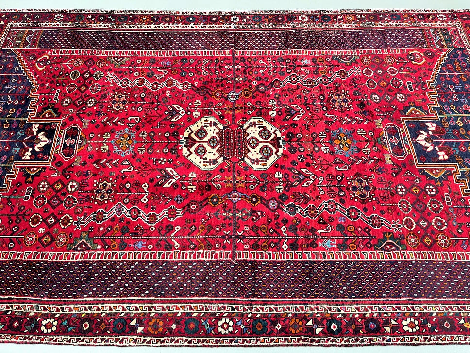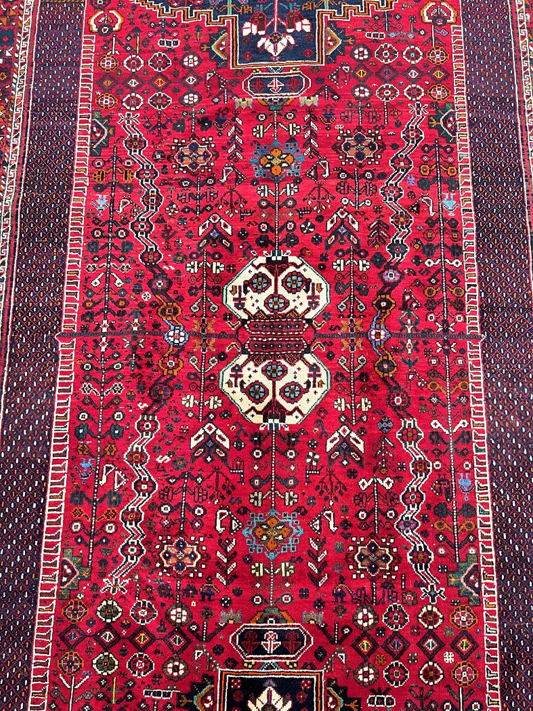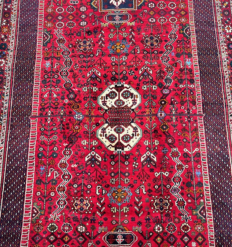 Full Room Size Authentic Handmade Persian Qashqai Shiraz Rug. Above All It Is A Dense Quality Rug Which Will Last You A Life Time. It Has A Pure Hand Spun Wool Pile On Cotton Base. Multi-Colour Tone Dyed Using Traditional Methods.