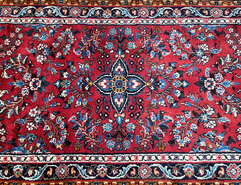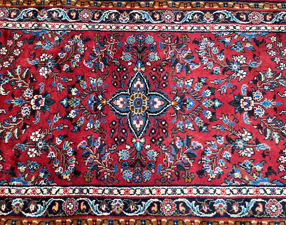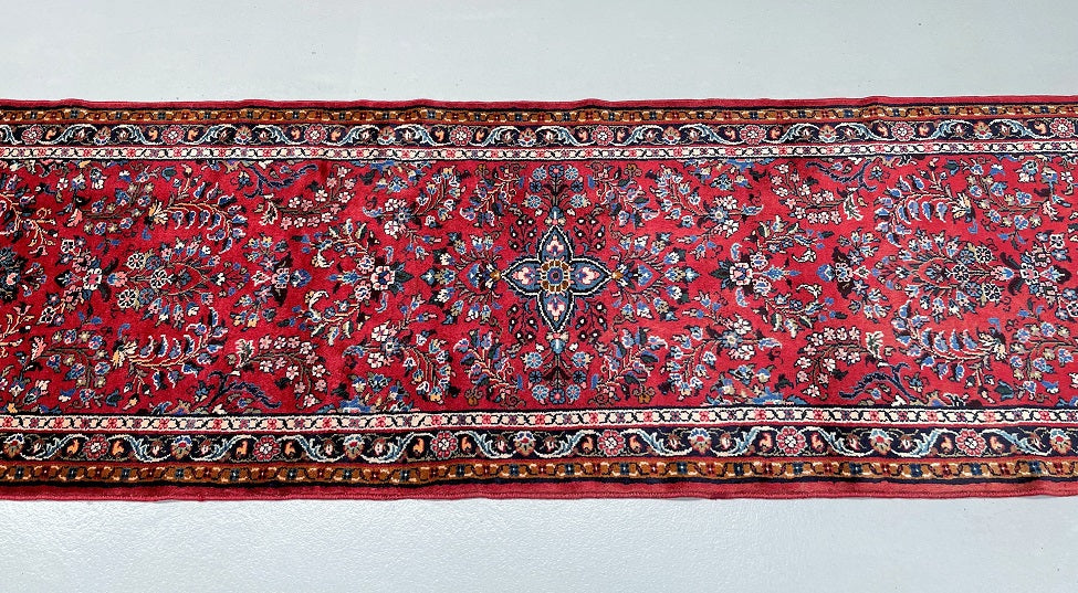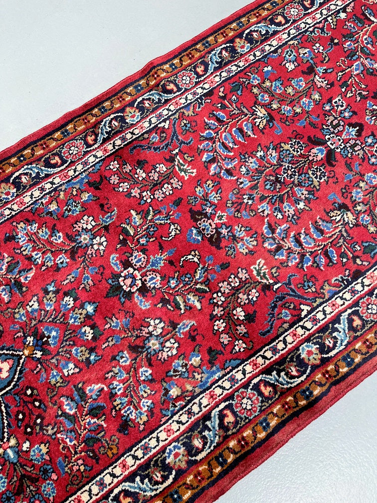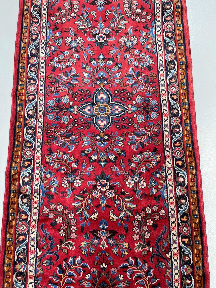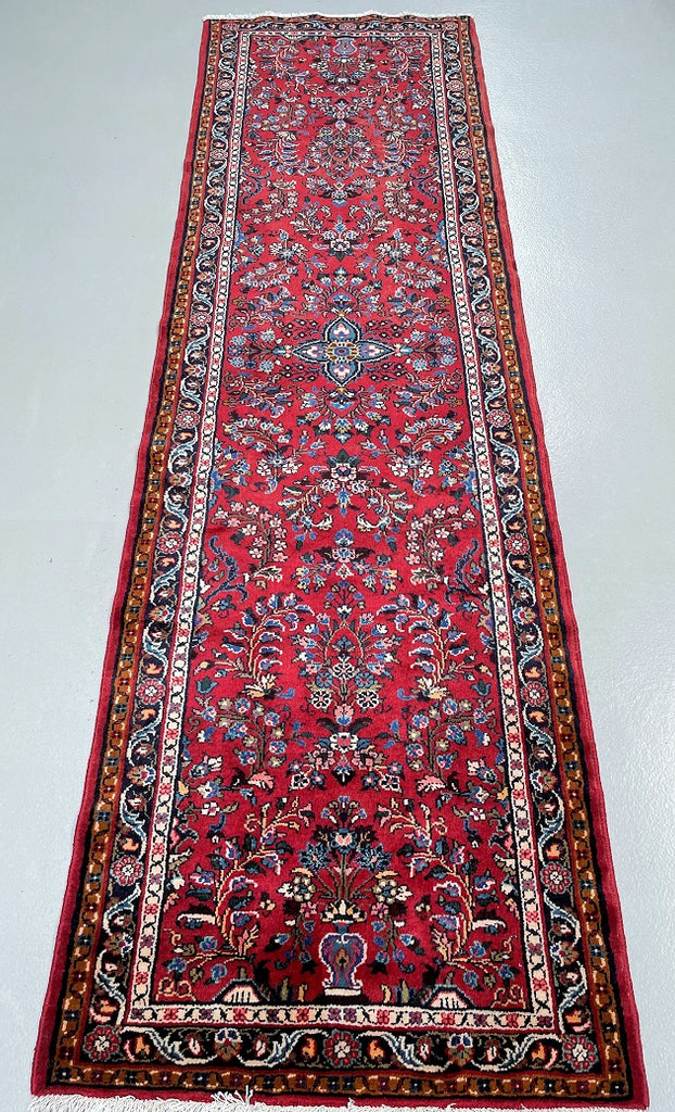 Gorgeous Authentic Hand Knotted Persian Lilian Hall Runner. Above All This Is a Very Collectable Item Made By Armenian Weaver Settled In Central West Persia. It Also Has Pure Wool Pile On Cotton Base. Burgundy/Maroon, Blue, Beige, Black, Mustard, Orange and Green Tone Dyed Using Traditional Methods.