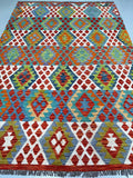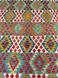 Full Room Size Genuine Handmade Afghan Waziri Kilim Rug. Above All This Rug Is Reversible. It Also Has A Pure Hand Spun Wool Pile On Wool Base. Vibrant Multi-Color Tone Dyed Using Traditional Methods.
