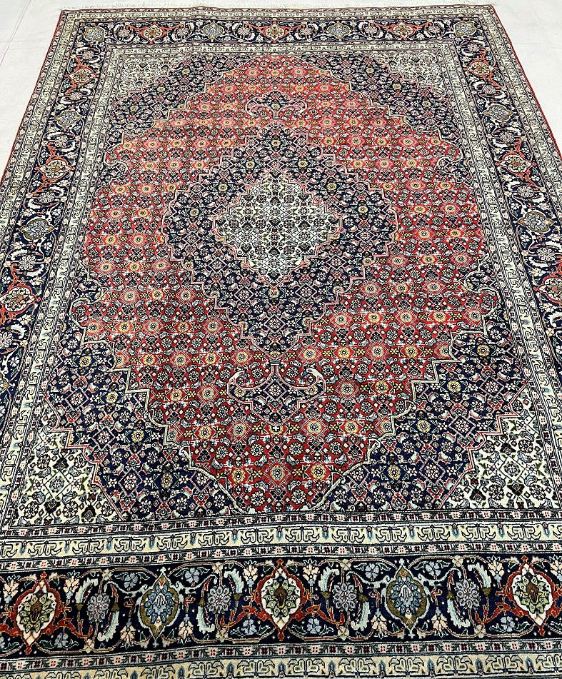 Superb Full Room Size Authentic Handmade Persian Tabriz Rug. Above All This An Original Tabriz Rug Not An Indian Or Chinese Imitation. It Also Has A Pure Wool Pile On Cotton Base. It Also Has A Red/Burnt Orange, Beige, Black/Indigo Blue And Green Tone Dyed Using Traditional Methods.