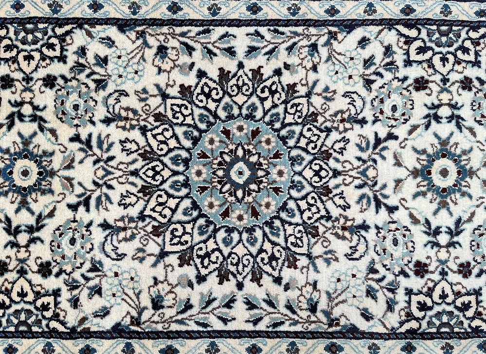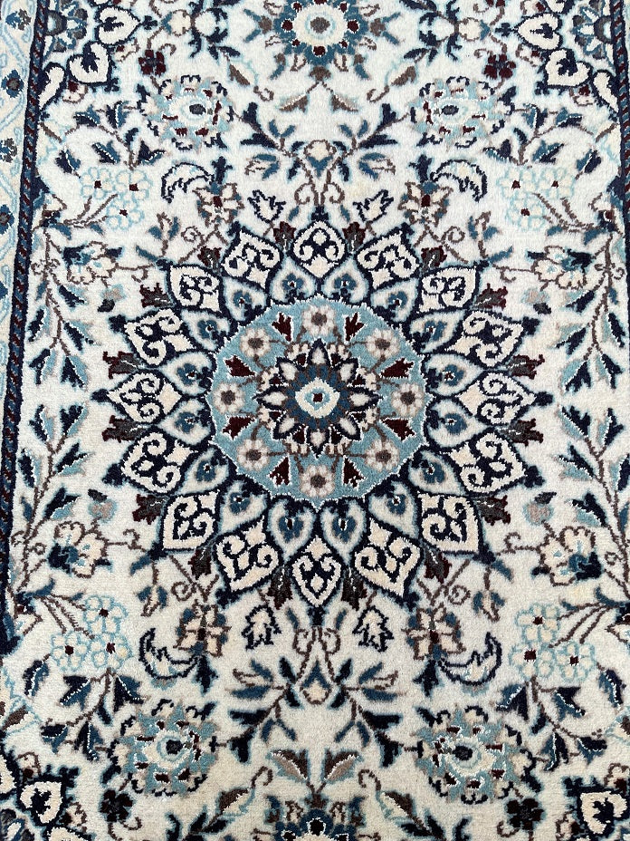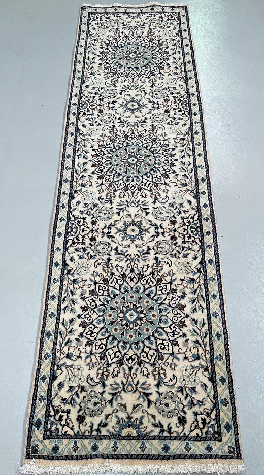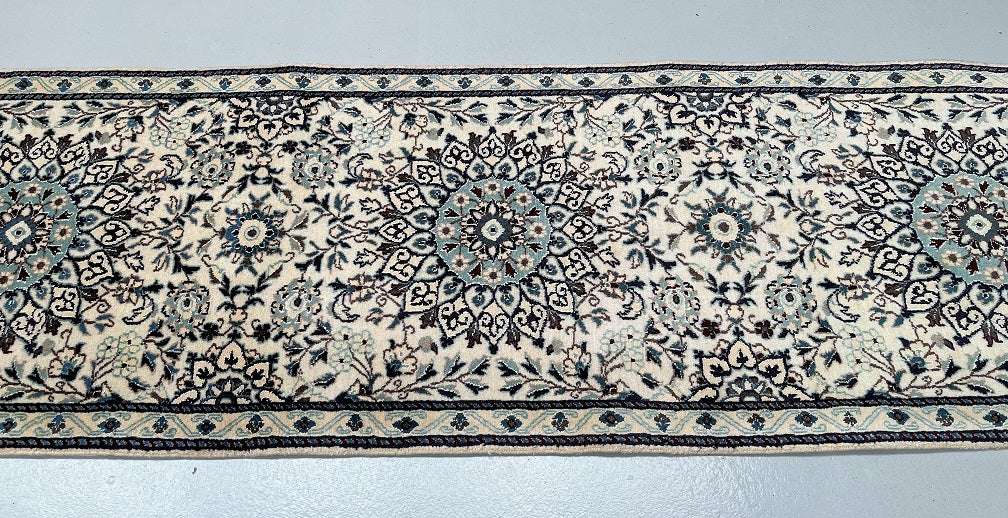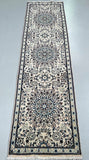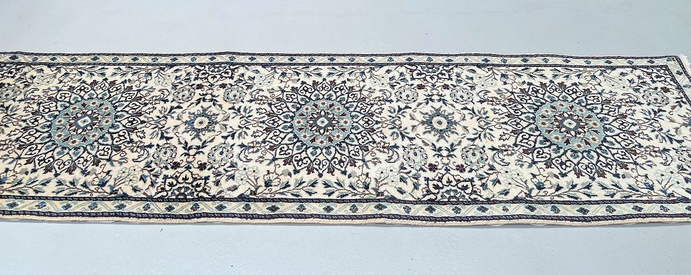 Authentic Handmade Persian Nain Hall Runner. Above All It Has A Lamb’s Wool With A Touch Of Silk Pile On Cotton Base. Beige, Black, Blue, Brown And Burgundy Tones Dyed Using Traditional Methods.