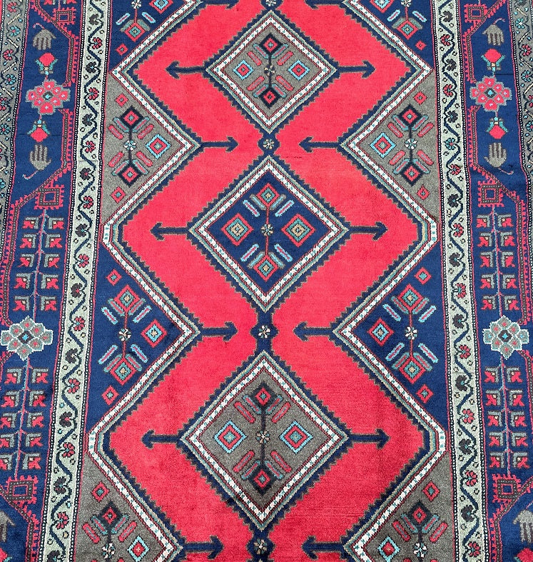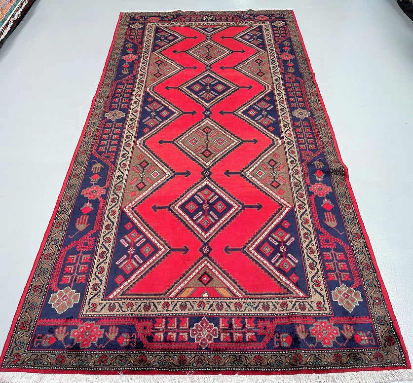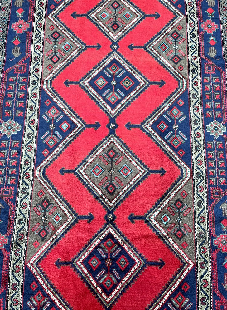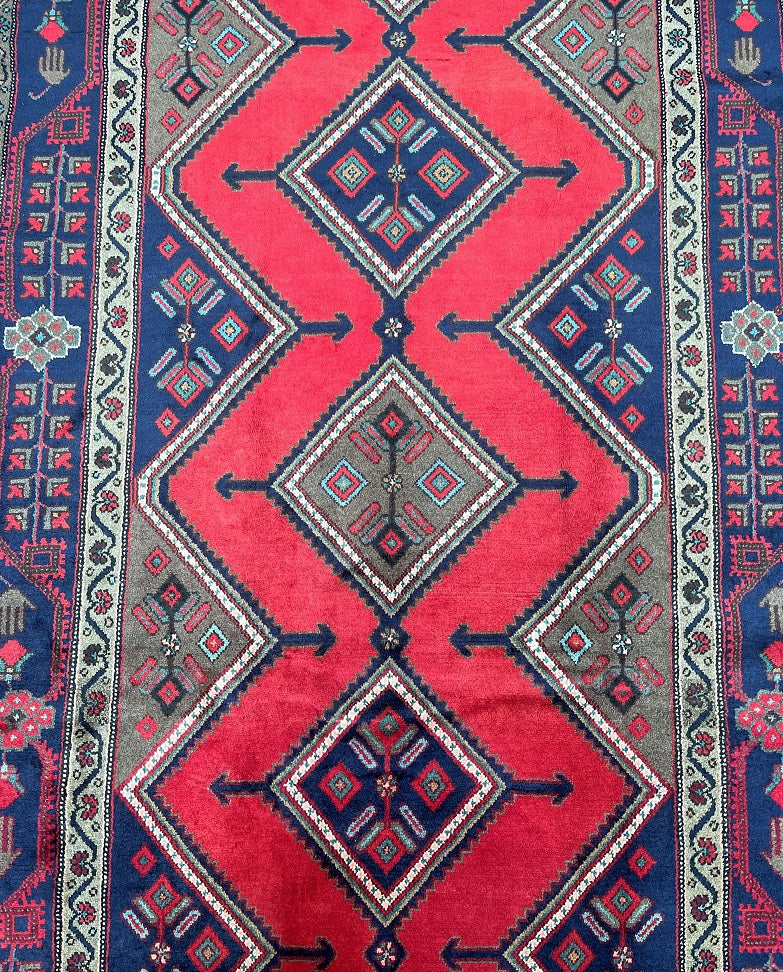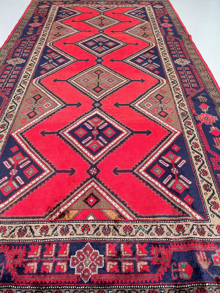 Full Room Size Genuine Handmade Persian Luri Rug. Above All it is A Hand Spun Wool Which Feels Really Nice To Walk on. It Is Also Ideal For Every Day Usage. Red, Indigo Blue, Brown And Beige Tone Dyed Using Traditional Methods.