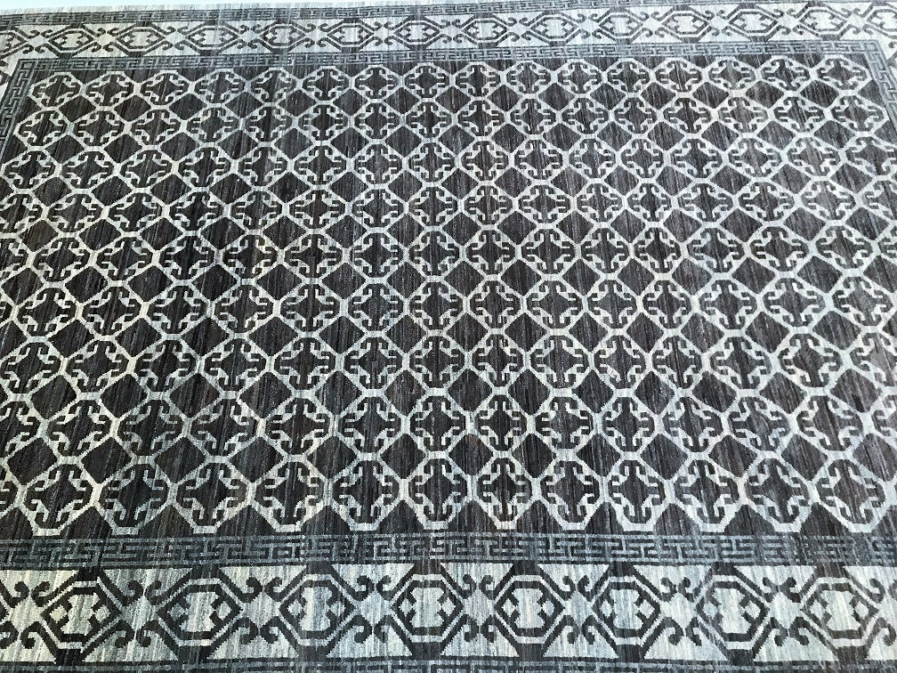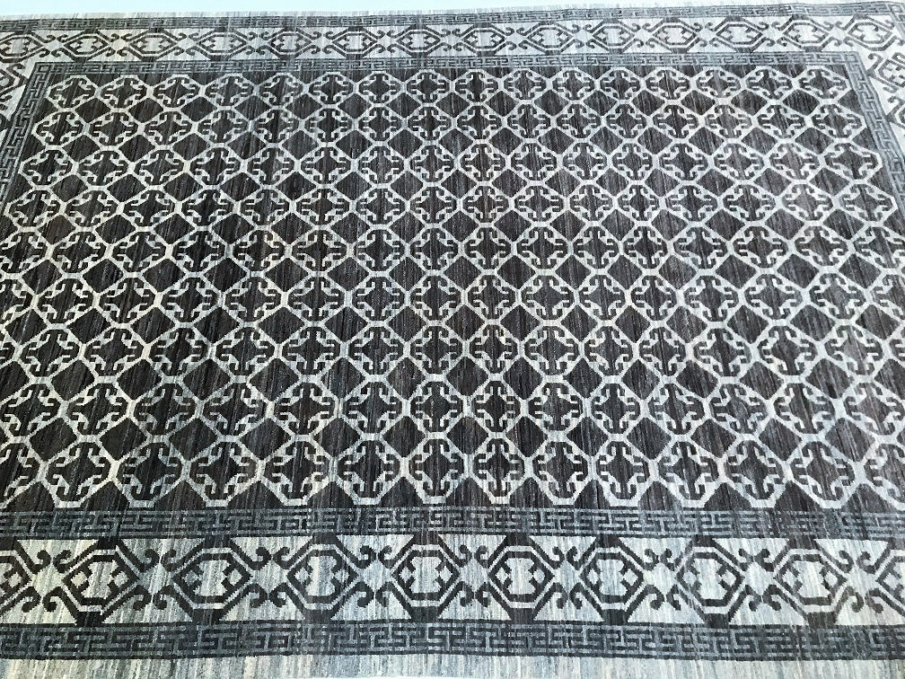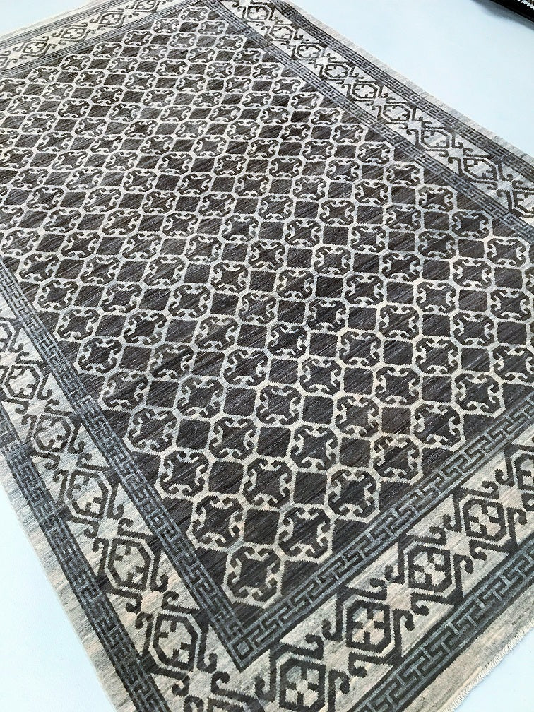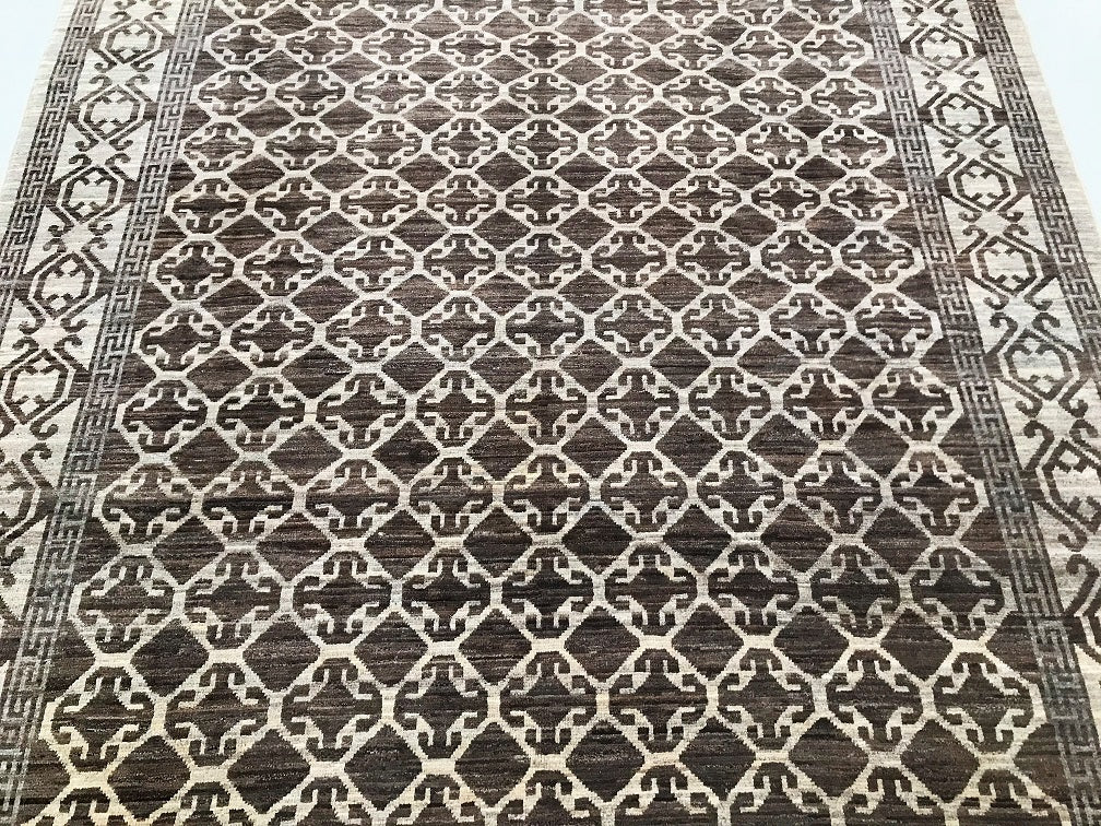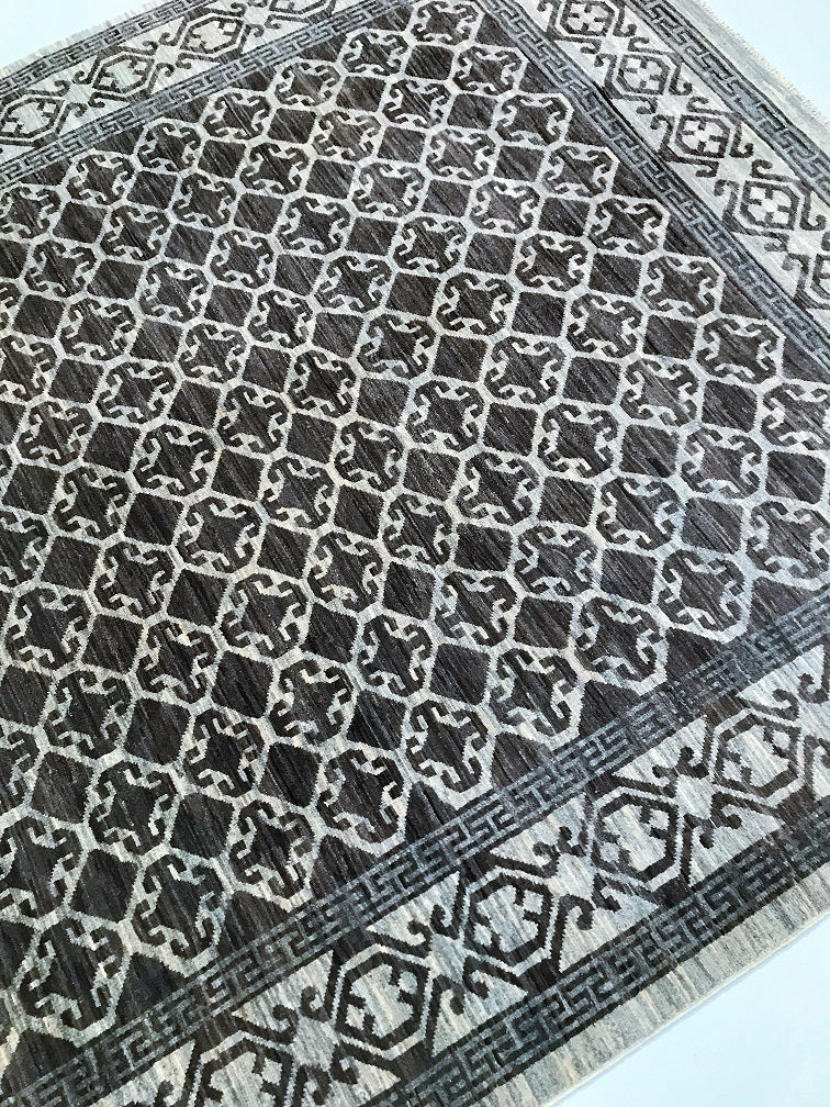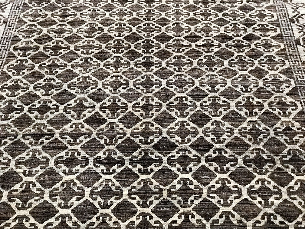 Unique Full Room Size Handmade Contemporary Afghan Turkoman Rug. Above All It Is Pure Hand Spun Wool Pile On Cotton Base. Mostly Un-dyed Grey, Beige, Charcoal And Brown Tone. Last of True Woven Nomadic Art.