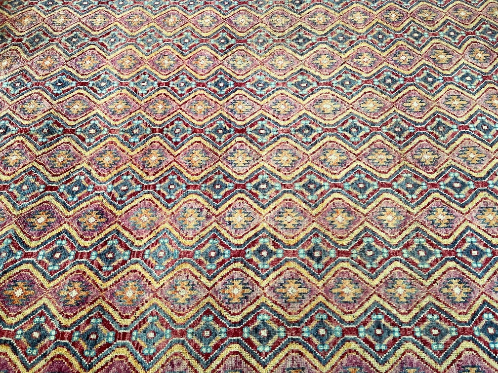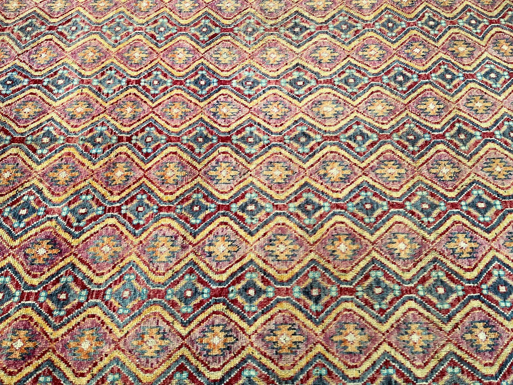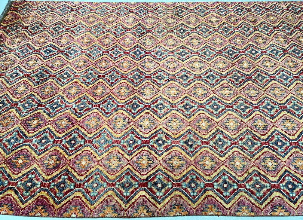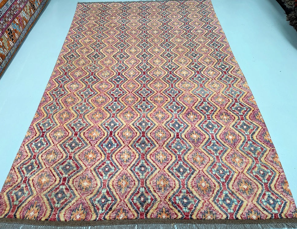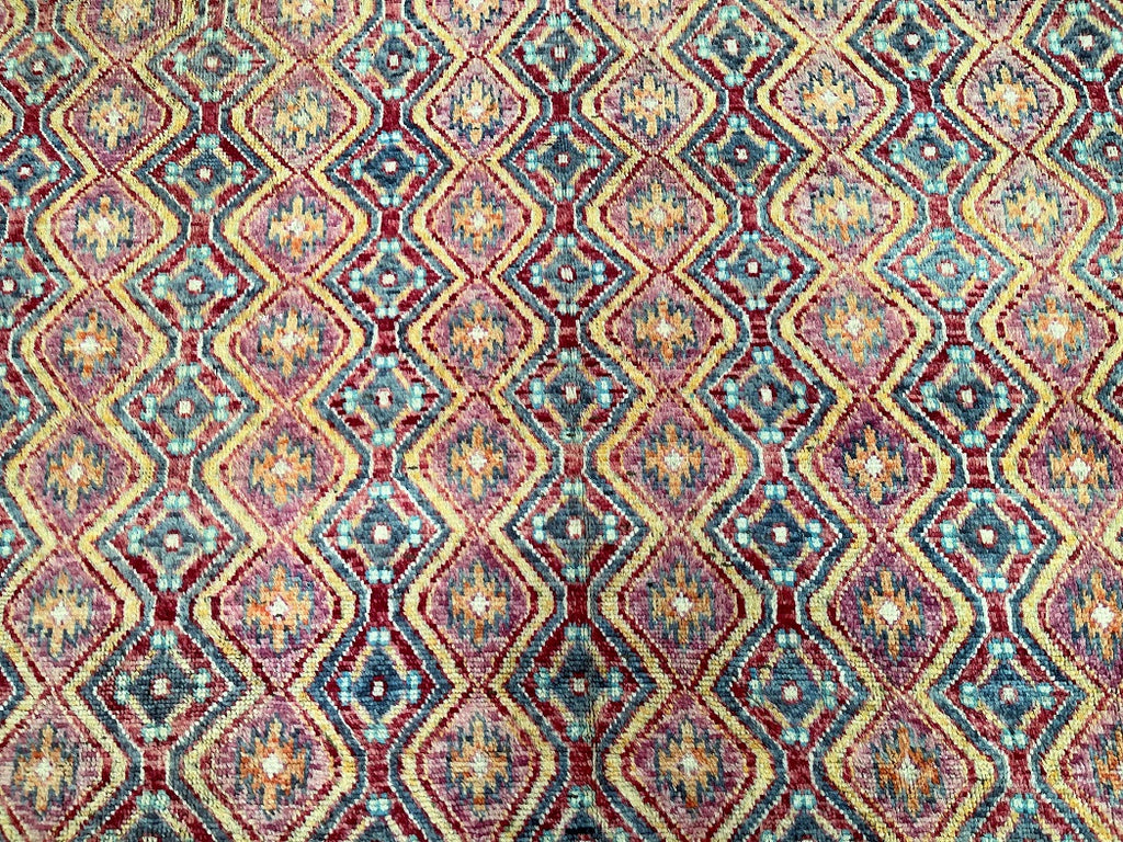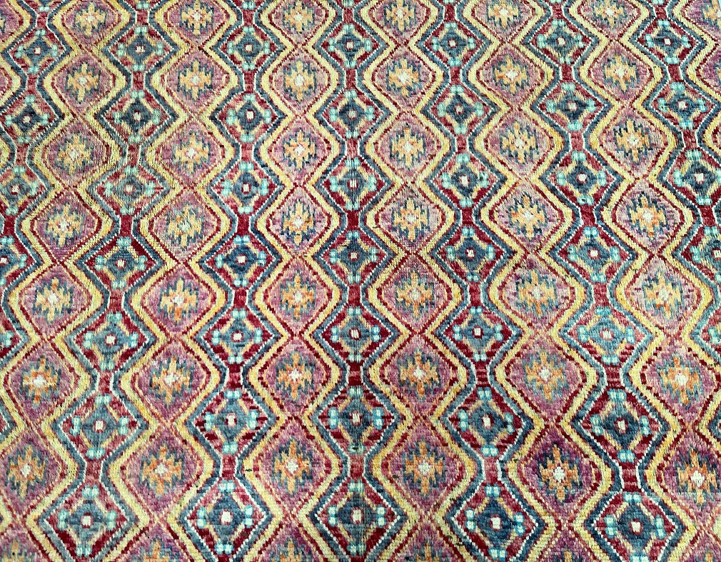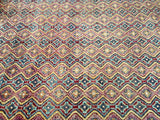 Full Room Size Moroccan Style Hand Knotted Afghan Gabbeh Rug. Above All It Has A Wool Pile On Wool Base. Red, Pink, Purple, Blues, Yellow, Beige And Orange Tone Dyed Using Traditional Methods. Last of True Woven Nomadic Art.