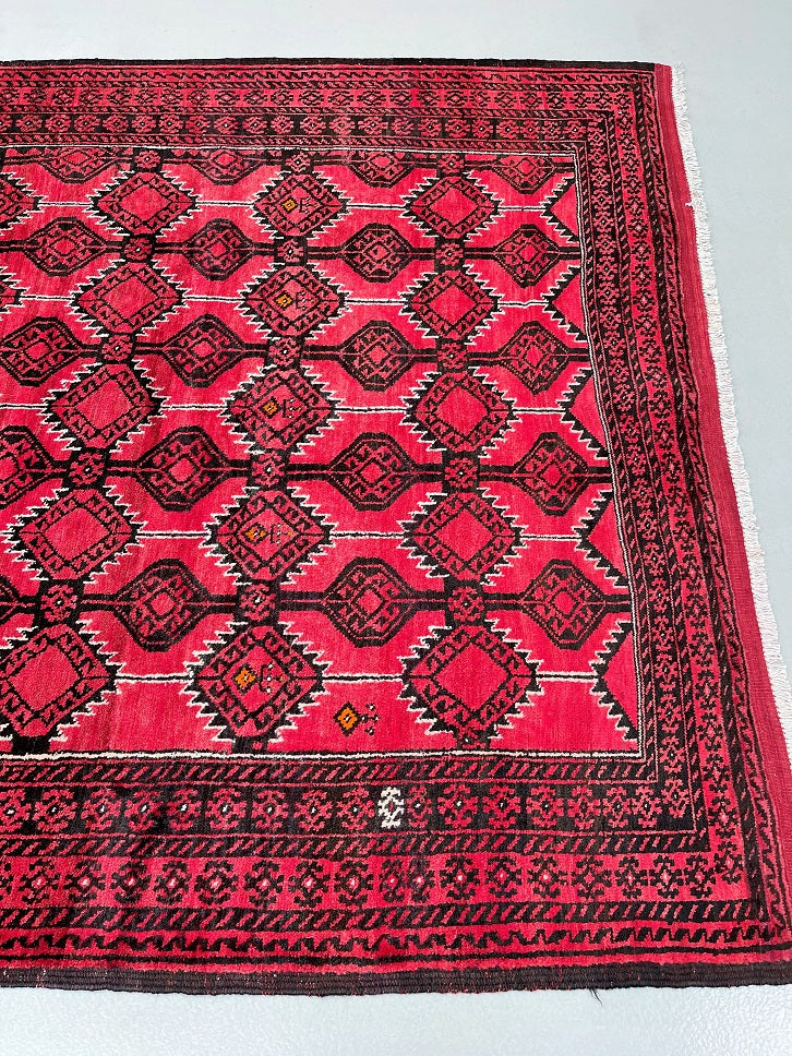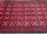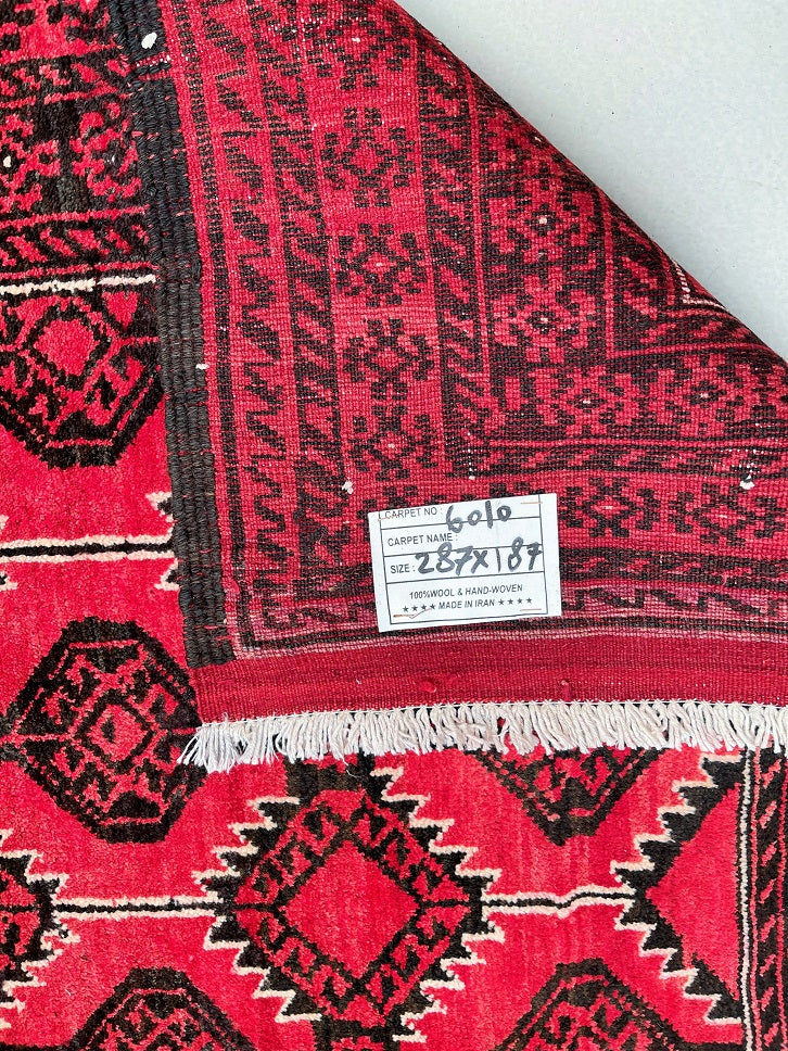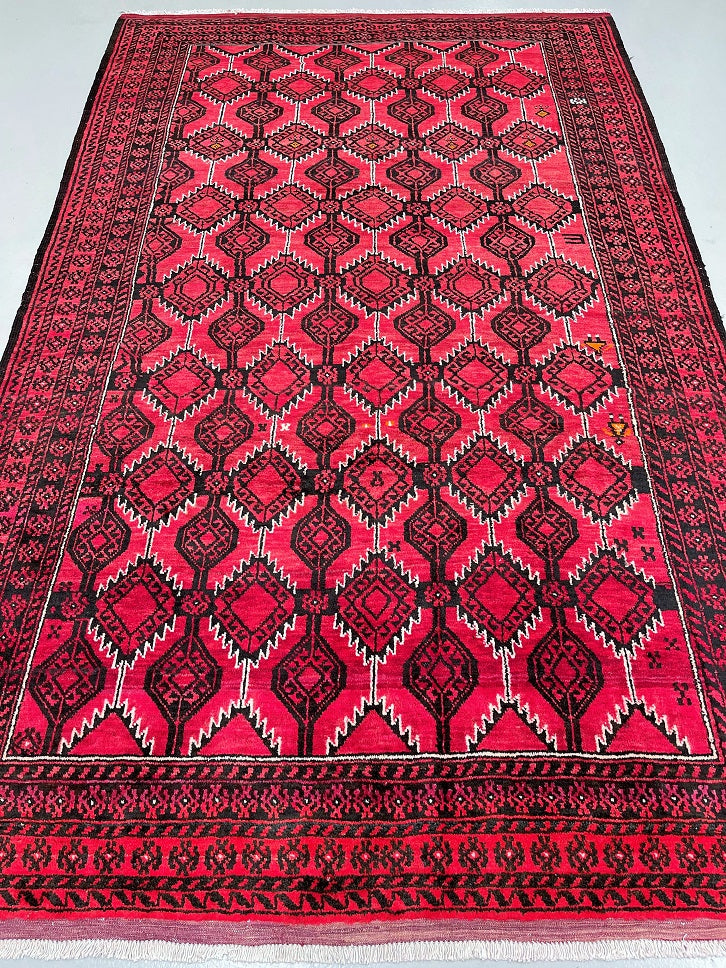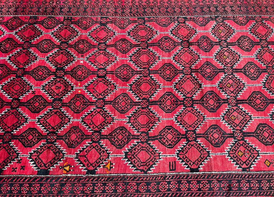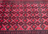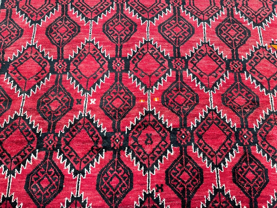 Rare Full Room Size Authentic Handmade Persian Balouchi Rug. Pure Hand Spun Wool Pile On Wool Base. Red, Beige And Black Tone Dyed Using Traditional Methods.