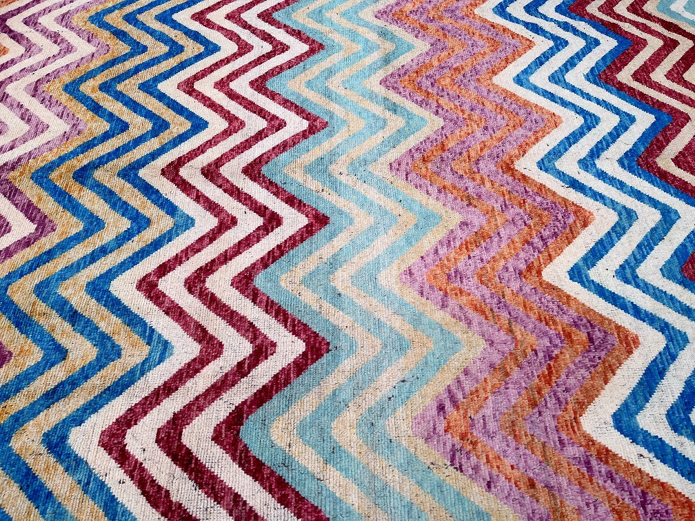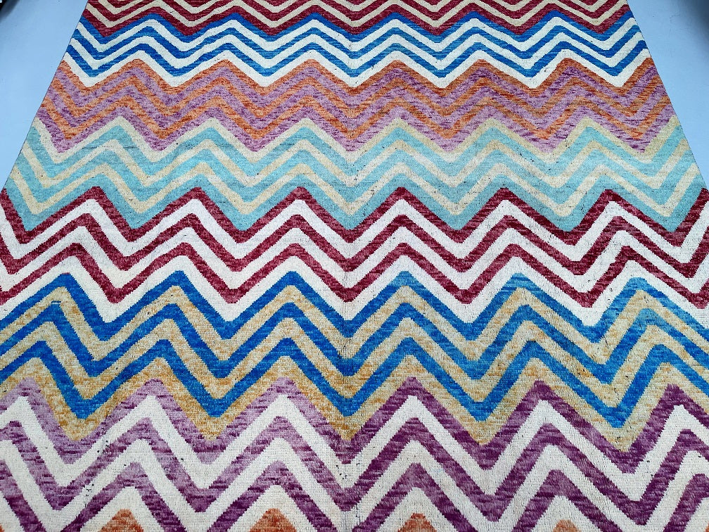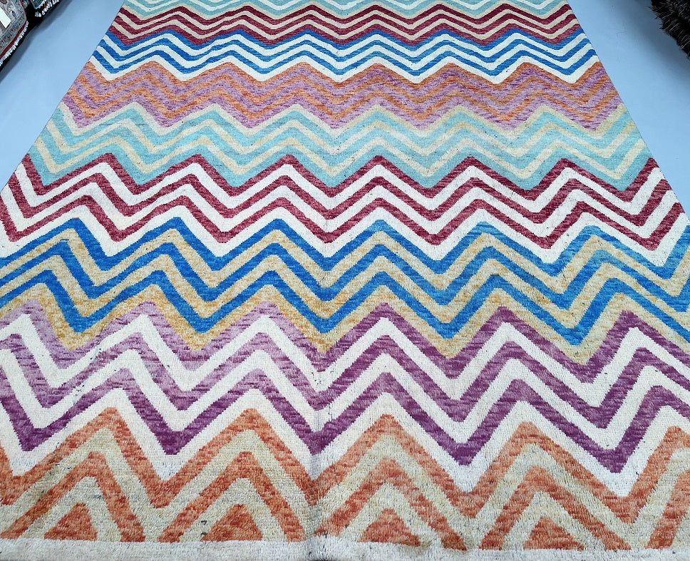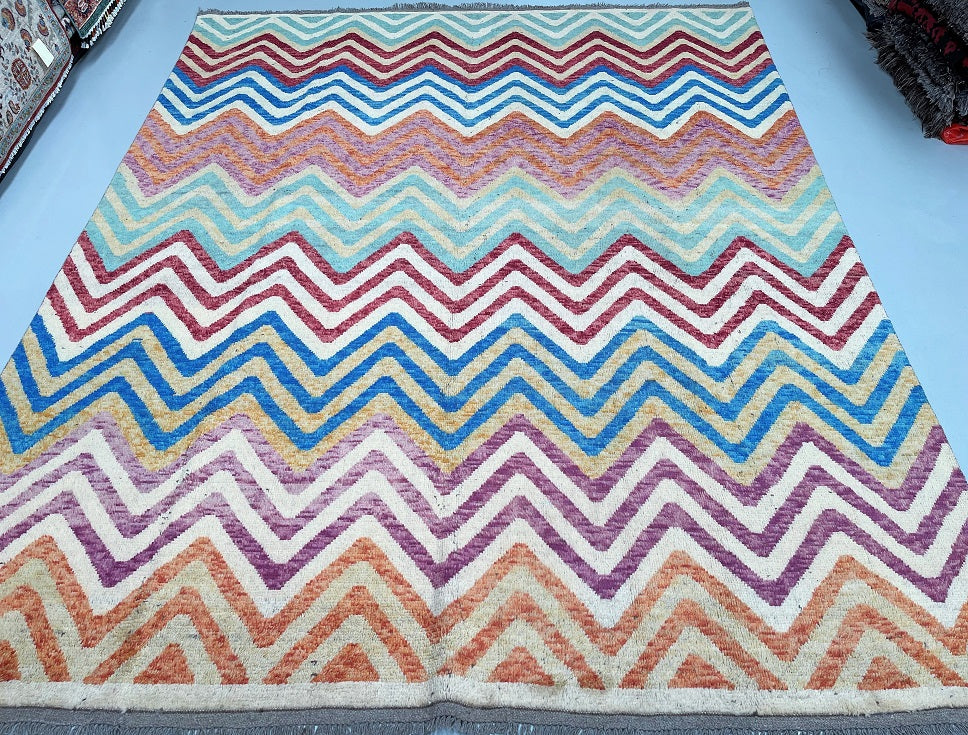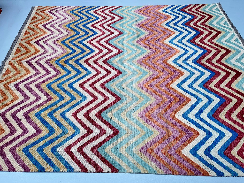Large Room Size Boho Hand Knotted Afghan Gabbeh Rug. Above All It Has A Thick Wool Pile On Wool Base. Multi-Color Tones Dyed Using Traditional Methods. Last of True Woven Nomadic Art.