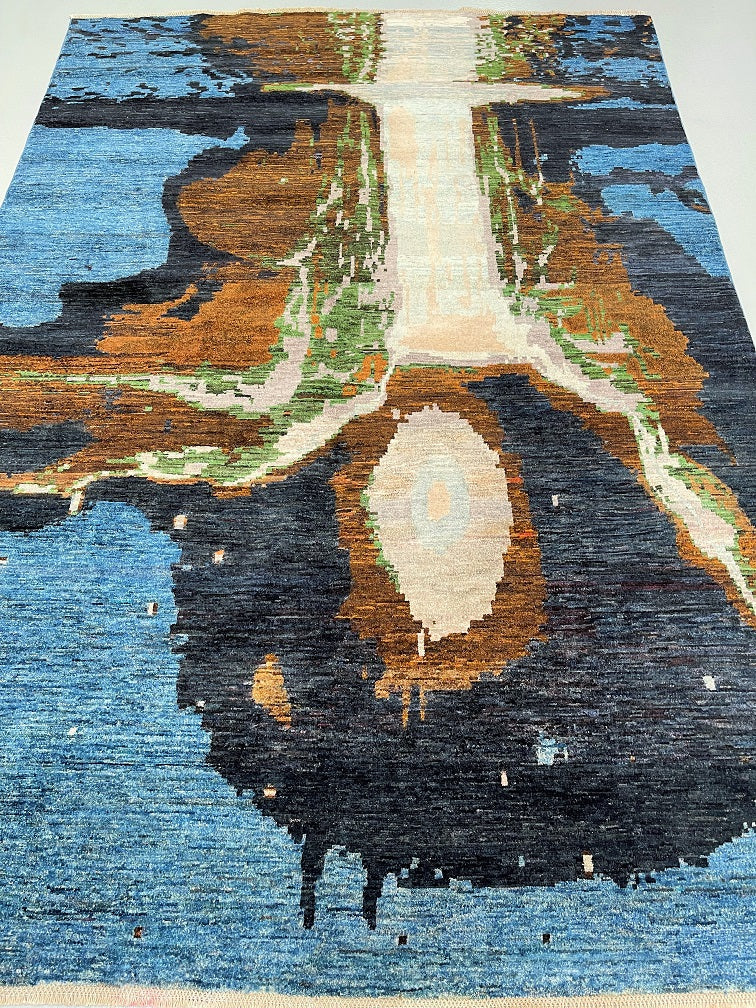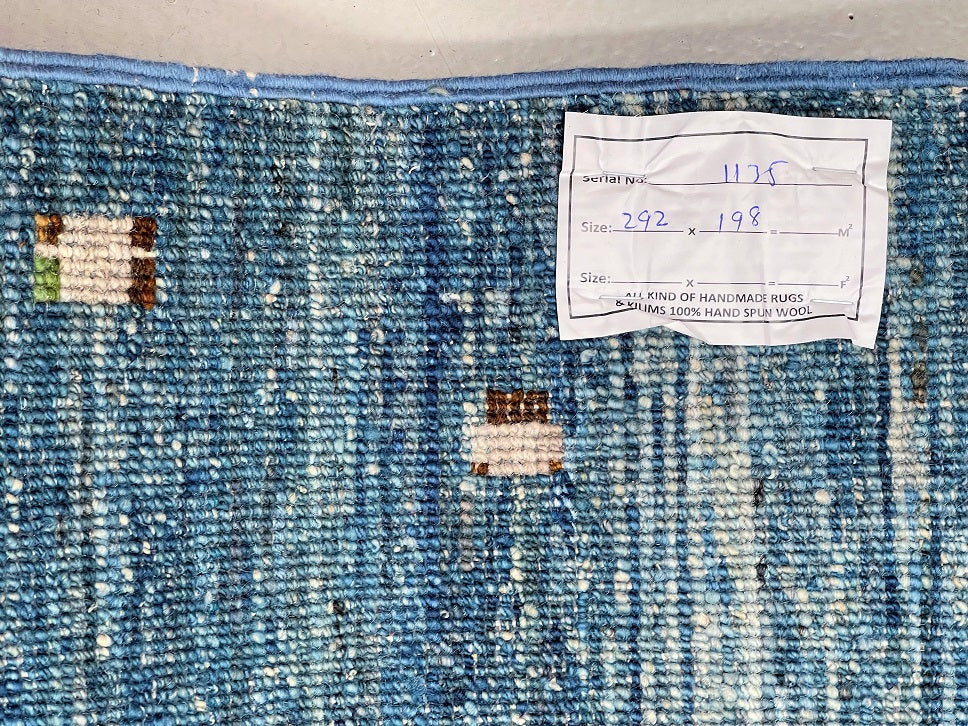 Free Shipping Australia Wide Offered! Certified Handmade Contemporary Afghan Rug 292x198cmFull Room Size Hand Knotted Afghan Gabbeh Chobi Rug. Above All It Is Pure Hand Spun Wool Pile On Cotton Base. Blues, Beige, Mustard, Brown And Green Tone Dye...